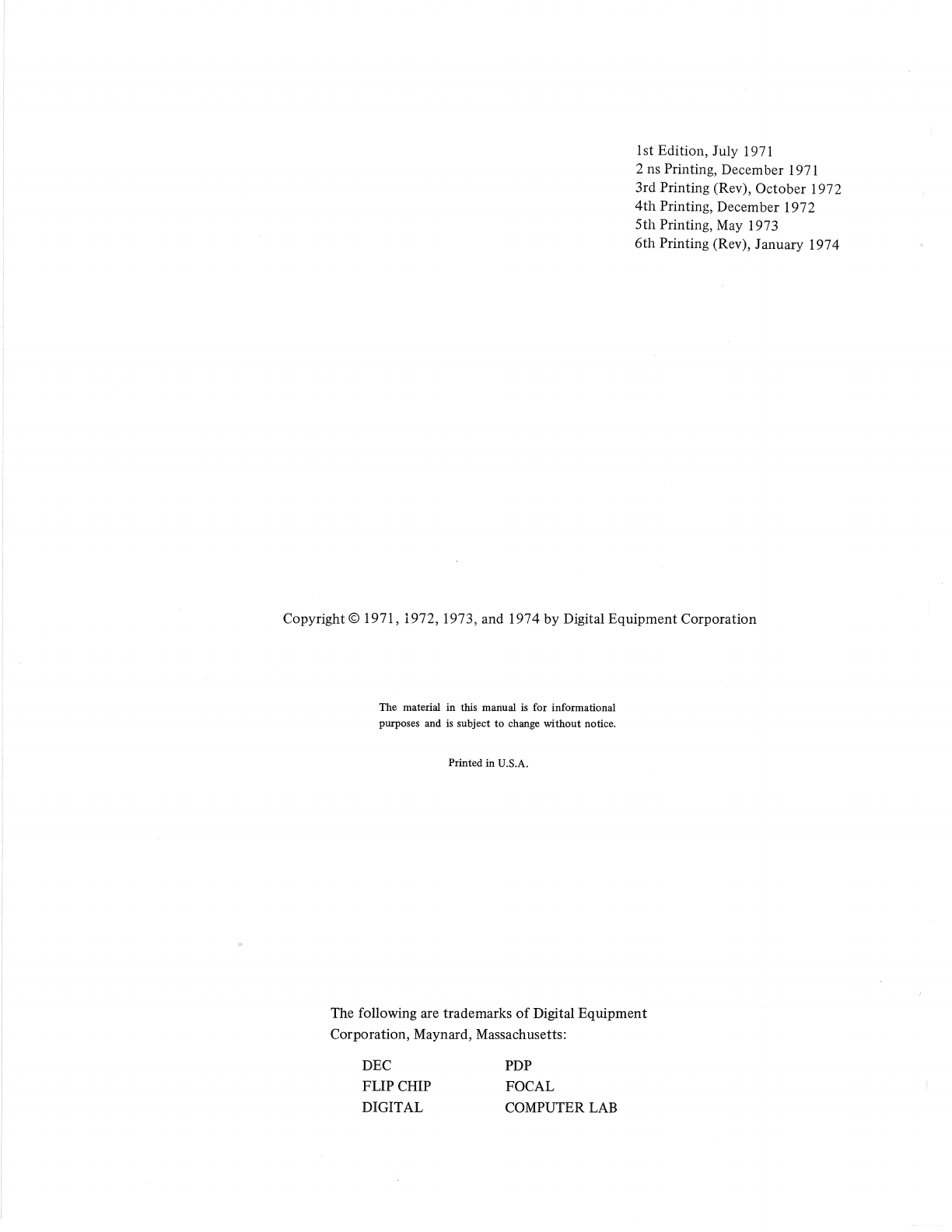 Copyright © 1971, 1972, 1973, and 1974 by Digital Equipment Corporation