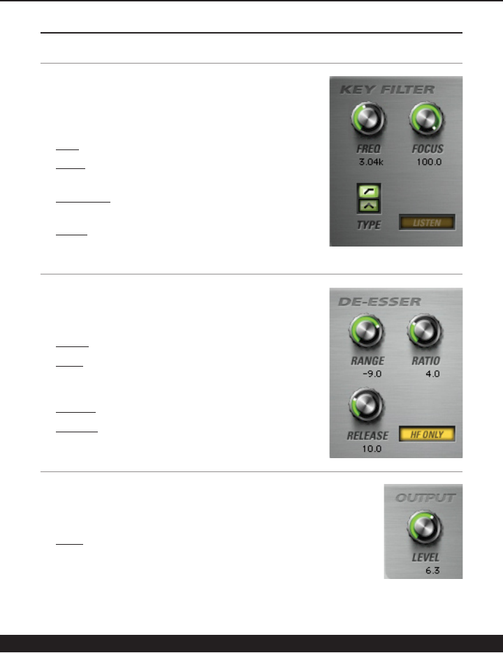 • Disable key lter monitoring, and move on to the De-esser controls.