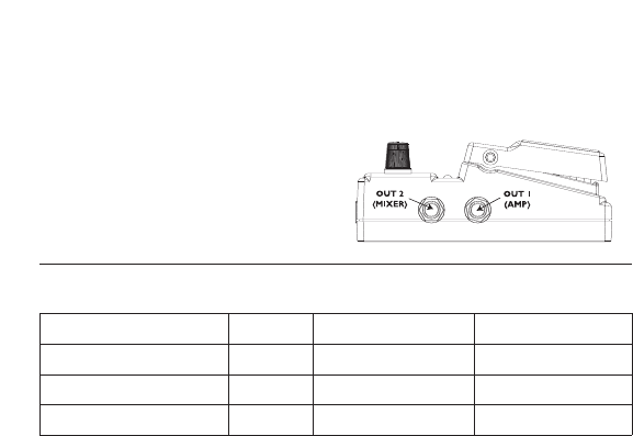 • Jacks - INPUT, OUT 1 (AMP), OUT 2