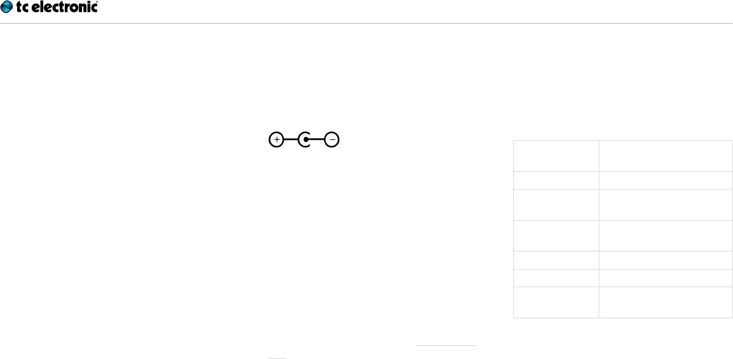– Power input: Standard 9 V DC, centre nega-