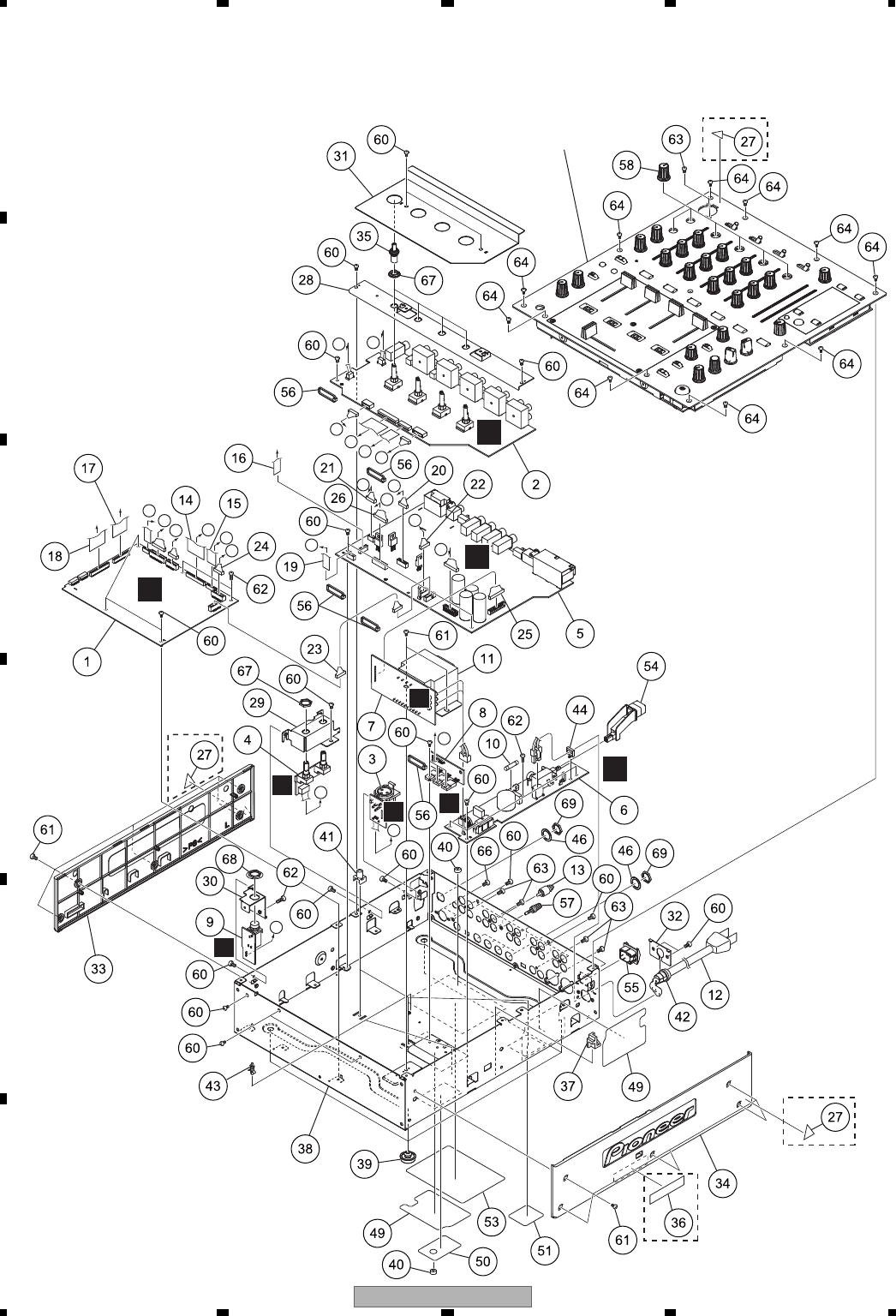 - 10.21 FADER (CROSS), (CH1), (CH2), (CH3) and (CH4) ASSYS