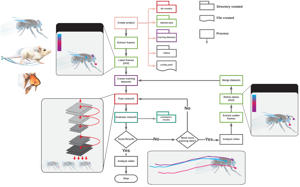 DeepLabCut is organized according to the following workflow (Fig 2). The user starts by creating a new project