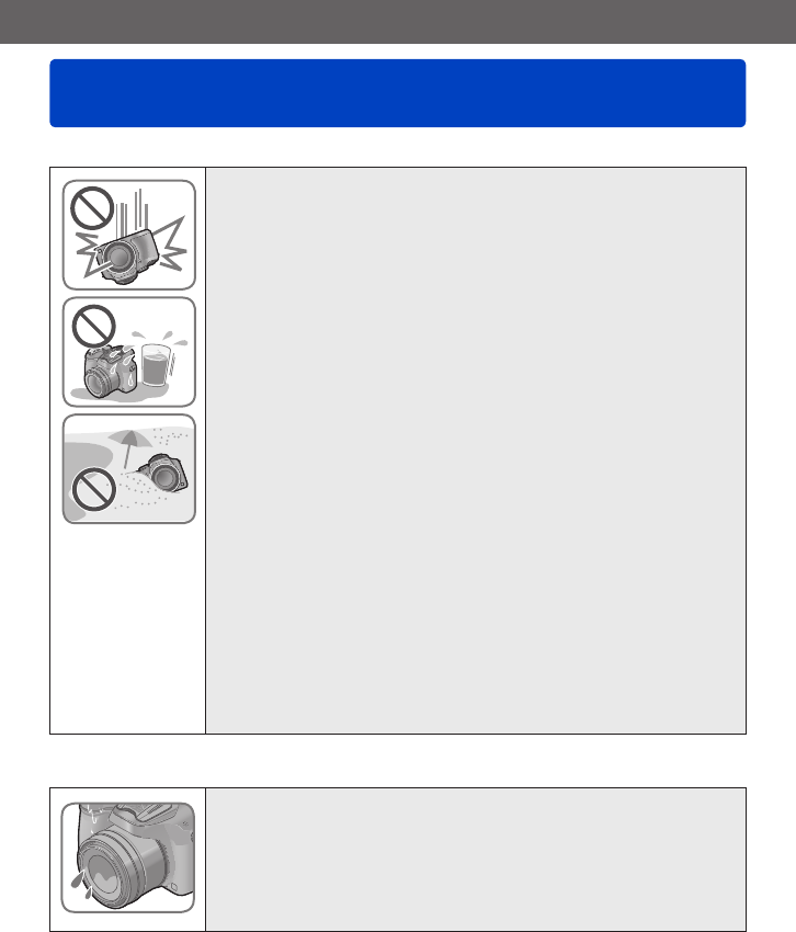 ●Do not leave the camera with the lens facing the sun as rays of light from the sun may cause it to