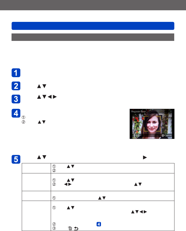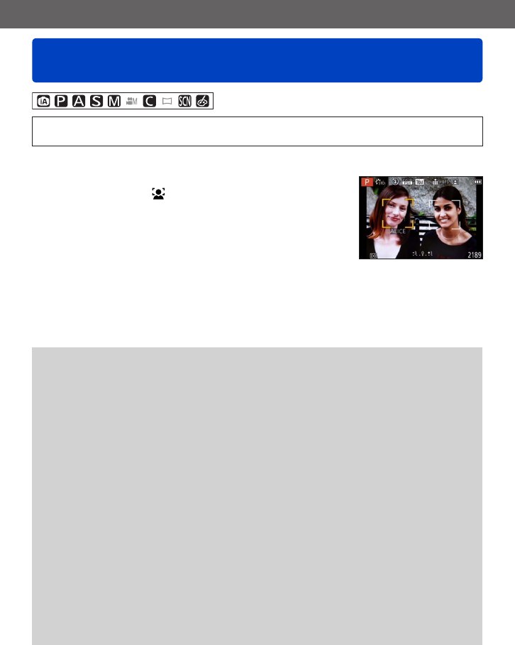 If names or birthdays are set in [Baby] Mode or in the [Face Recog.] function, keep in mind that the