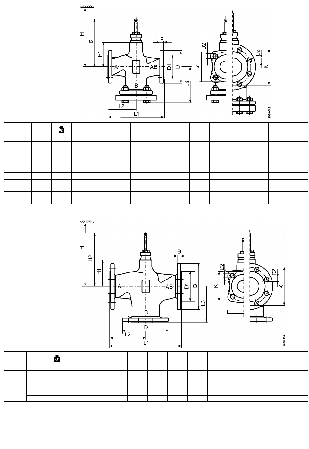 DN B Ø D Ø D1 Ø D2 L1 L2 L3 Ø K H1 H2 H