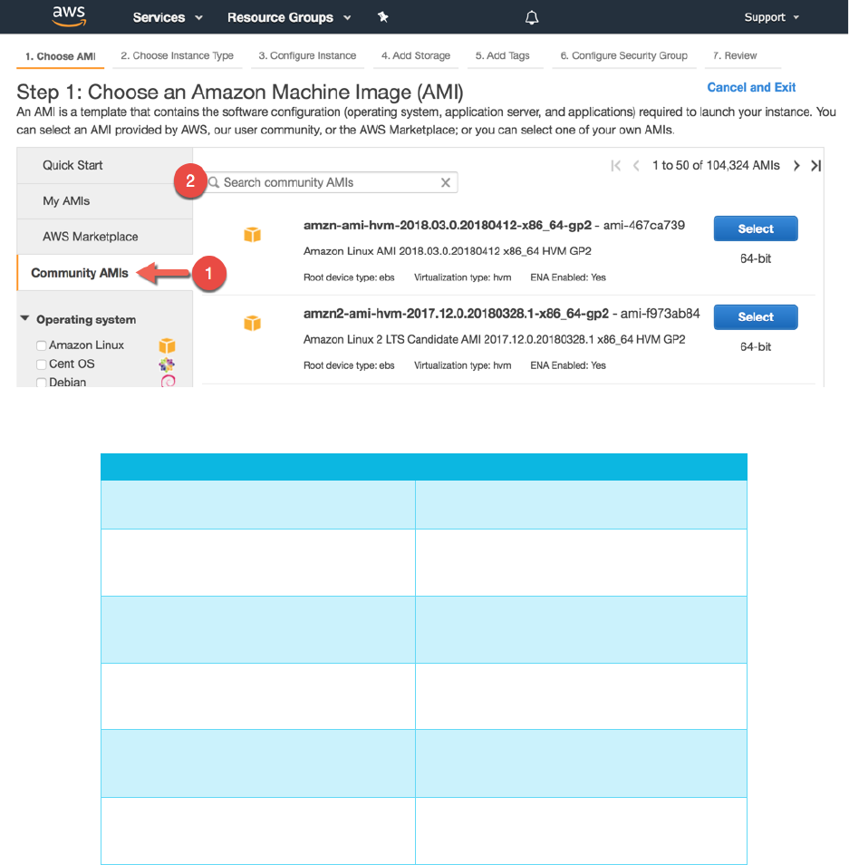 Using the table below, get the AMI ID for region you are starting the instance in and search for that.