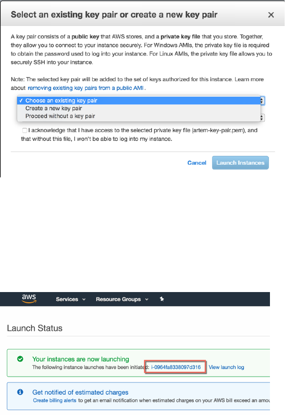 click on the button Launch. A window will pop up to have you select an existing key pair or to create a new