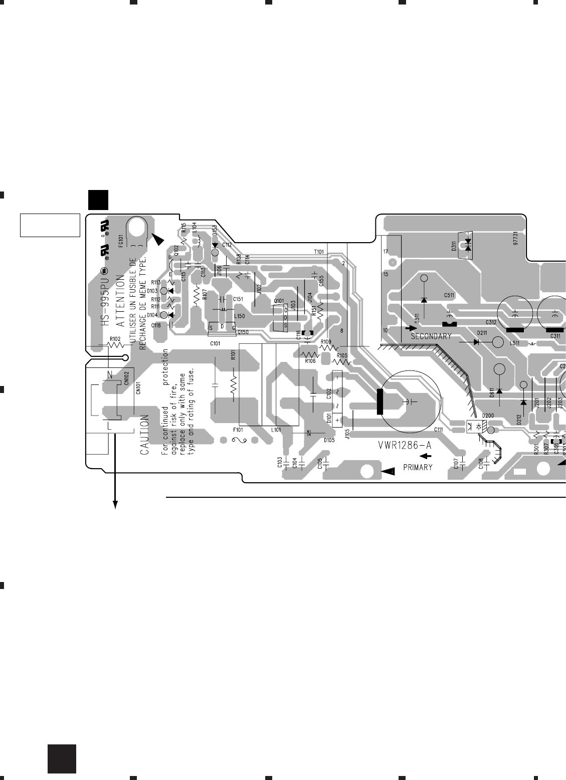 Fuse symbols (fast operating fuse) and/or (slow operating fuse) on PCB indicate that replacement parts must