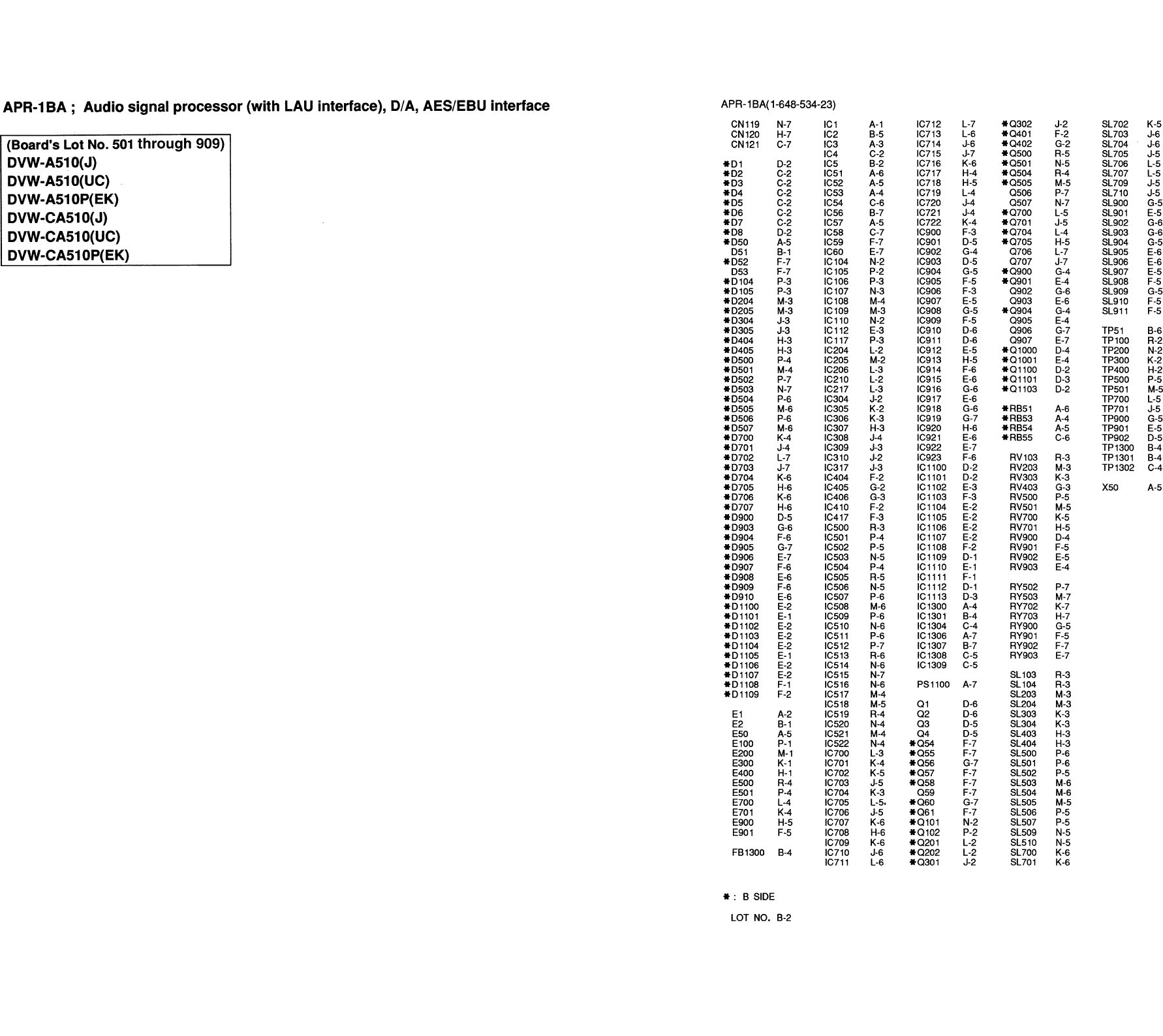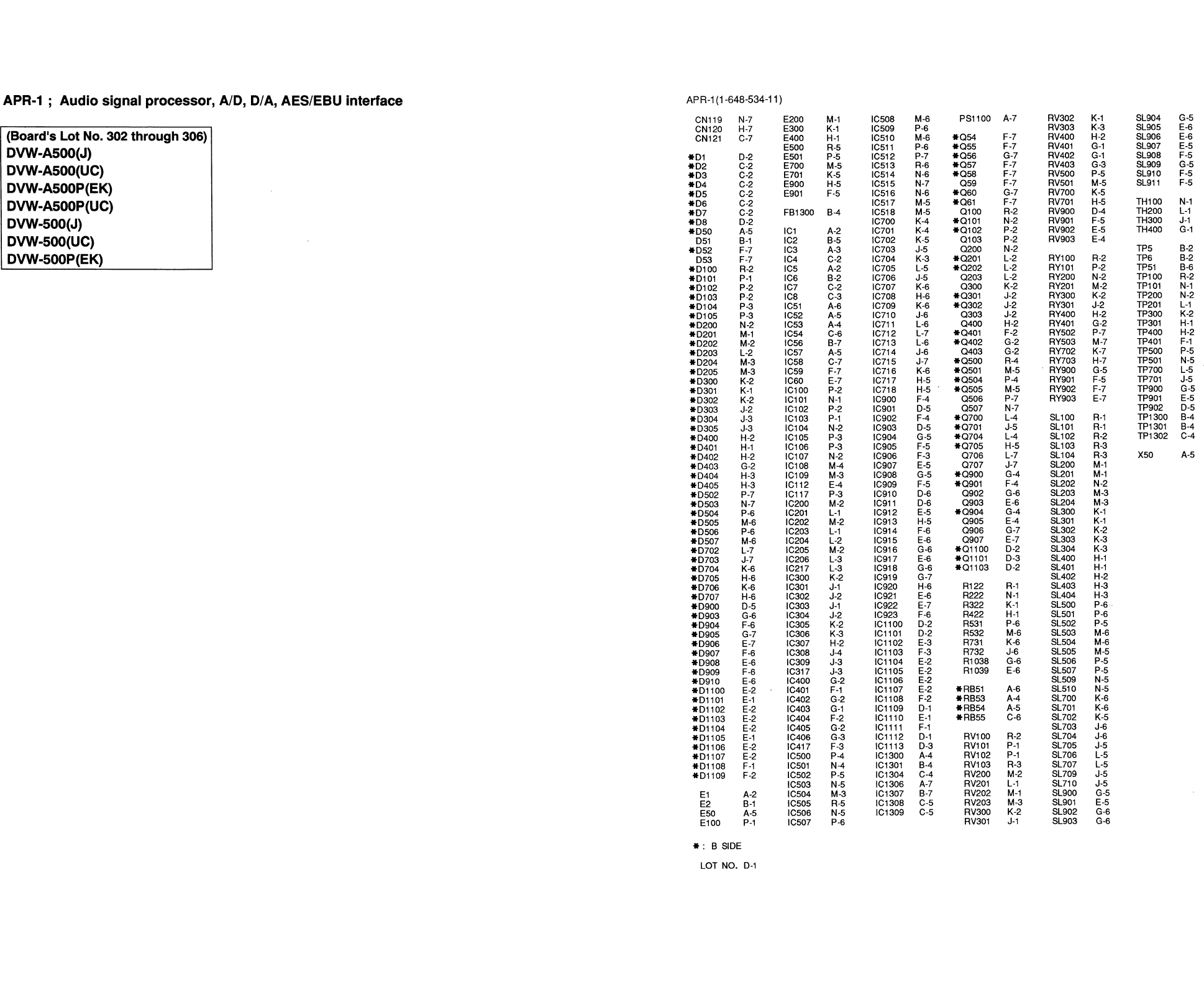DVW-A500P (EK) Serial No. 10001 and Higher