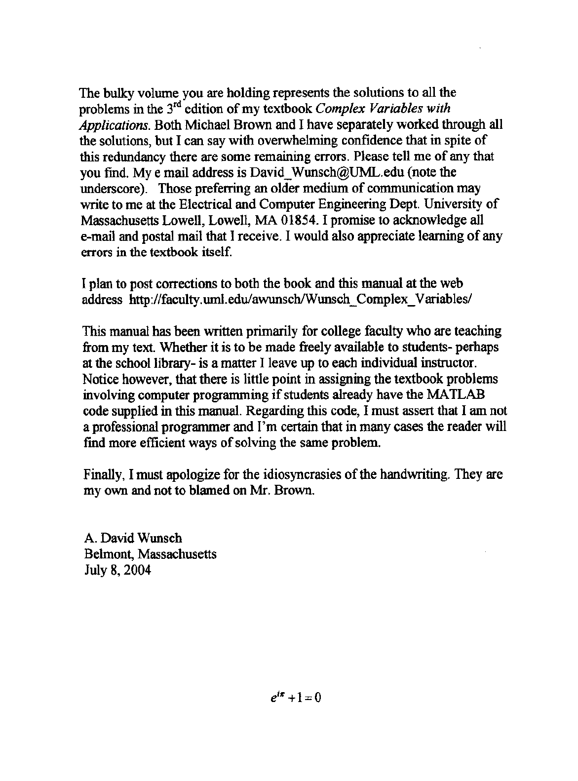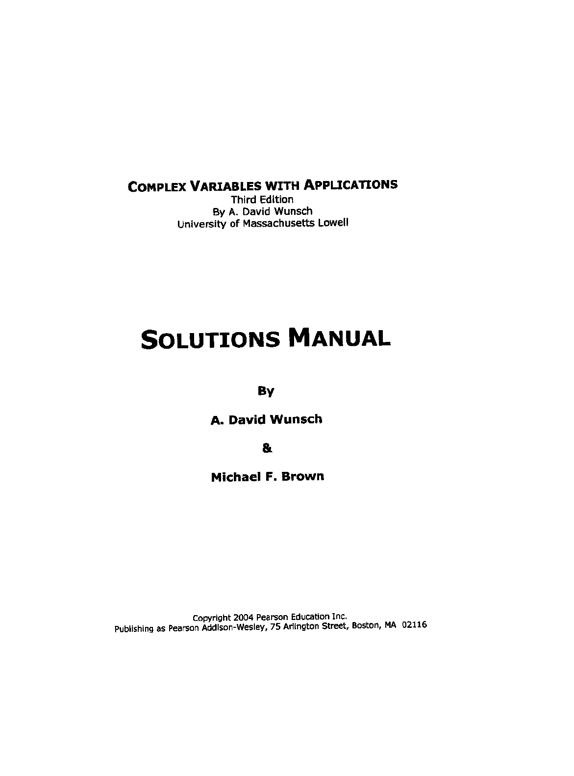 WunschSM David A. Wunsch Solutions Manual To Complex Variables With Applications 2004