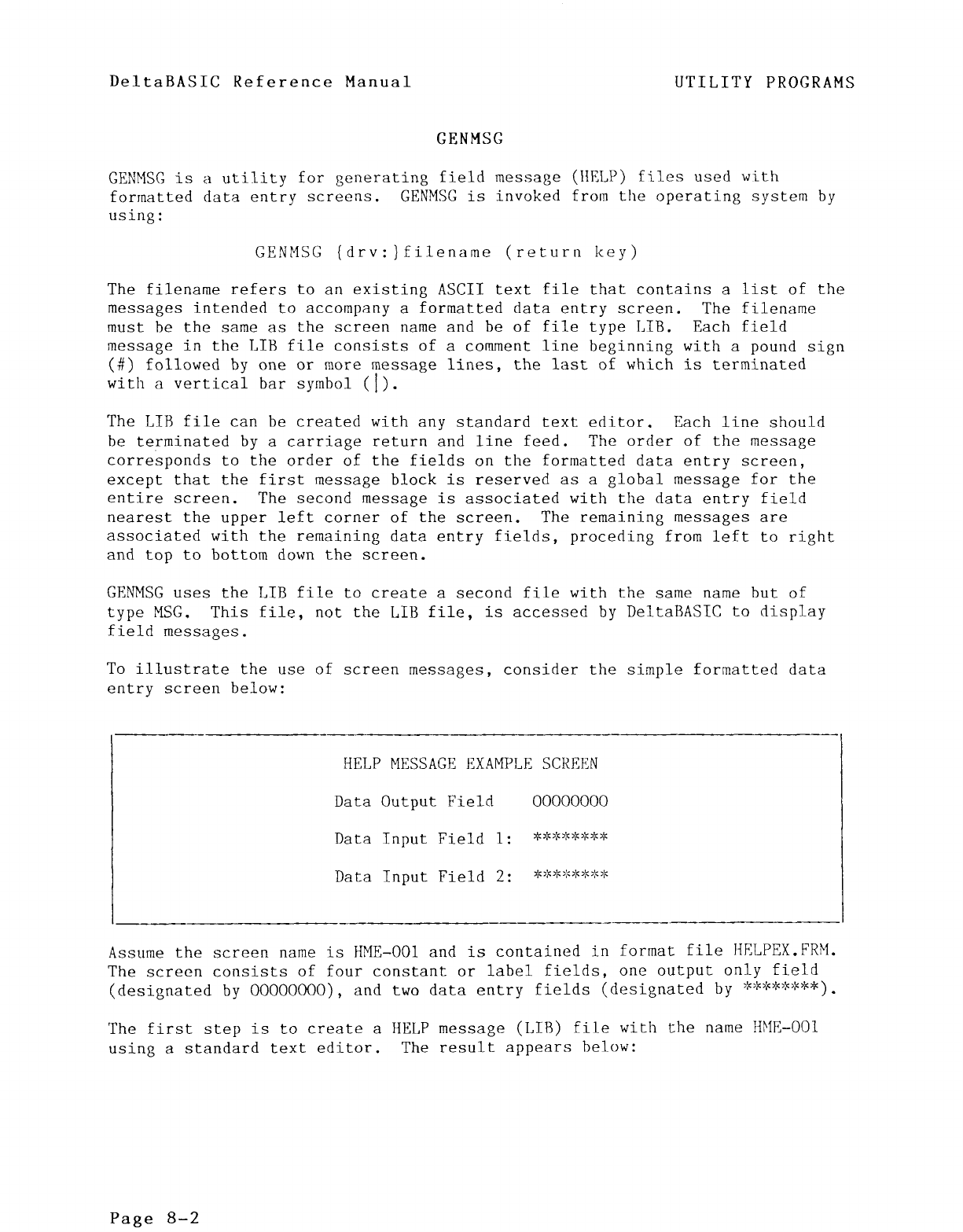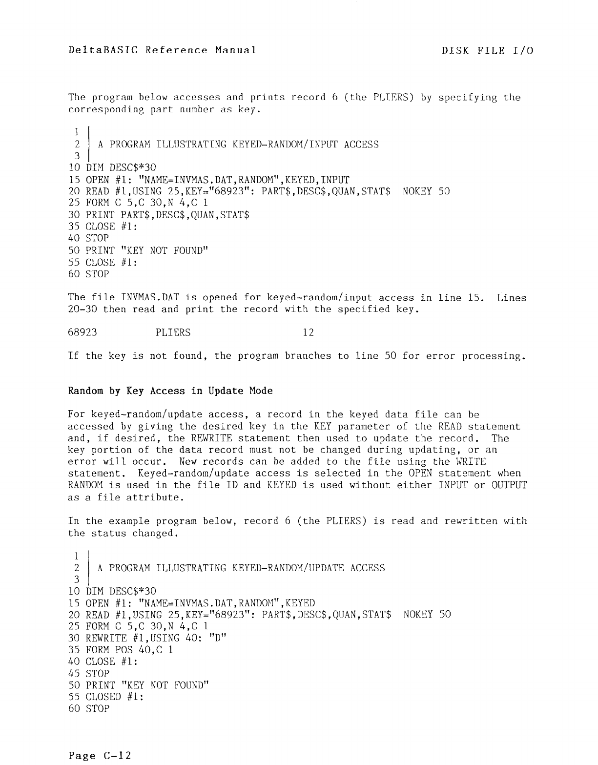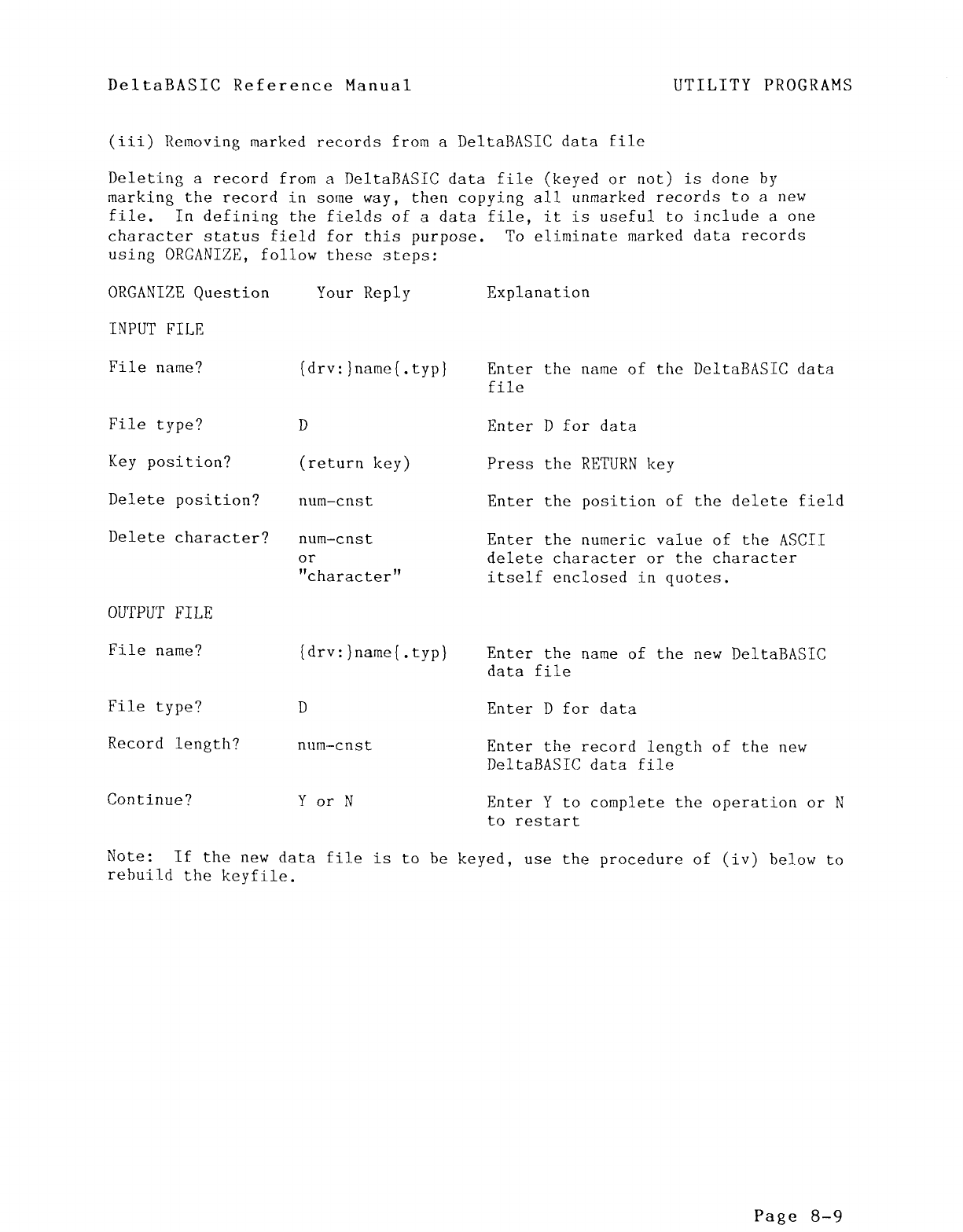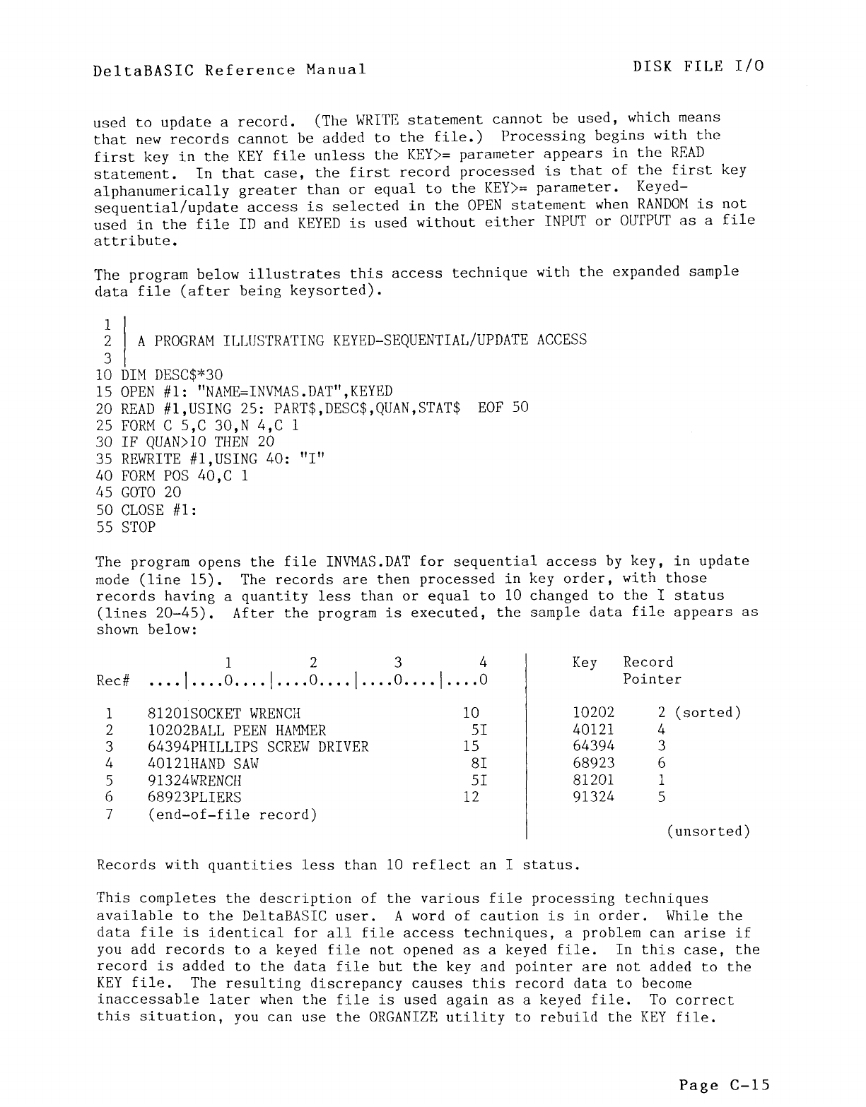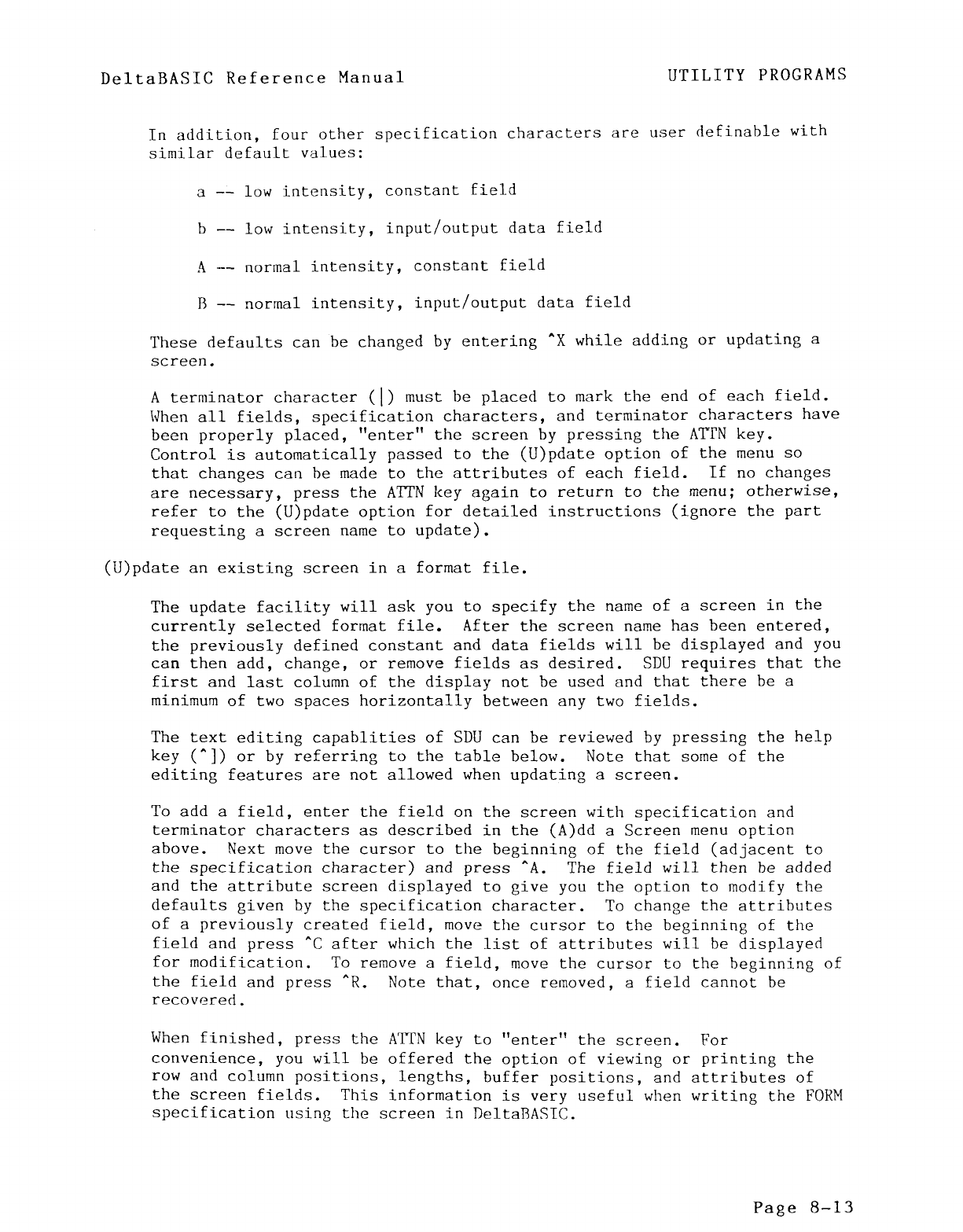 DeltaBASIC provides fast access to files, using rapid UTILITY PROGRAMS INCLUDED Mandatory Field Entry/Fill