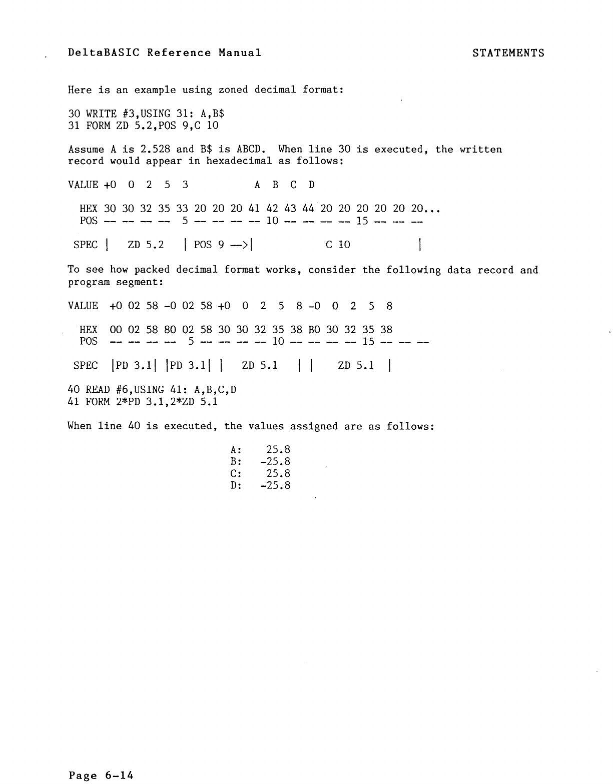 STATEMENTS dard 8" diskette (SS/SD), is available. 0D