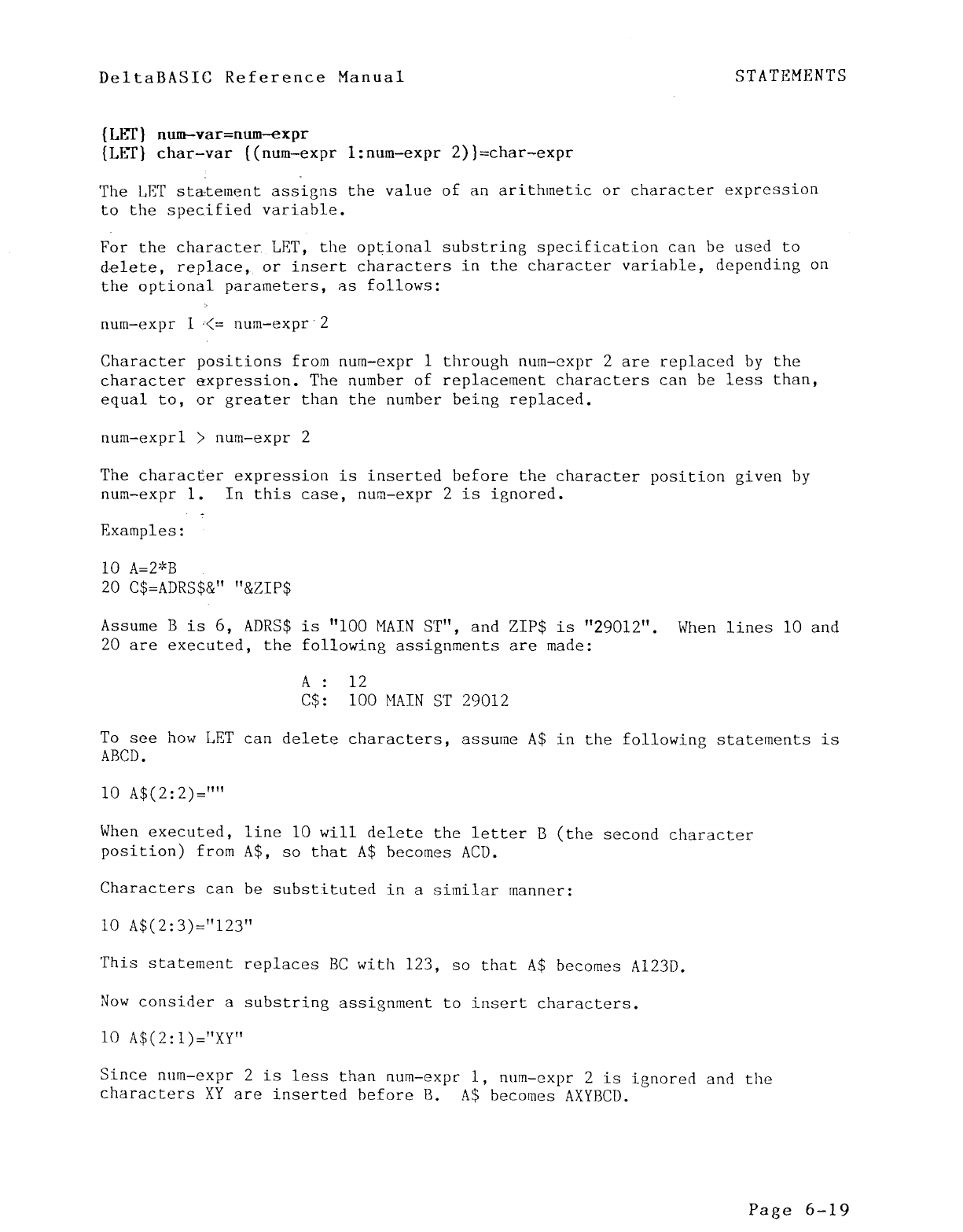 LET RETURN applications. DeltaBASIC, based on apowerful sub- i