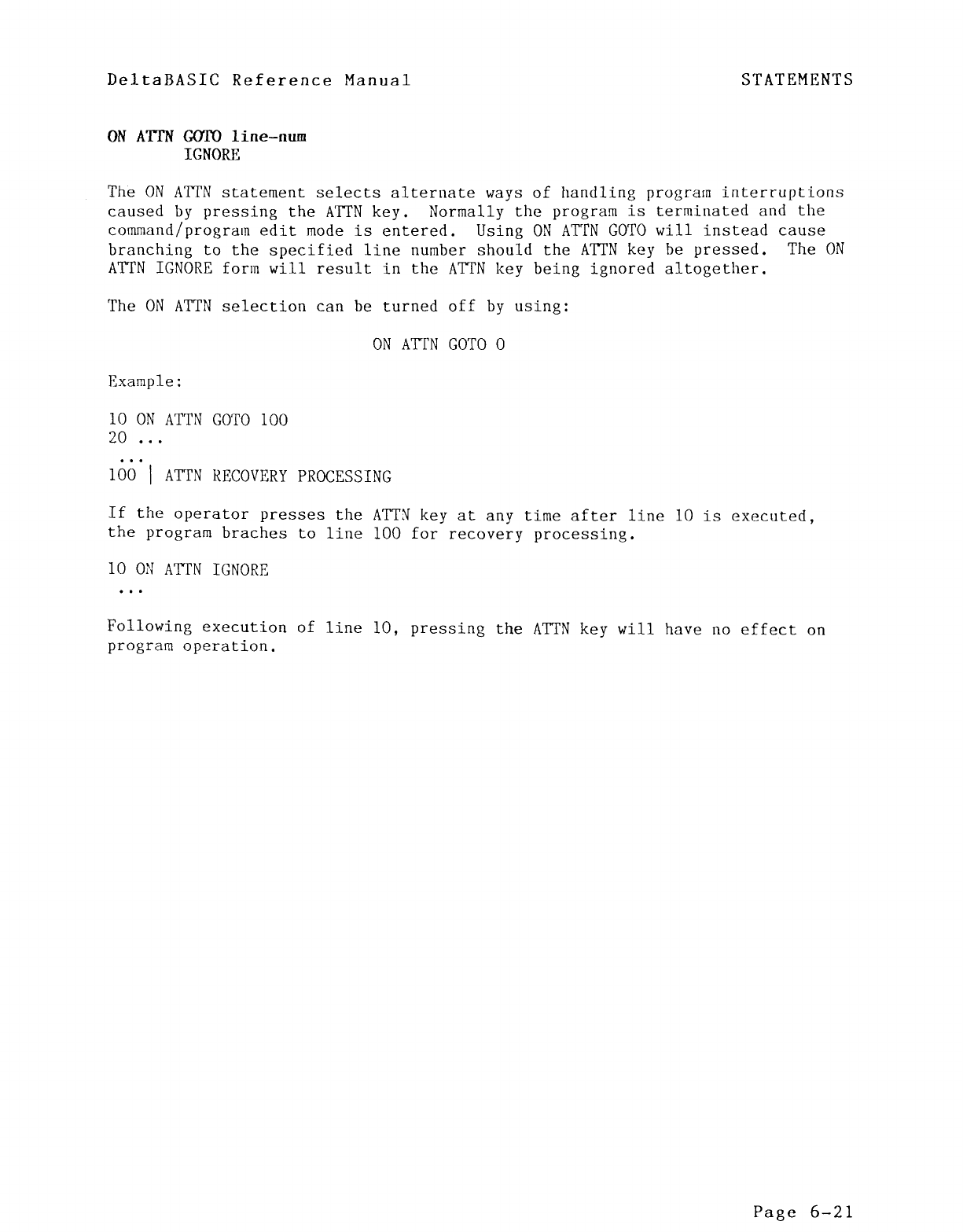 Keyed access-Random, C-ll ON ATTN IGNORE, 6-21
