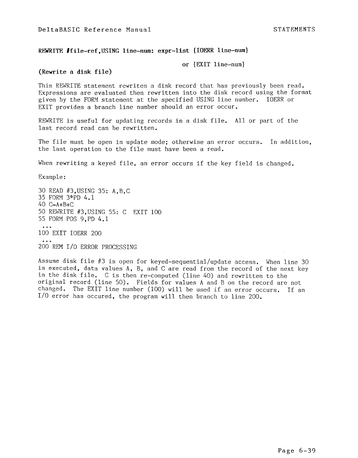 Numeric Expressions, 2-l REWRTTE-disk file, 6-9, 6-11, 6-39