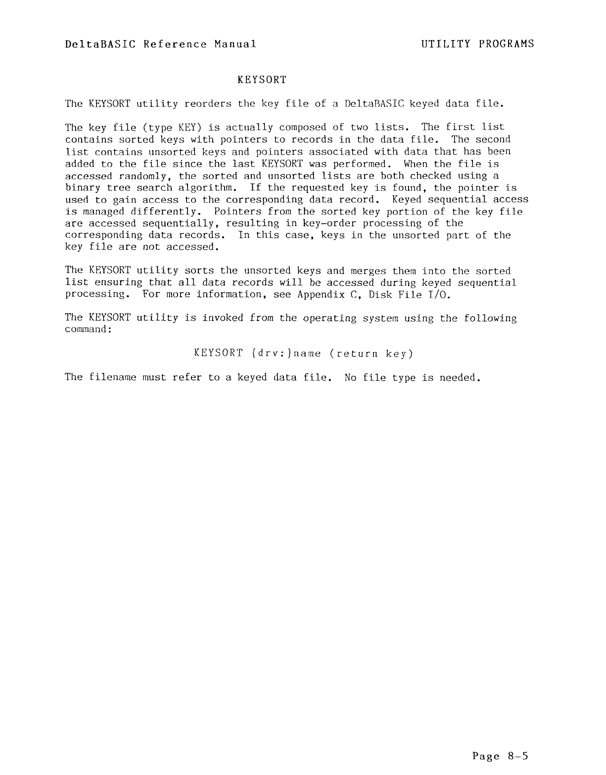 KEYSORT, 8-l, 8-5 POS, 7-2