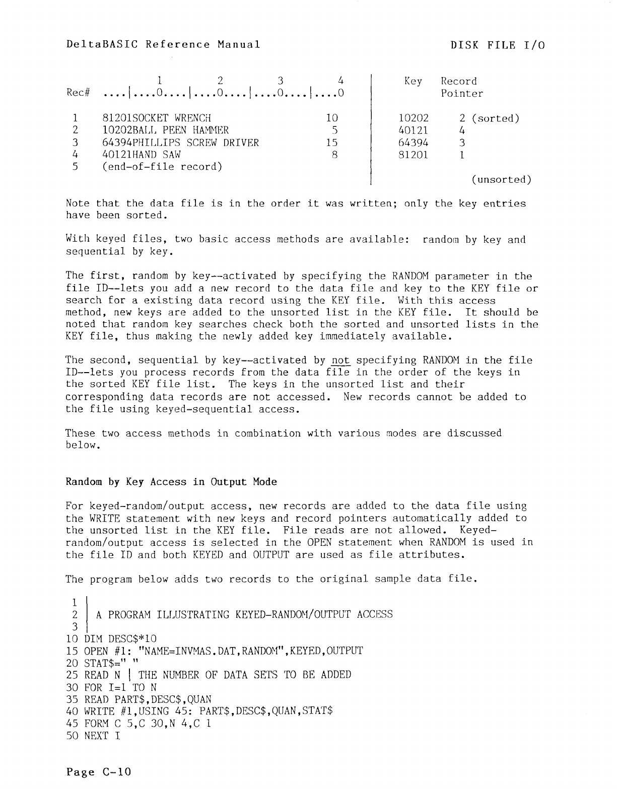 Keyed access-Random, C-lO