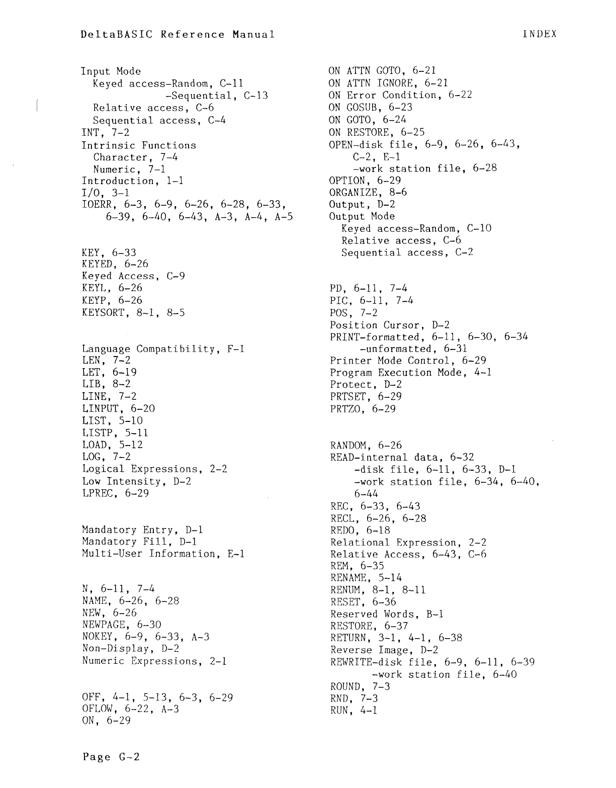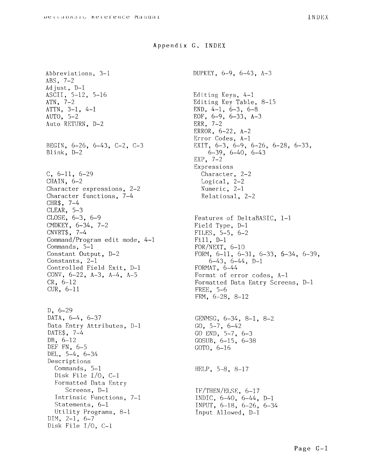 DeltaBÁSIC Reference Manual INDEX