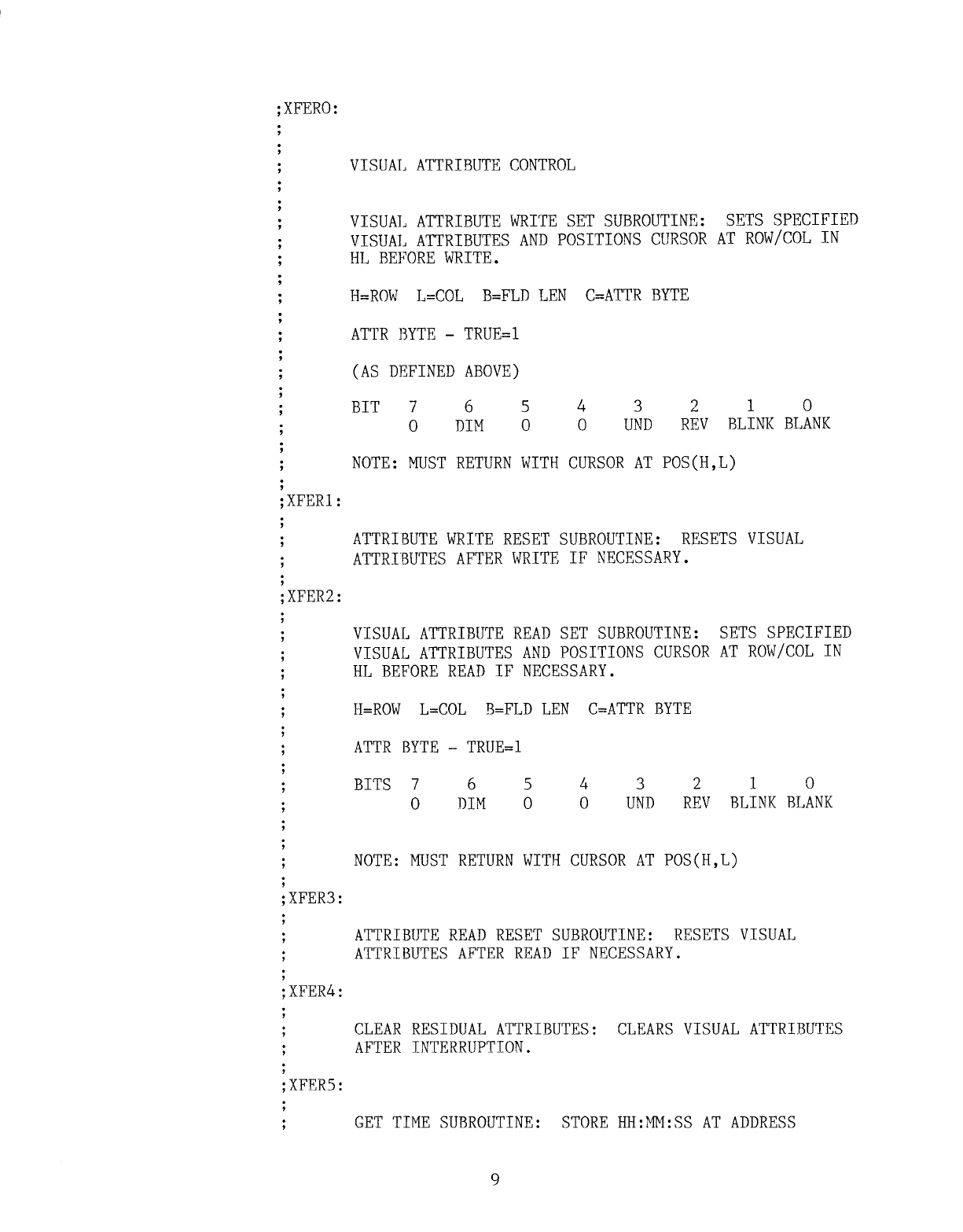 Visual screen attributes, function keys, arrow keys, i,,.'i