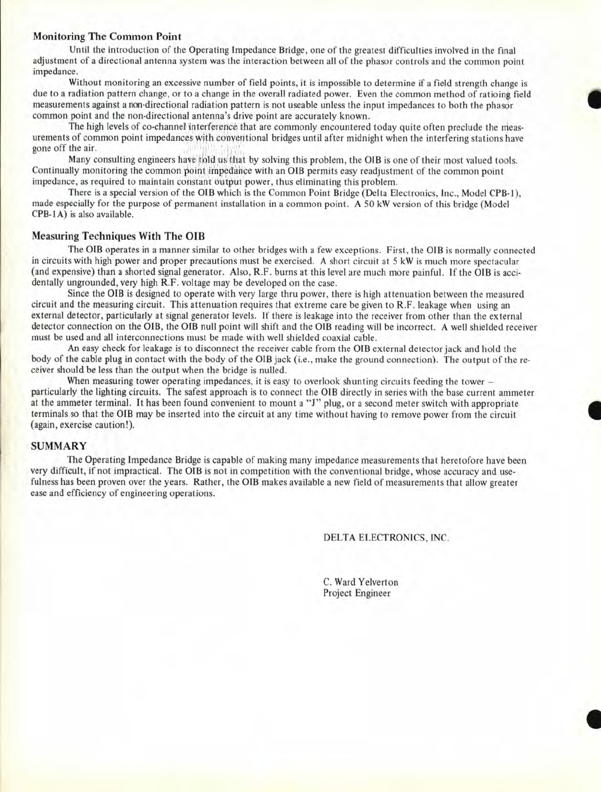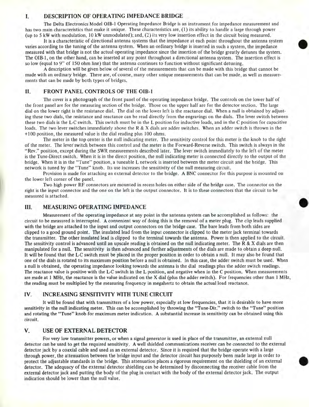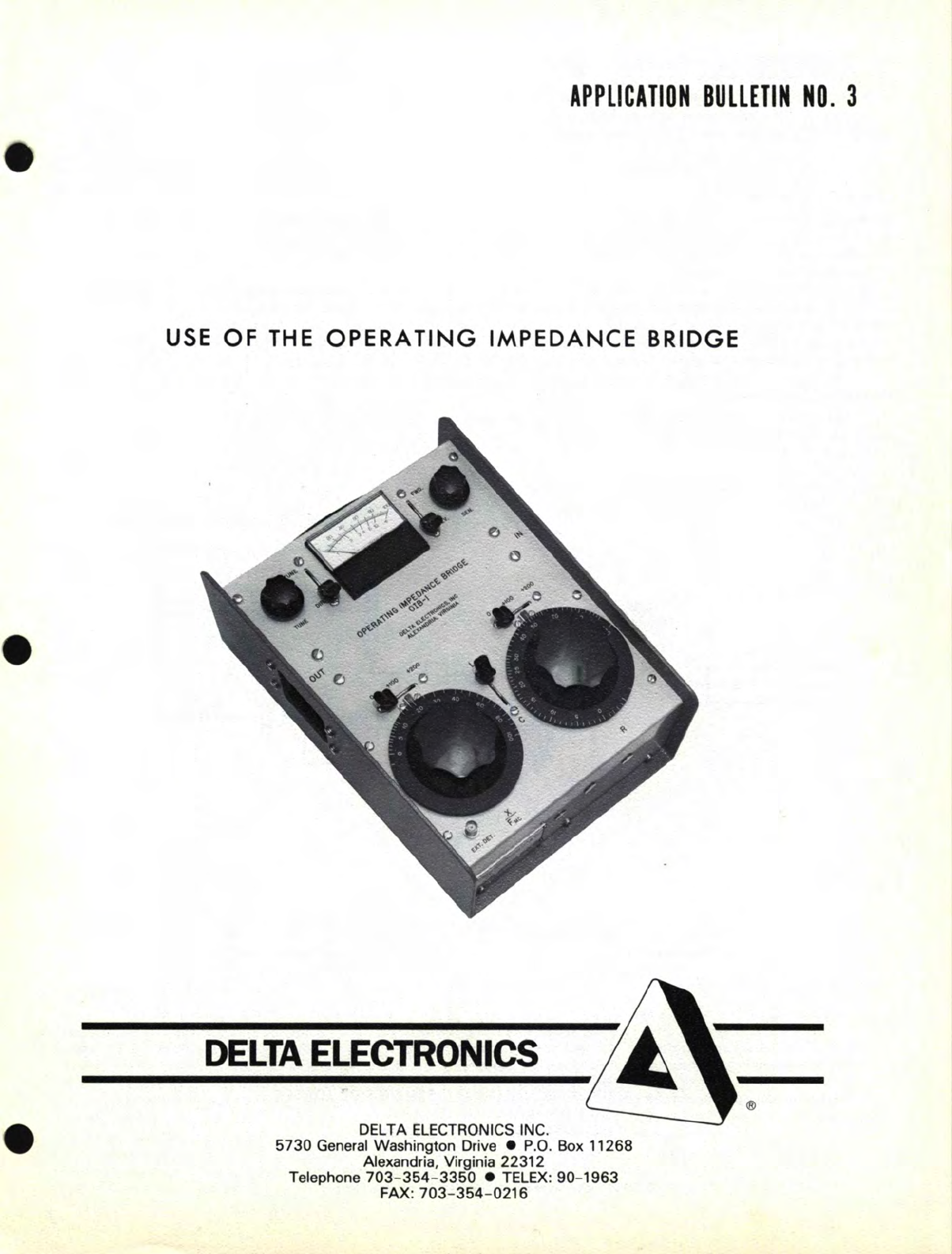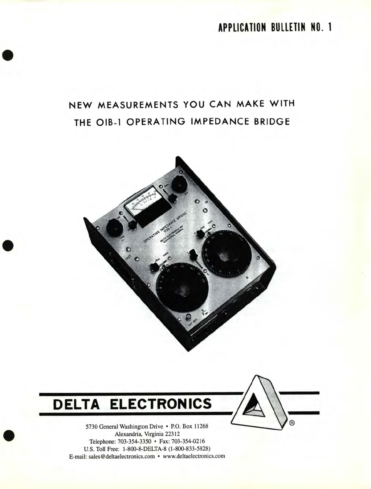 User Manual: Delta Electronics OIB-1 Operating Impedance Bridge Application Notes 1 and 3