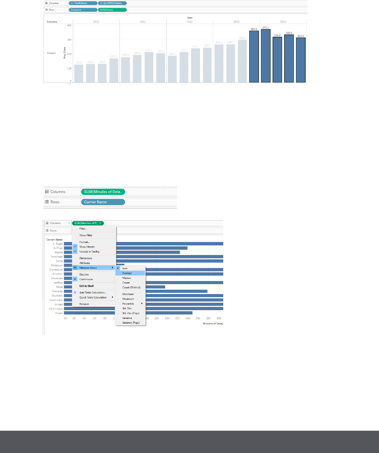 lay per Flight) on Columns and change the measure’s aggregation to Average.
