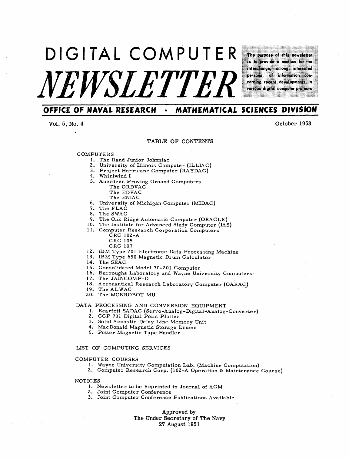 Digital_Computer_Newsletter_V05N04_Oct53 Digital_Computer_Newsletter_V05N04_Oct53