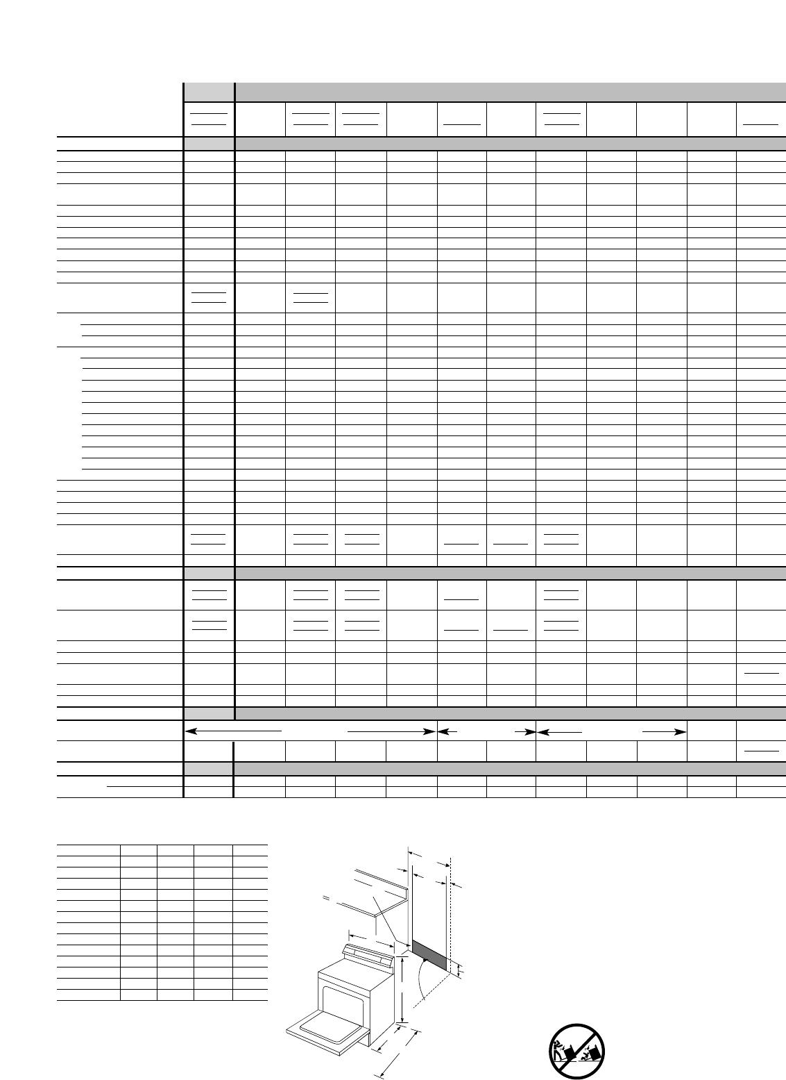 40" Electric Ranges.........................................................................................................................95........................................................................................189