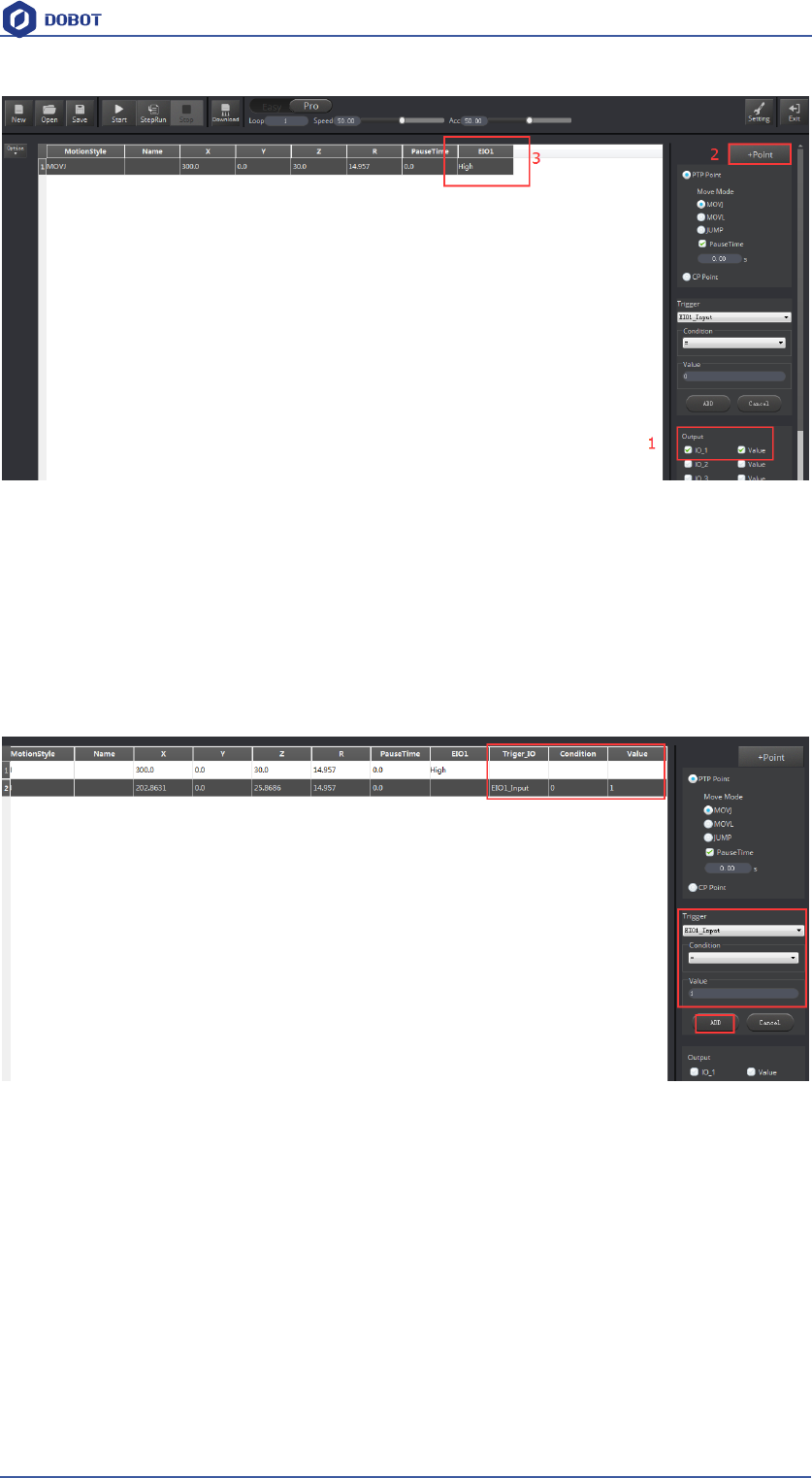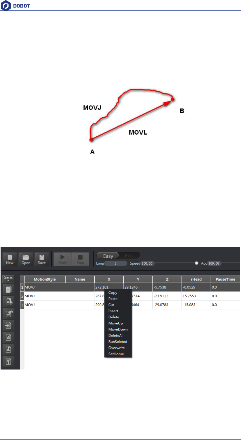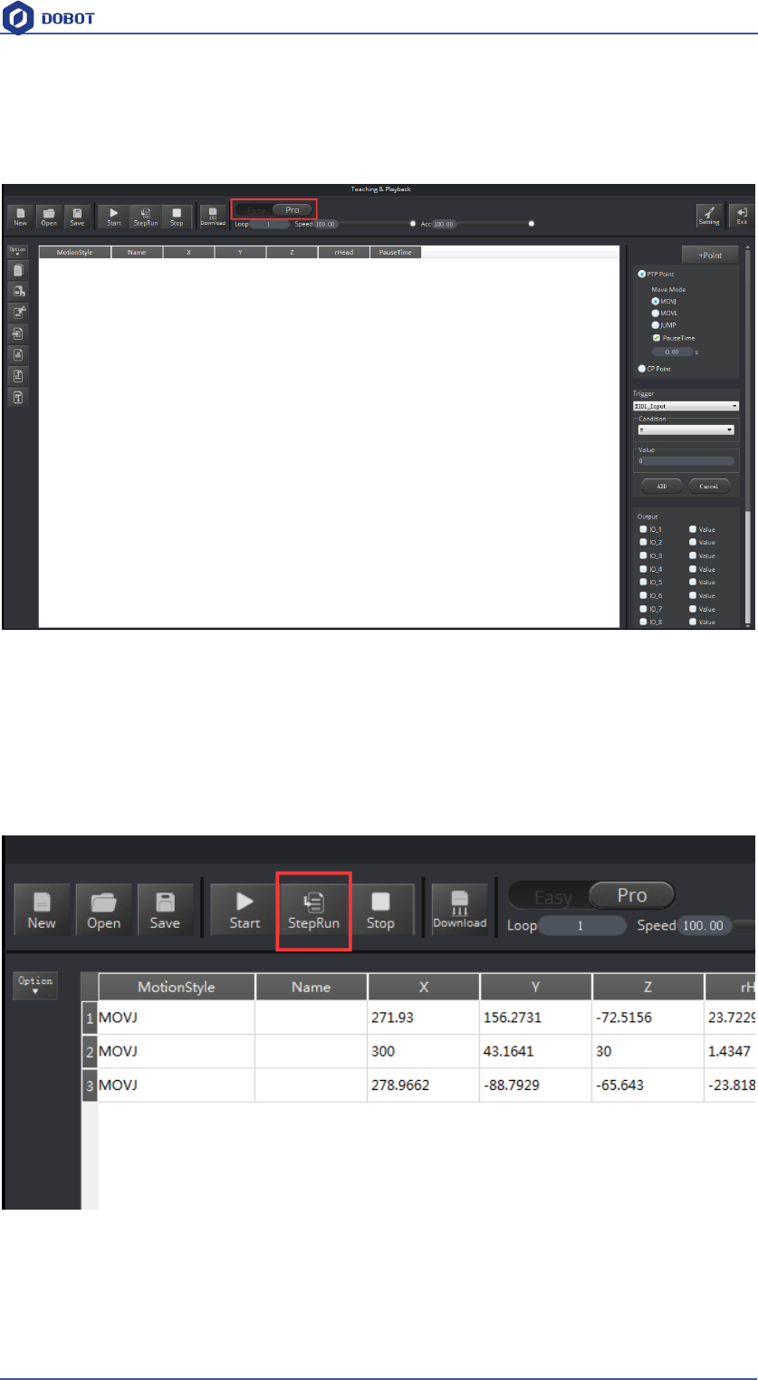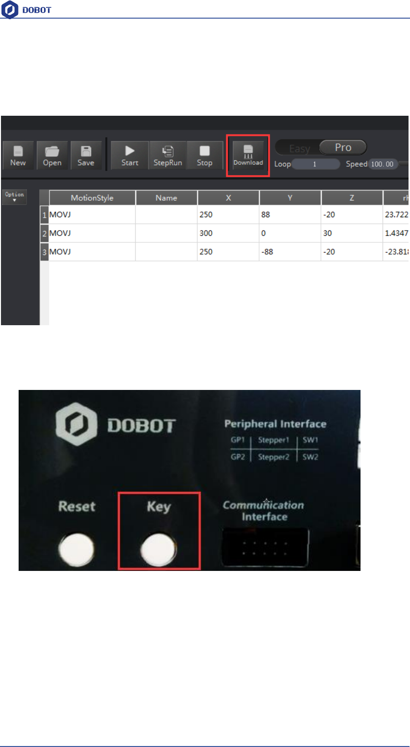 move back and forth 3 times. After this, click Start, Dobot will move accordingly.