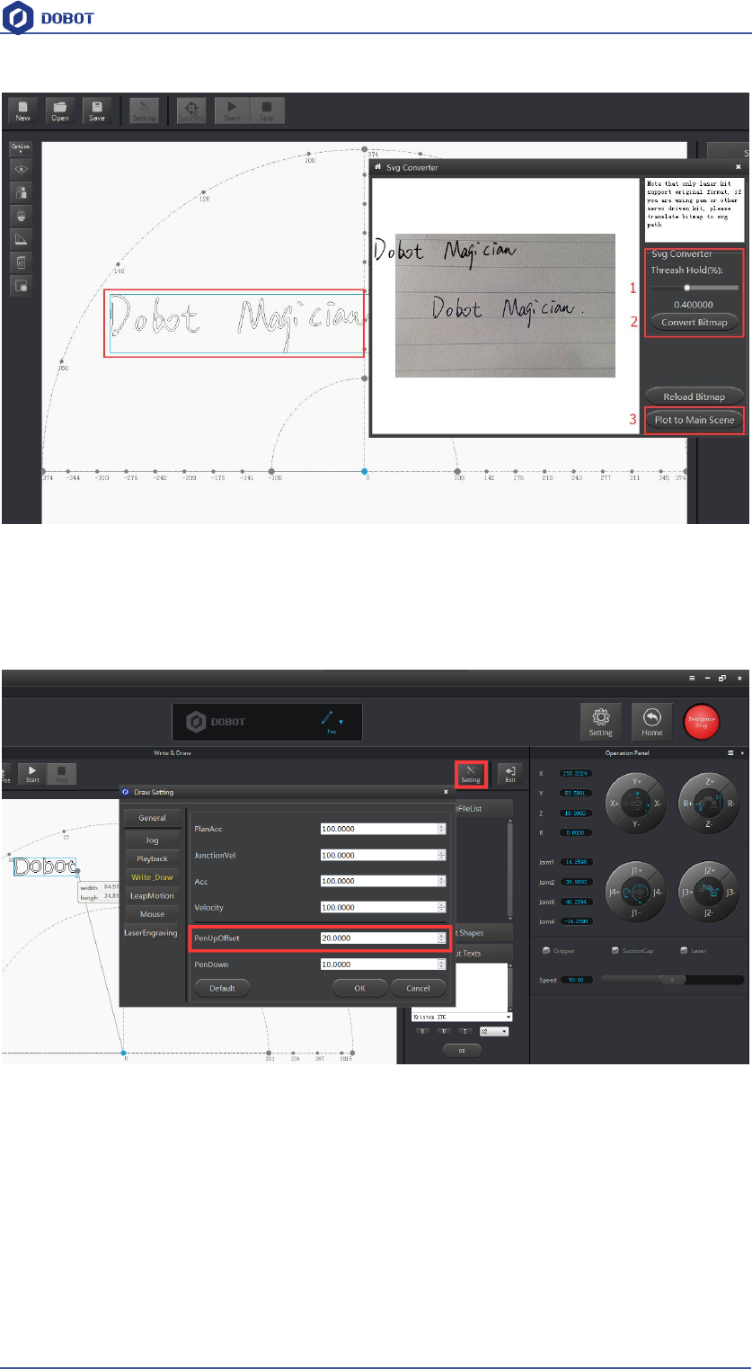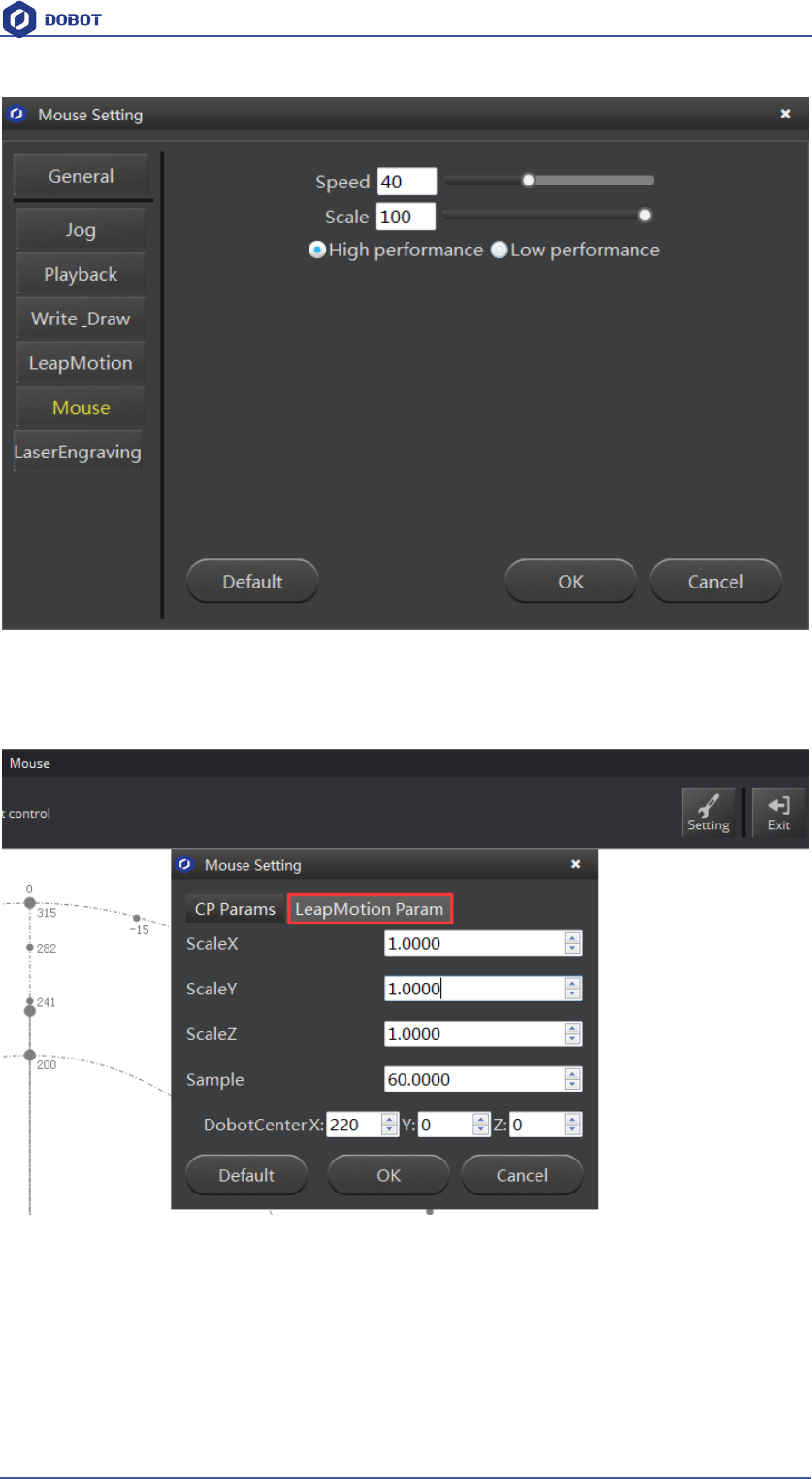 Scale X/Y/Z:Scale ratio between mouse coordinates and Dobot coordinates;