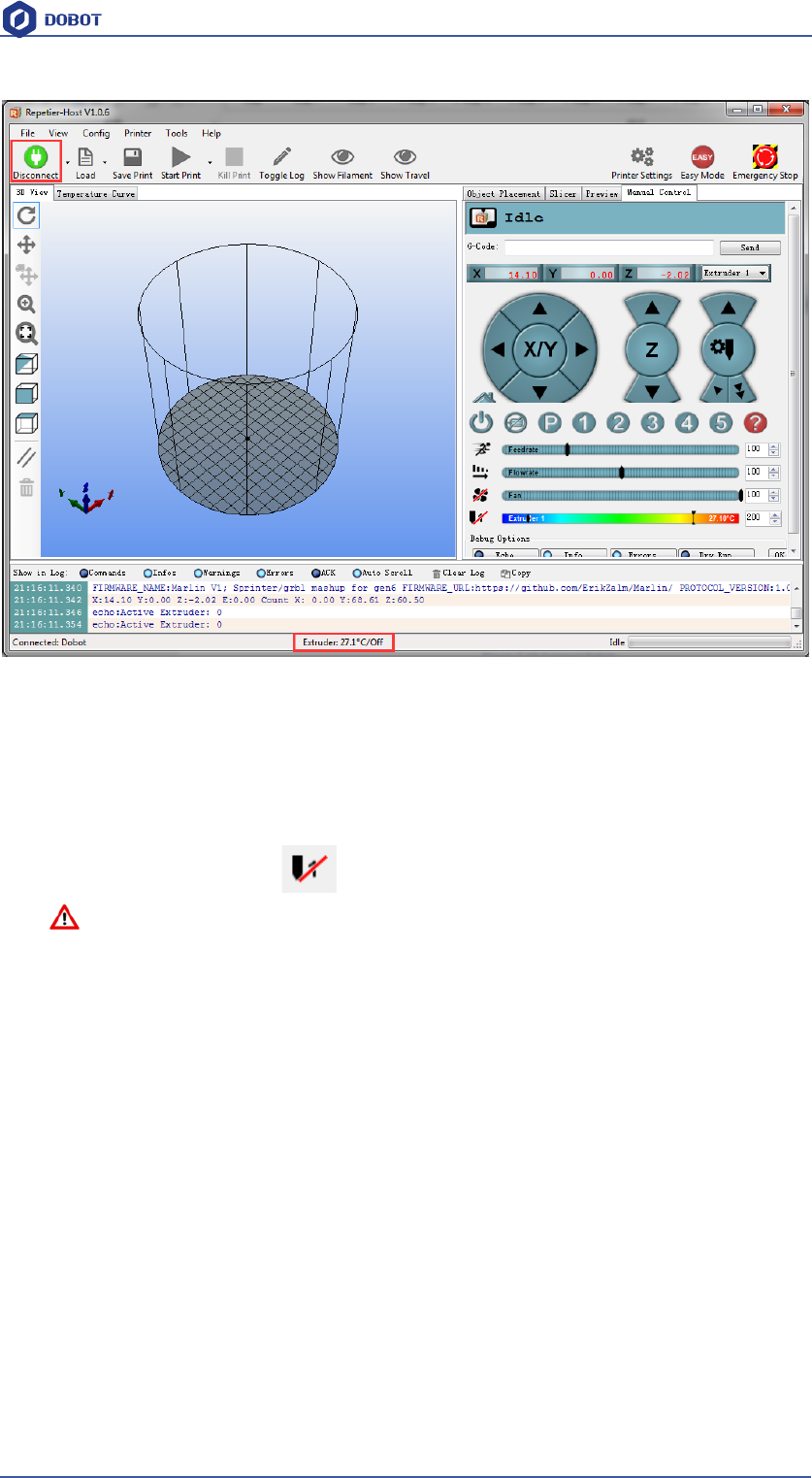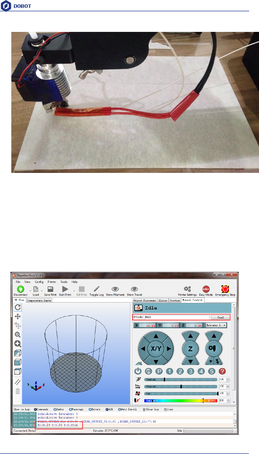 This part includes the current point location info of Dobot, and log information is in the middle,