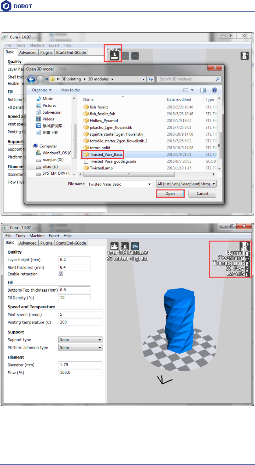 8.2.2 Parameter Settings of 3D printing for the first time ....................................................... 68