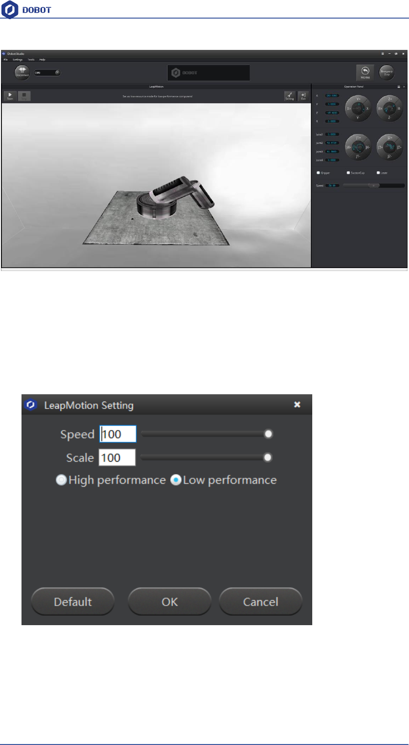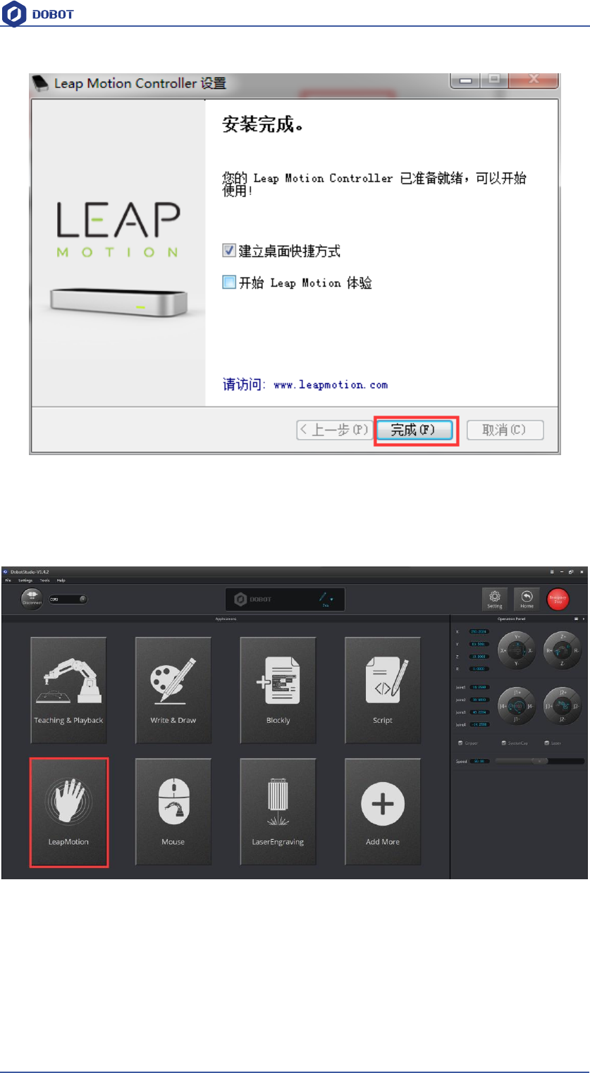 12.3 After preparation, start up the equipment, open DobotStudio, click Leap Motion and enter