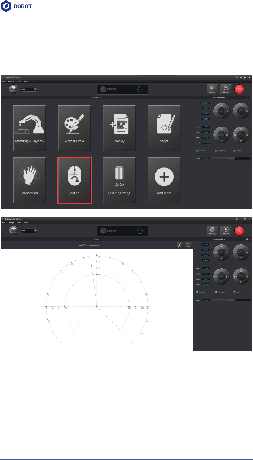 13.1 The software used by mouse controlling is DobotStudio, please open the software, and enter
