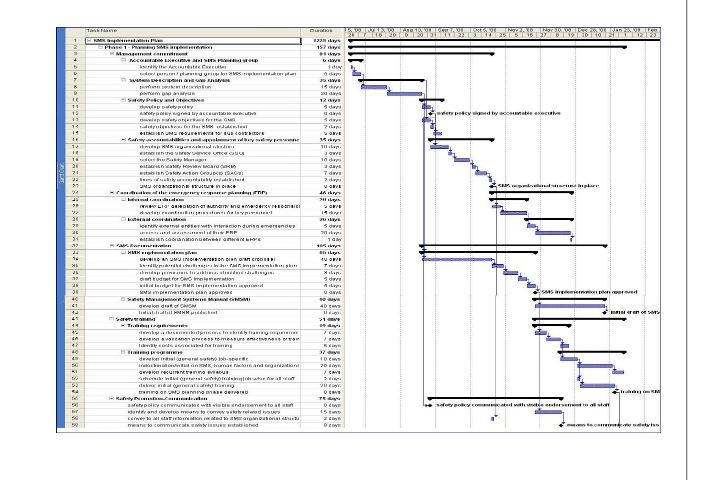 Table 5-A7-4. Sample SMS implementation schedule (Gantt chart)