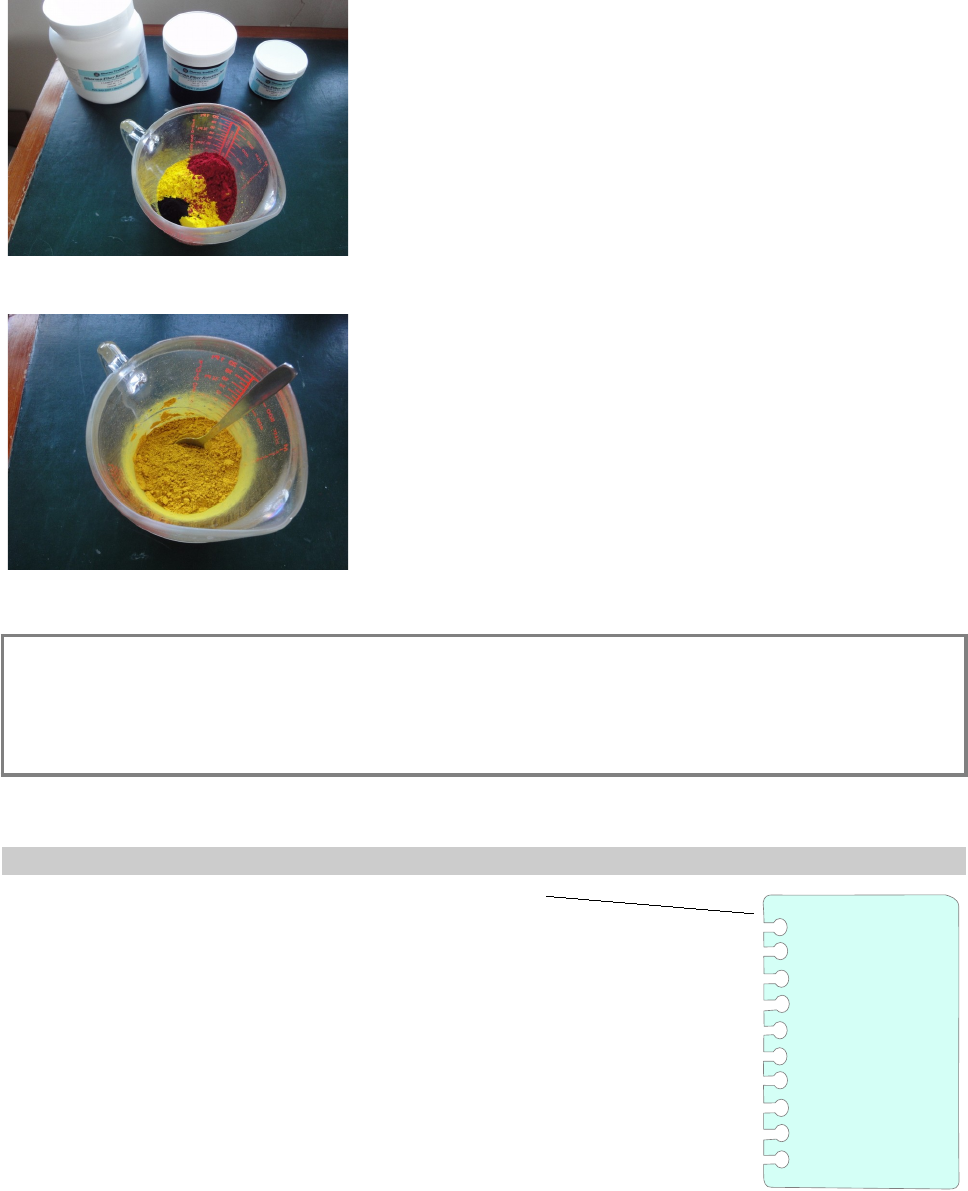 •Focus only on the amount of orange and blue dye in your considerations. Adjust the amount of yellow after