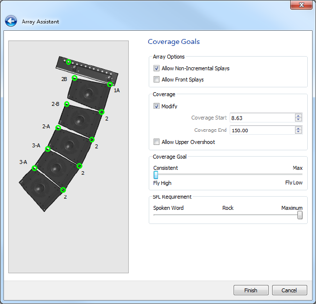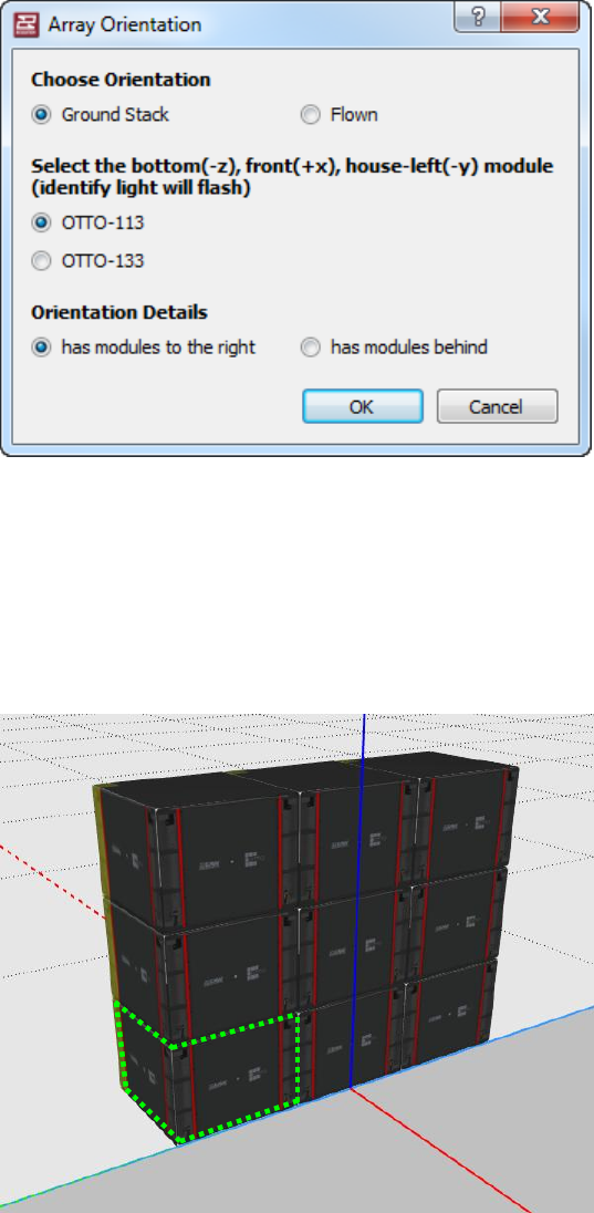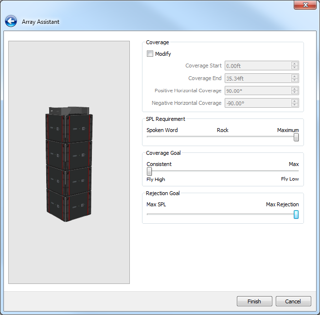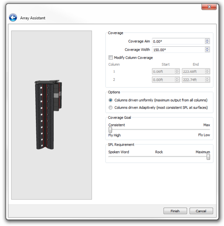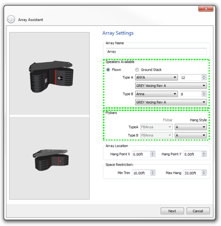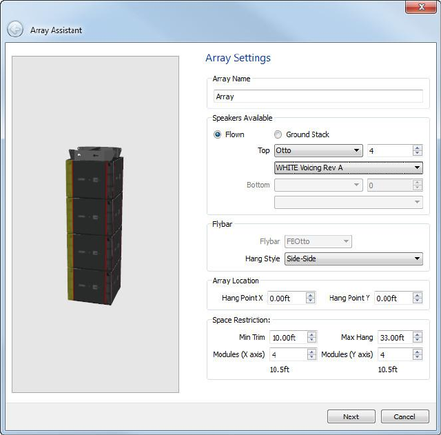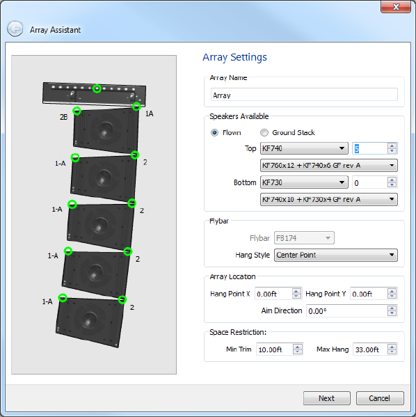 the array’s pick point. The calculated balloon will include any vertical tilt in the array,