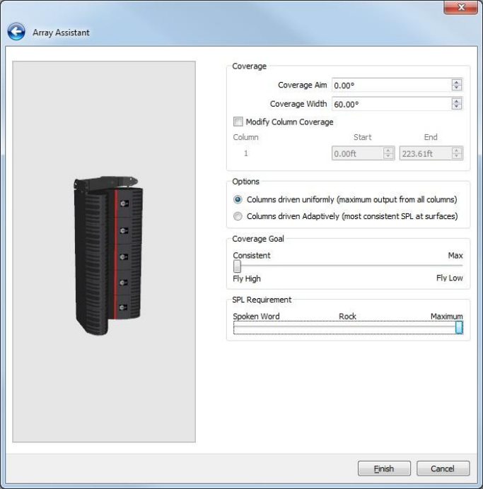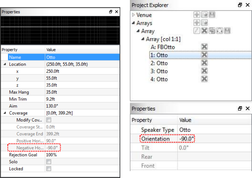 at 0 degrees vertical), it will be necessary to horizontally aim the array within EASE as