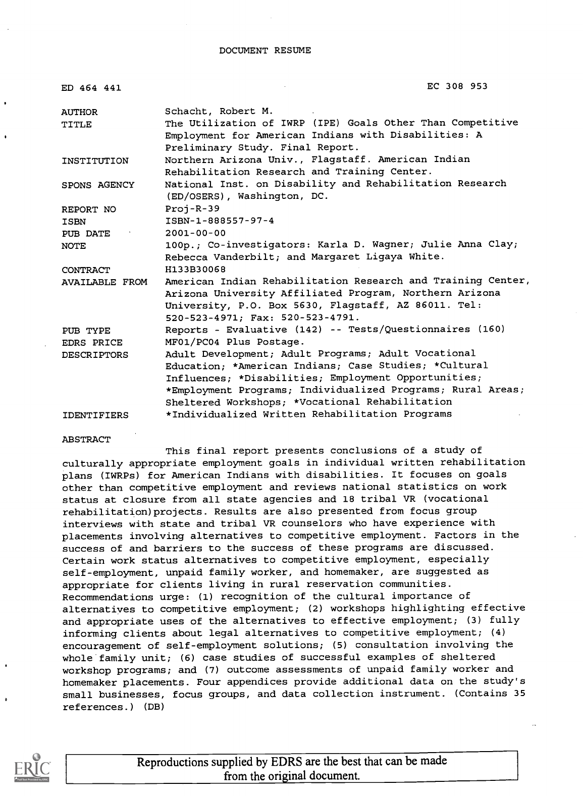 AVAILABLE FROM American Indian Rehabilitation Research and Training Center,