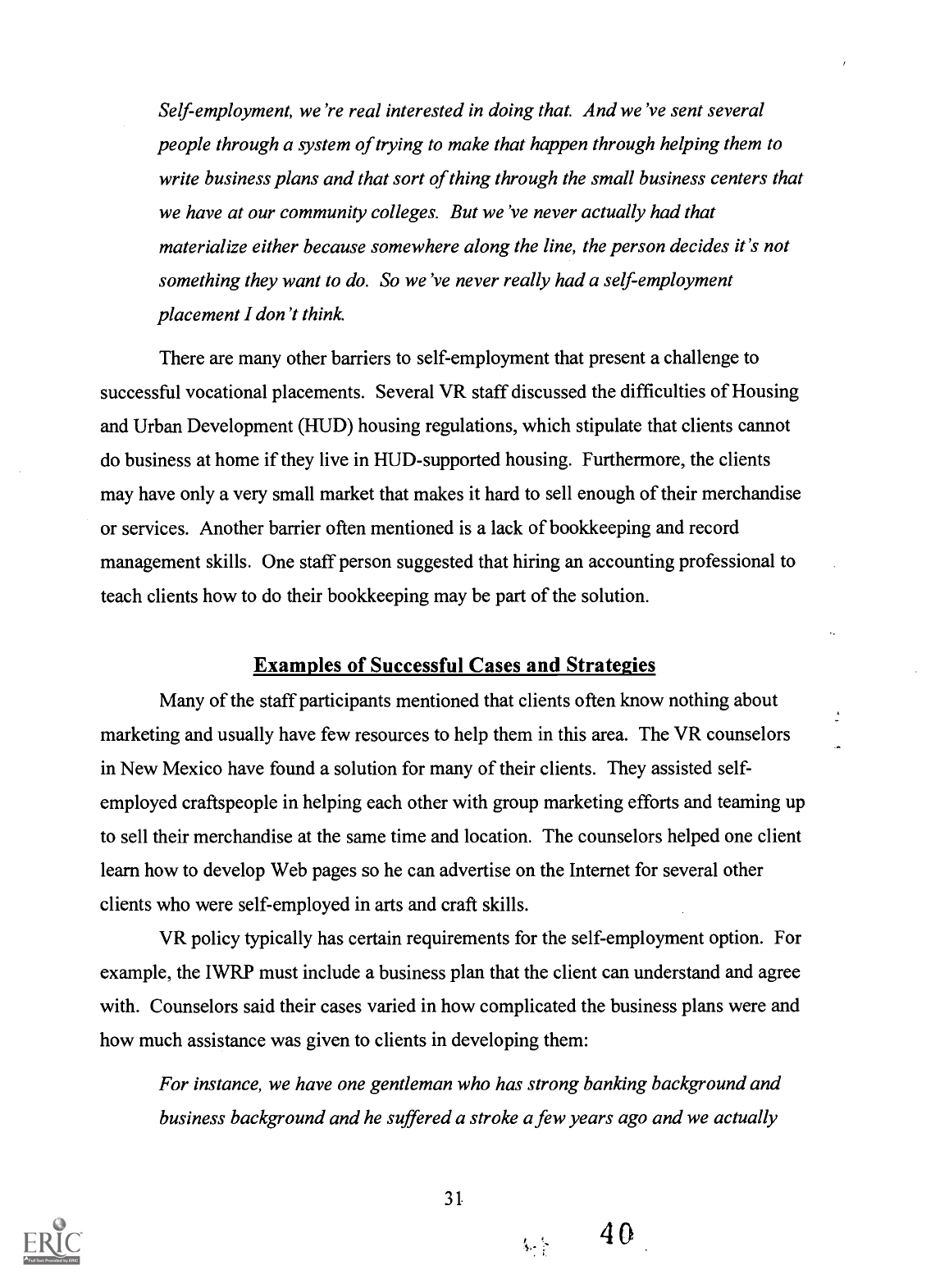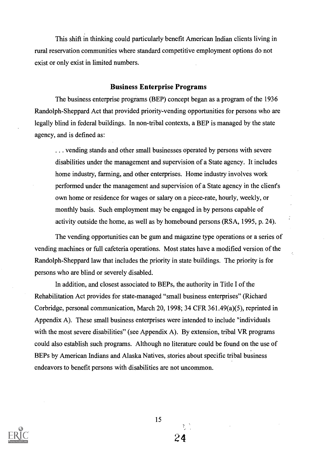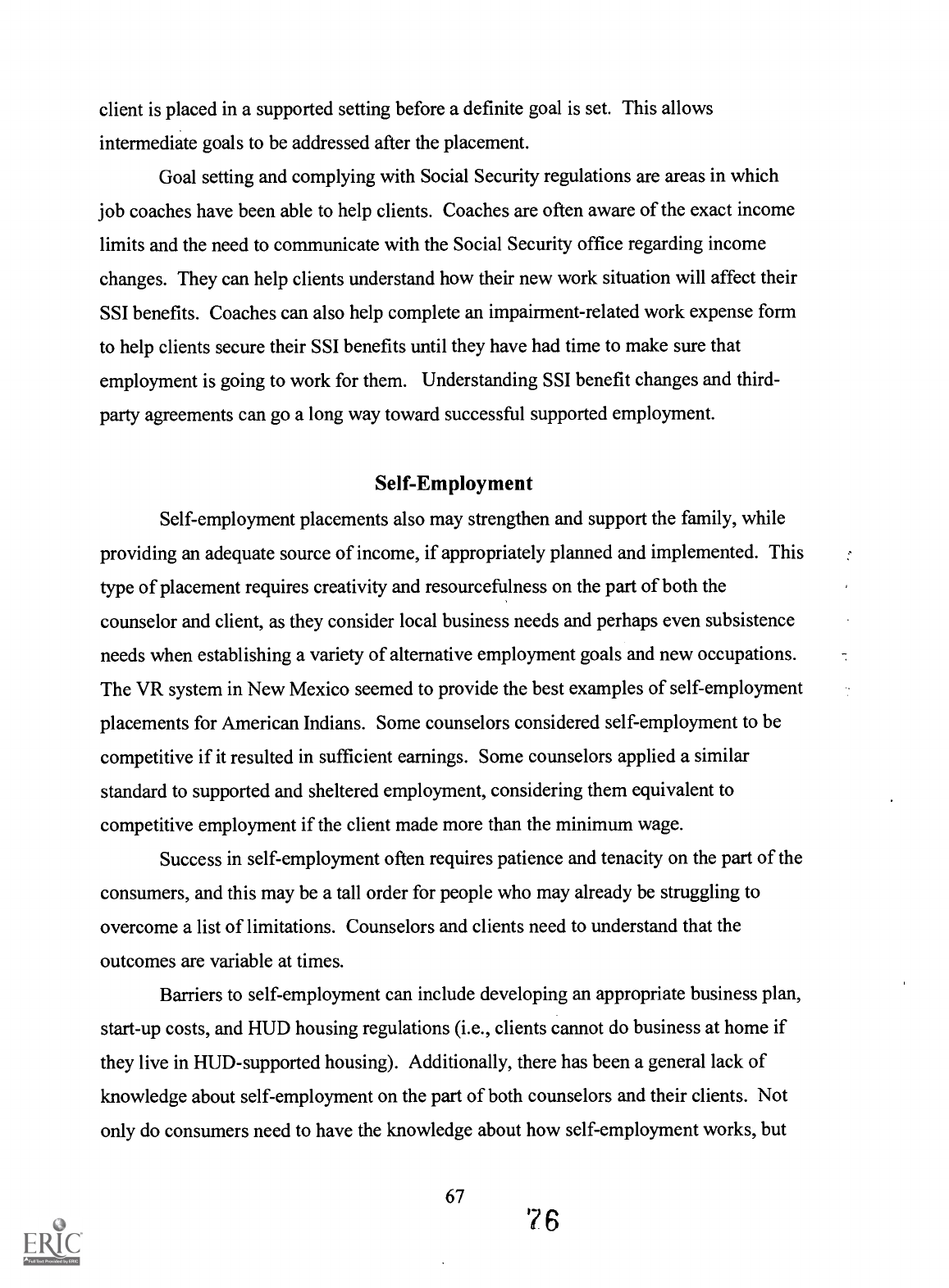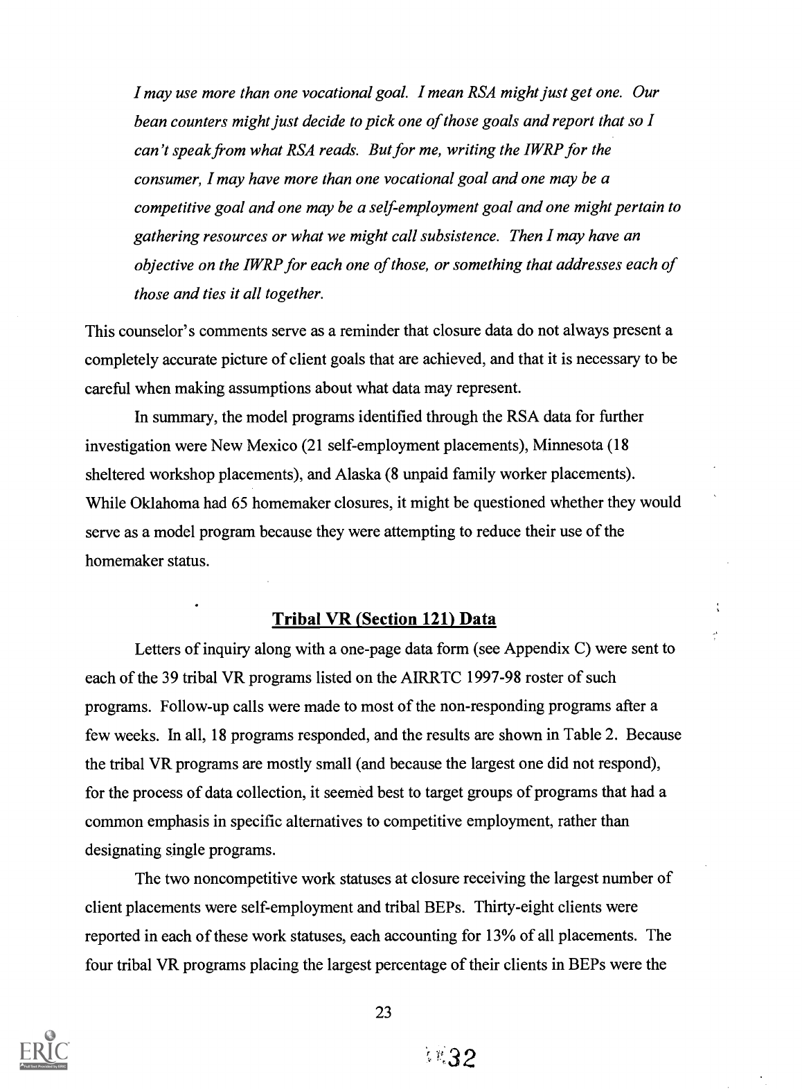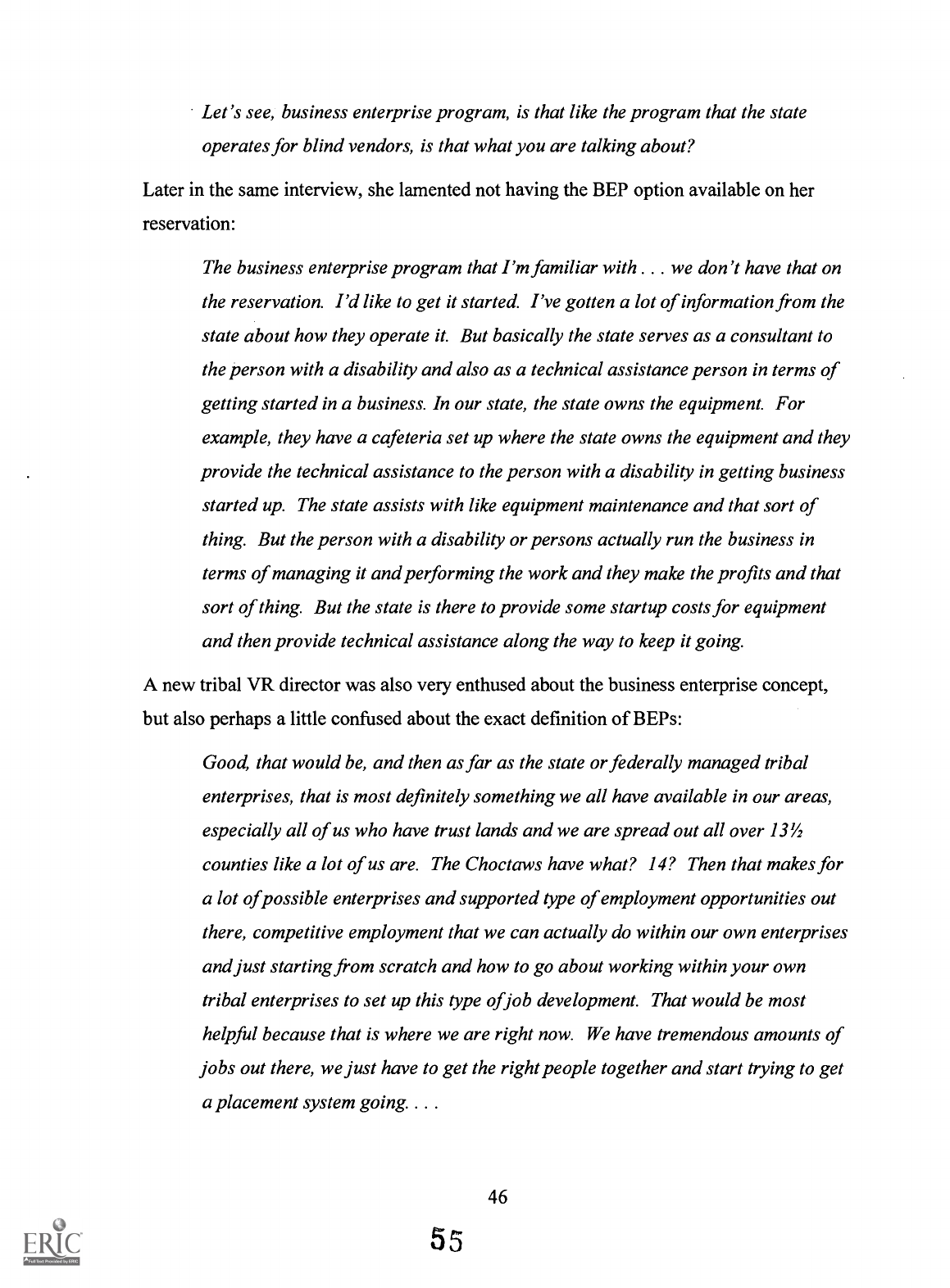 Topic: Self-Employment Placements (June 15, 1998, Tribal VR programs)