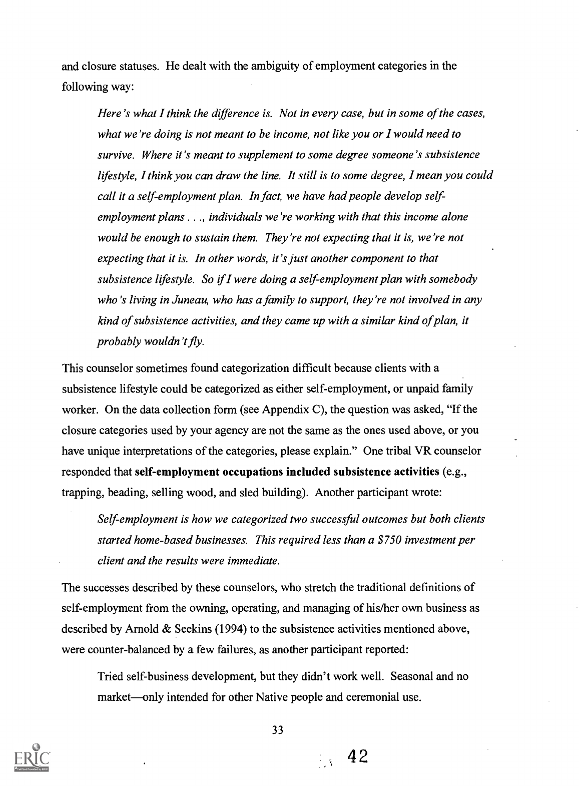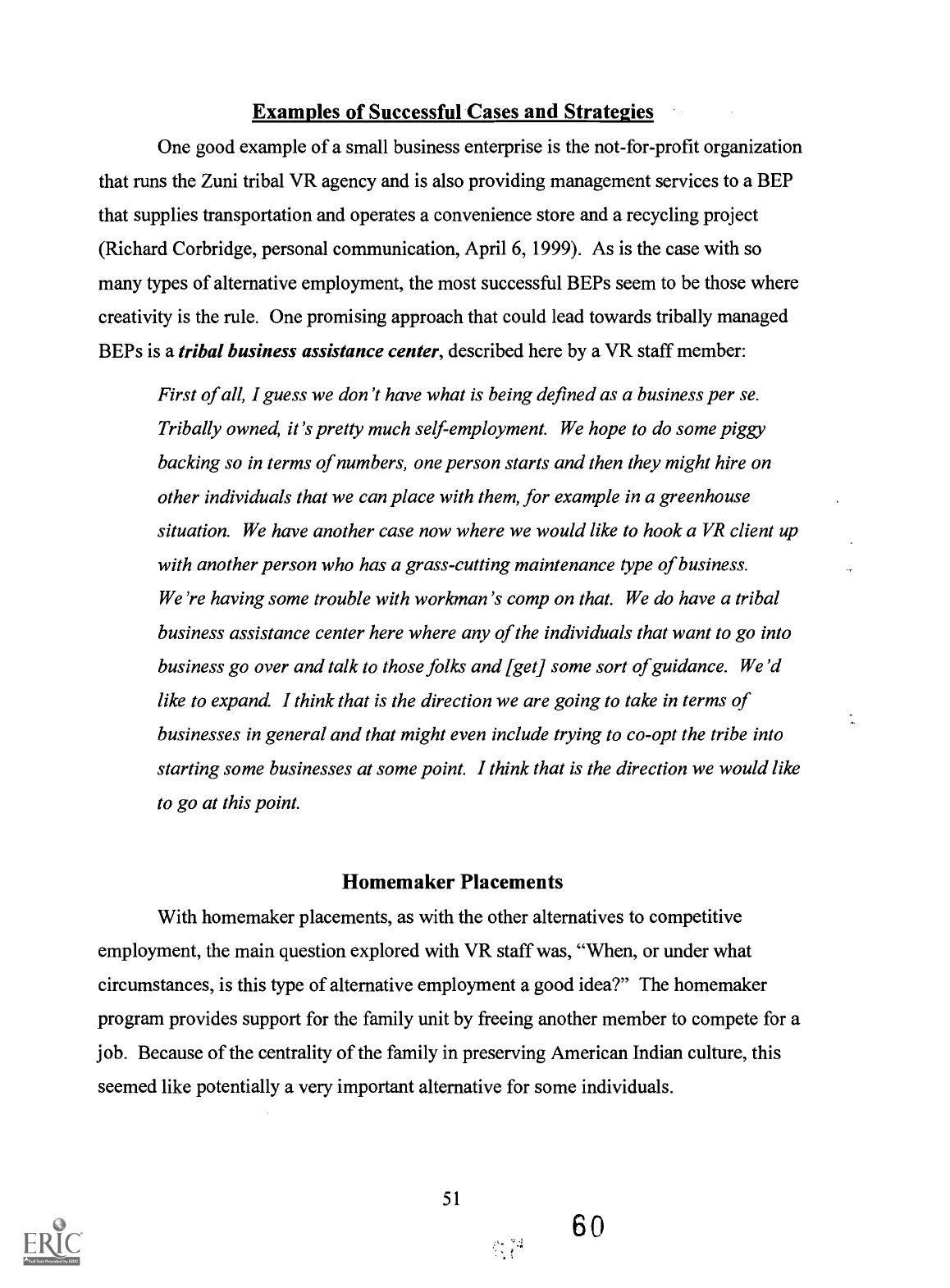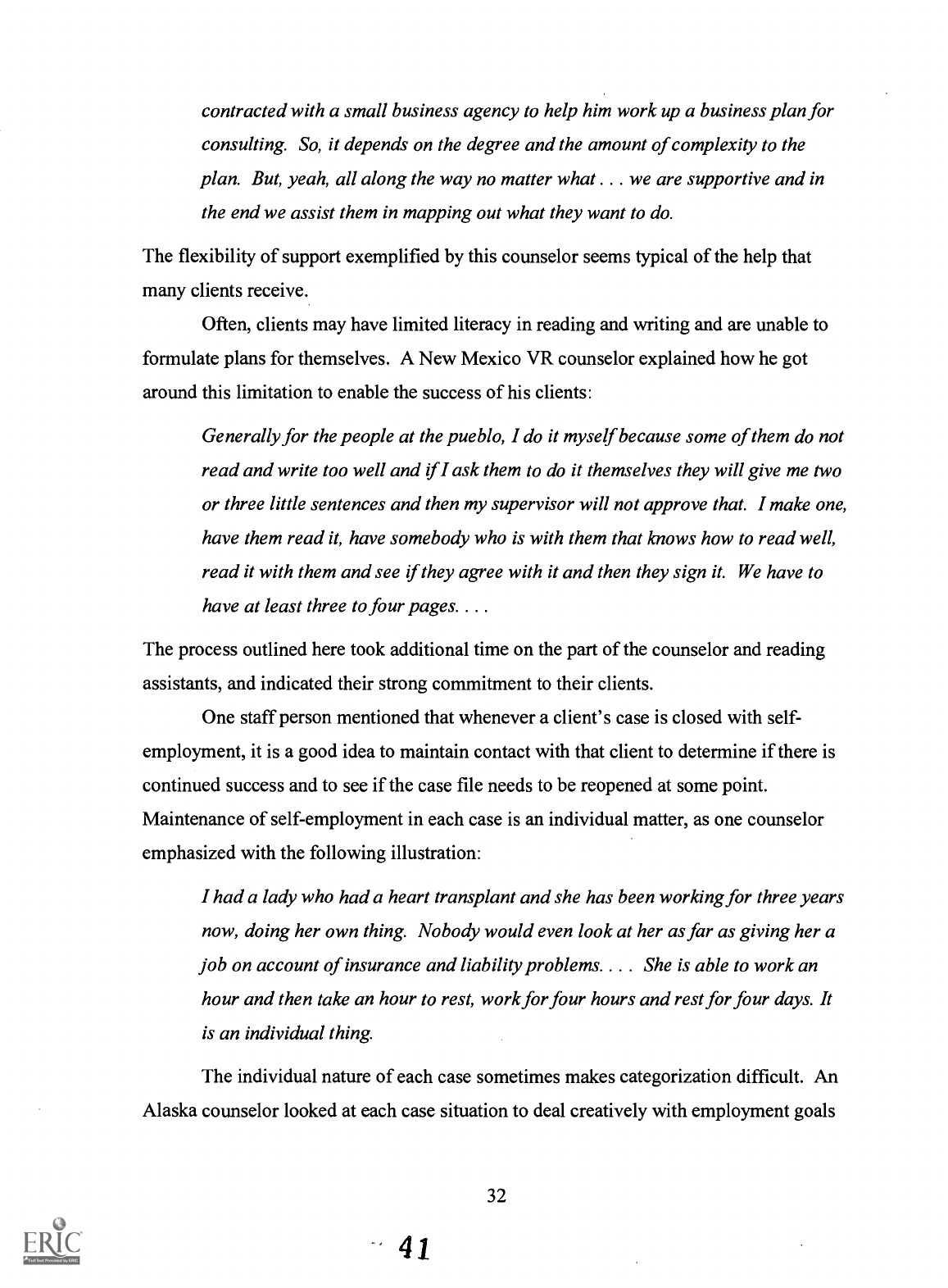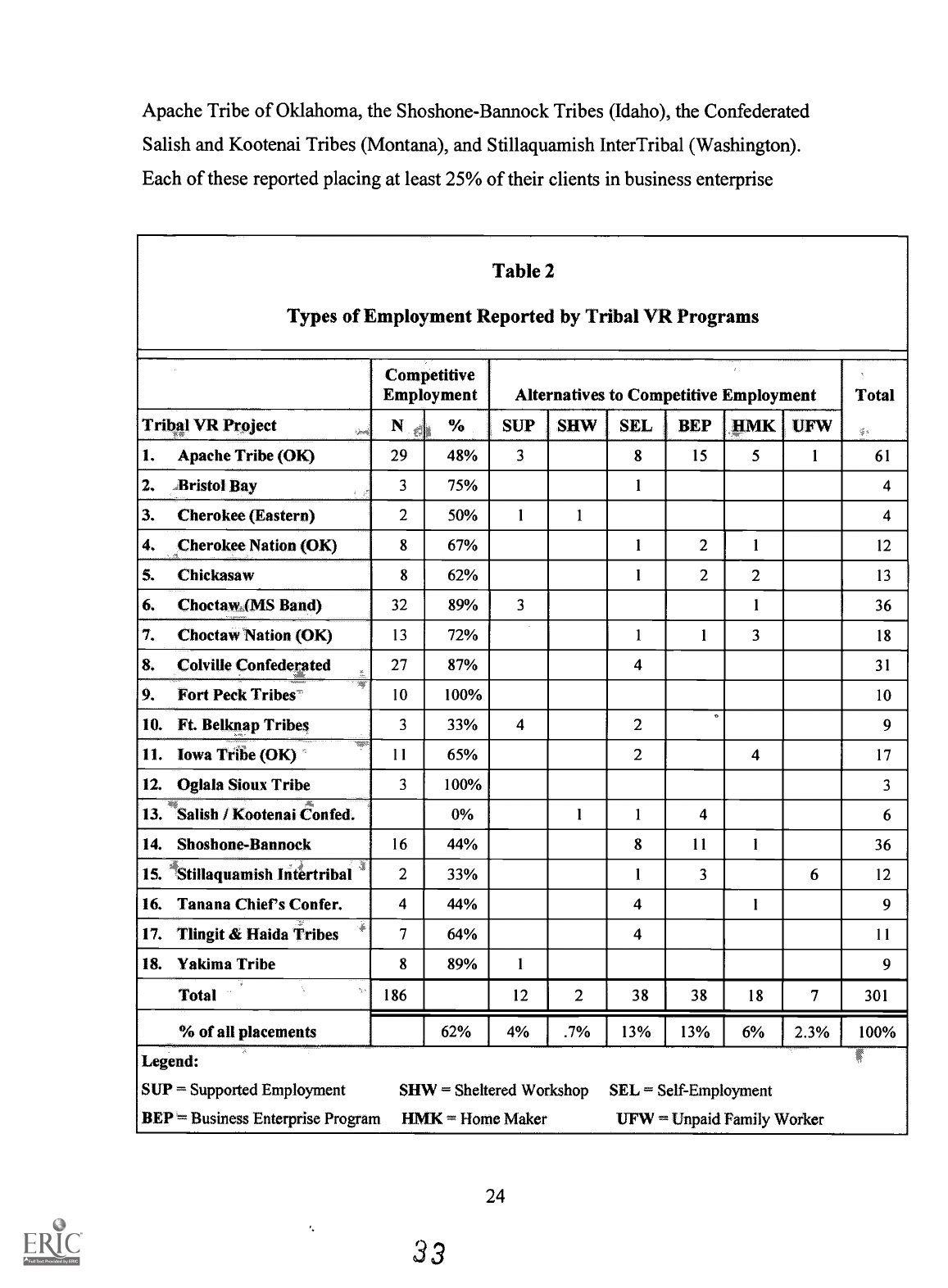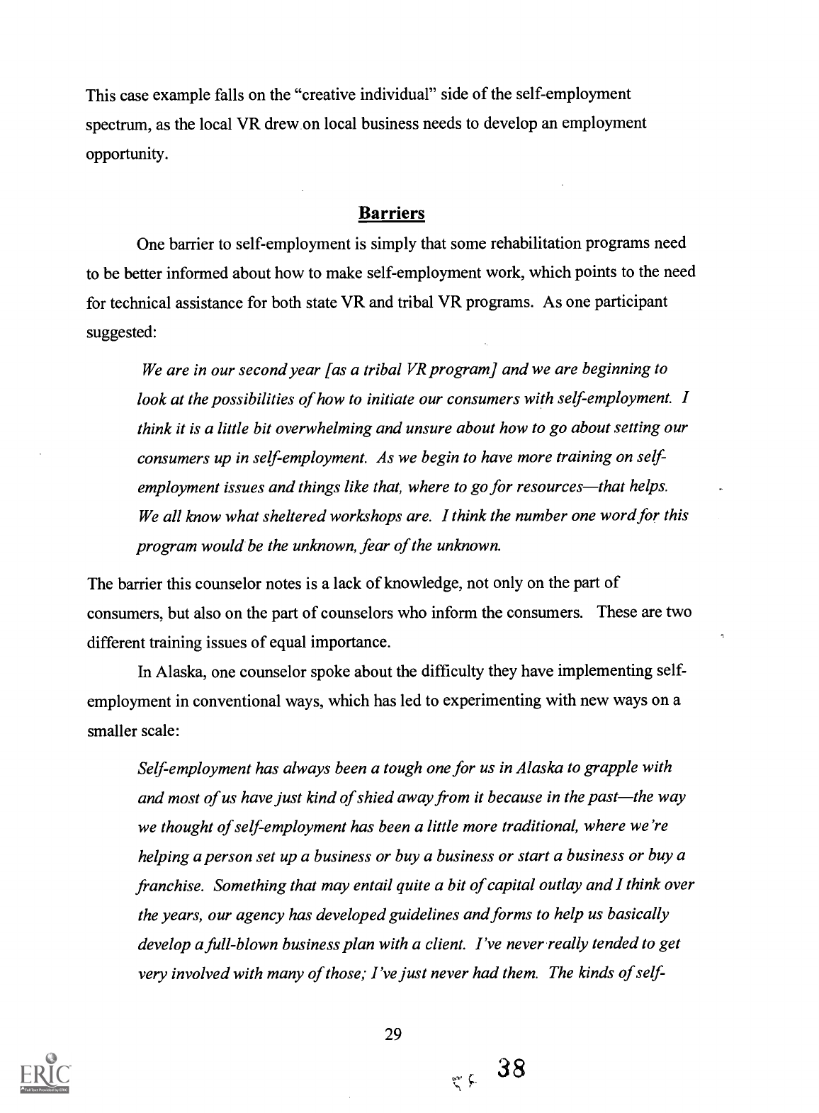 Topic: Self-Employment Placements (June 15, 1998, Tribal VR programs)