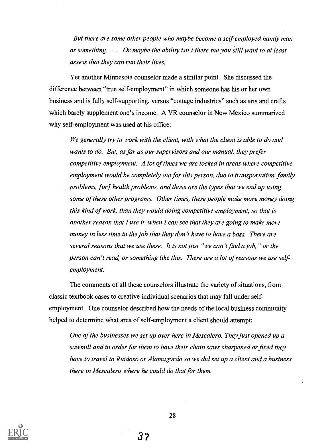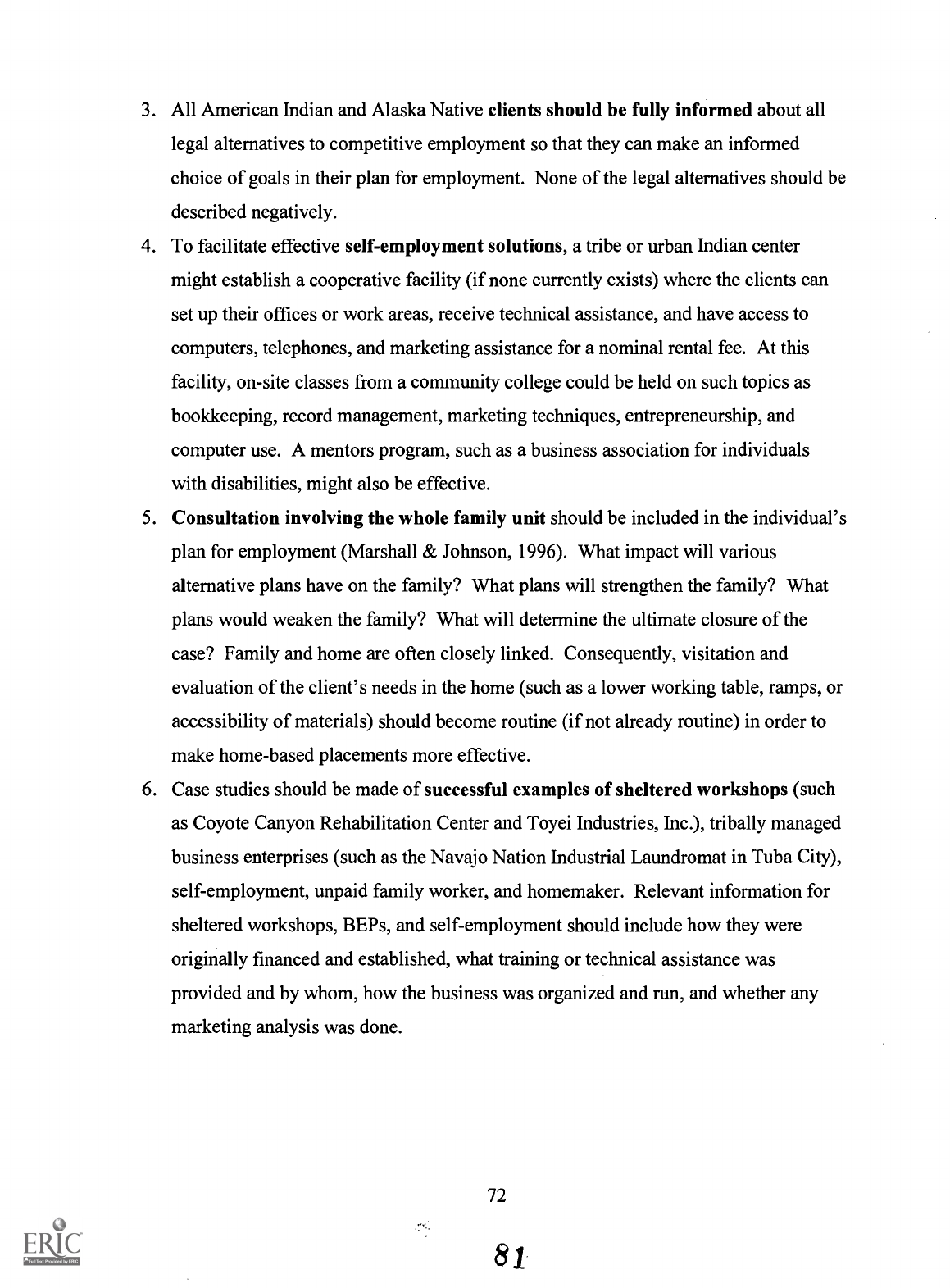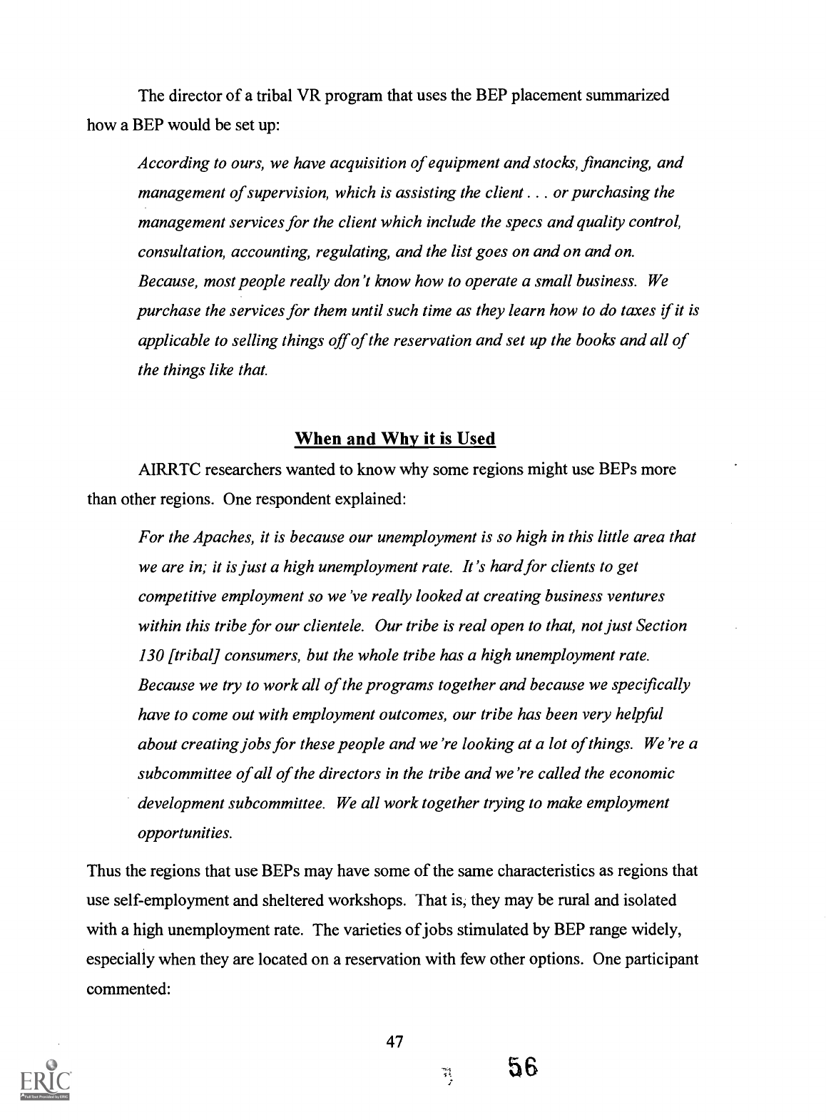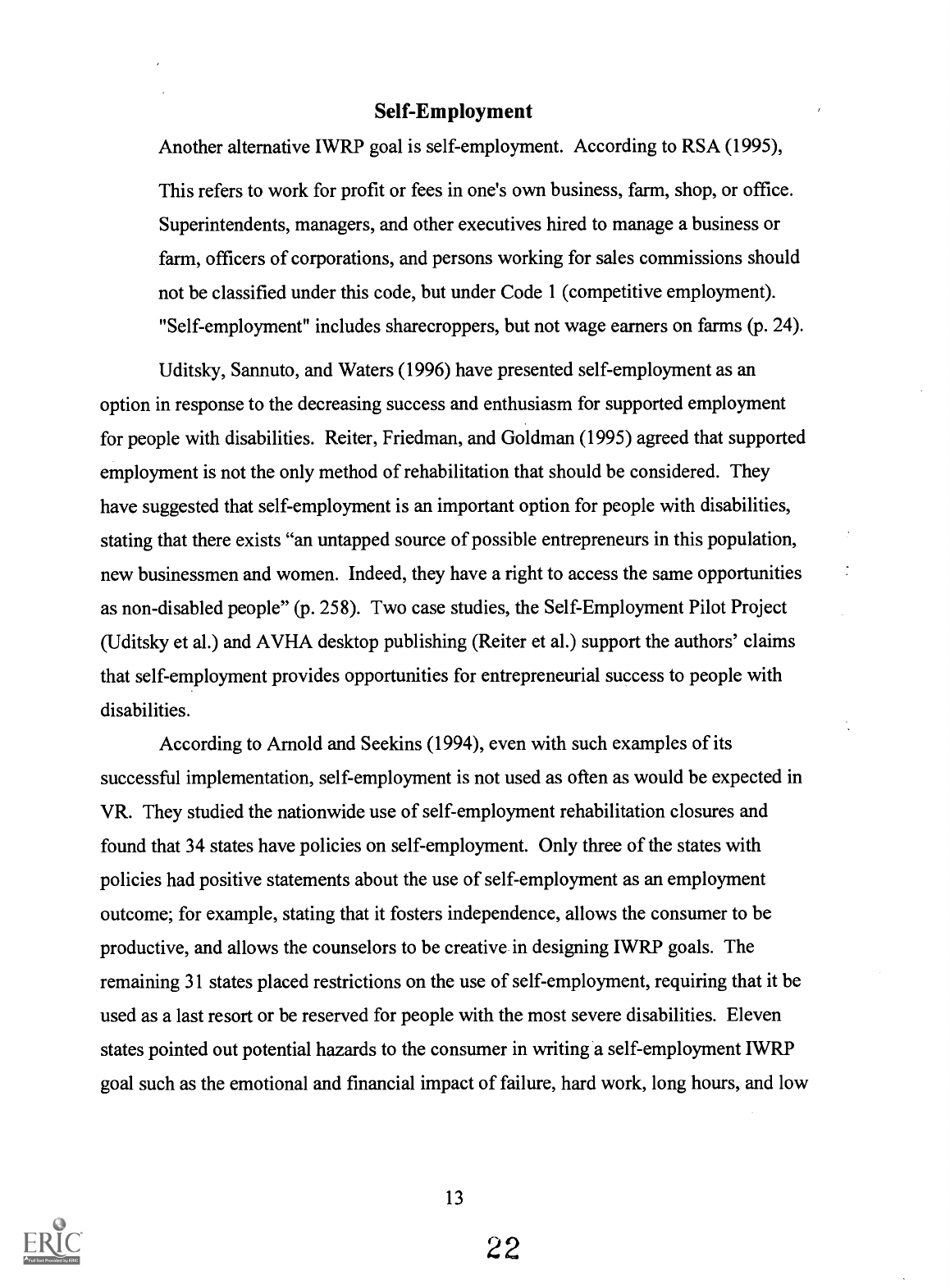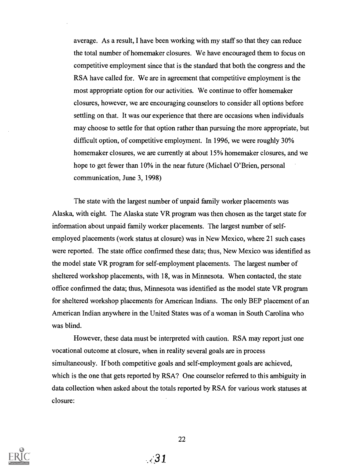 Topic: Self-Employment Placements (June 15, 1998, Tribal VR programs)
