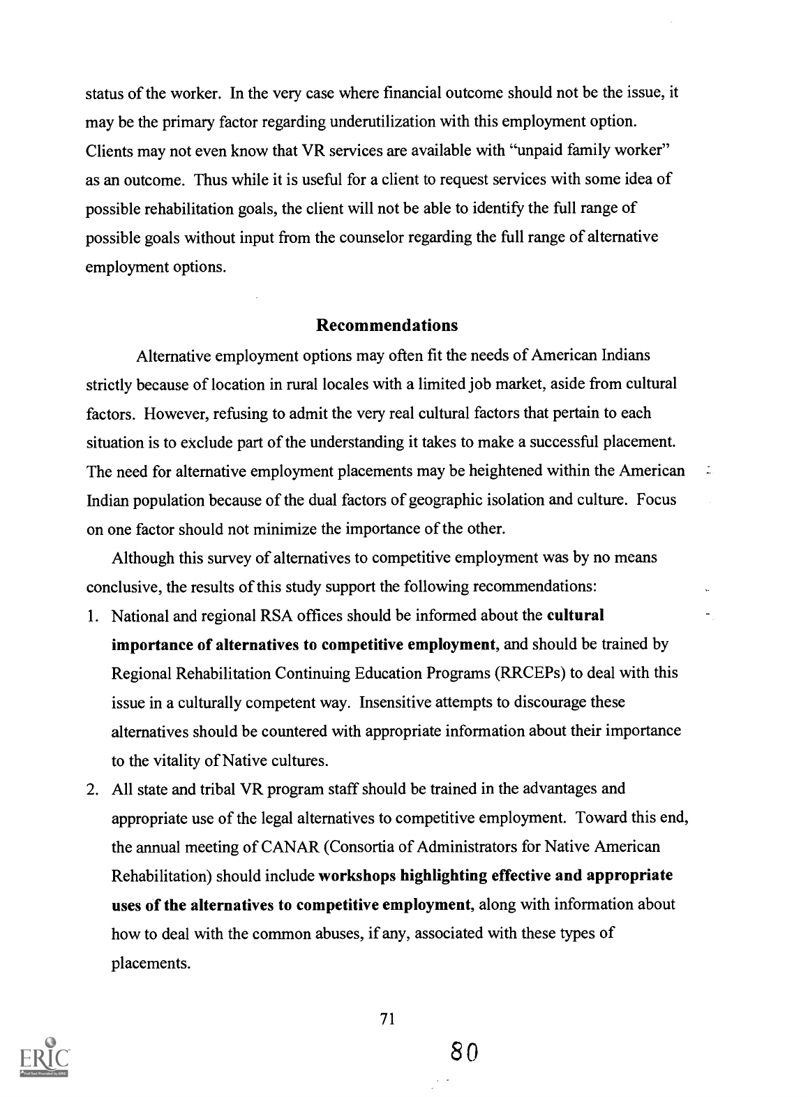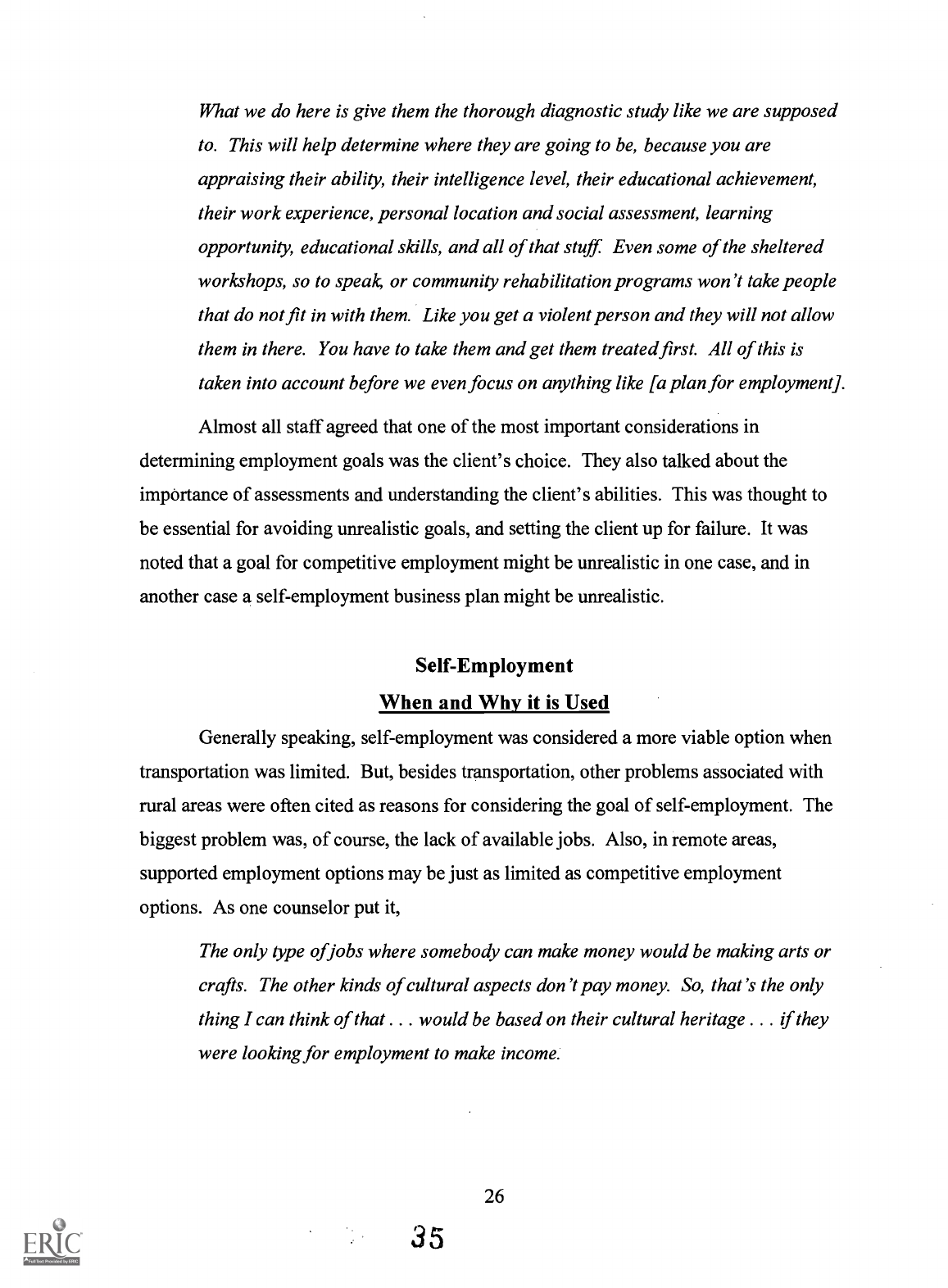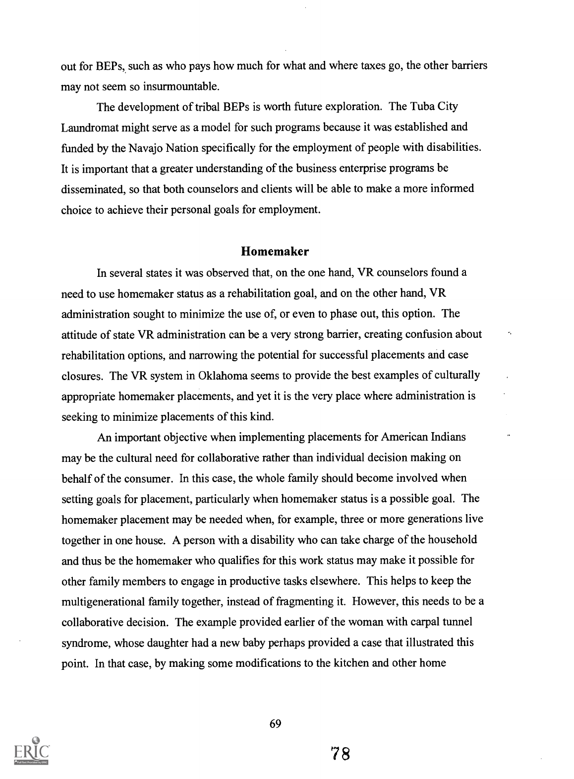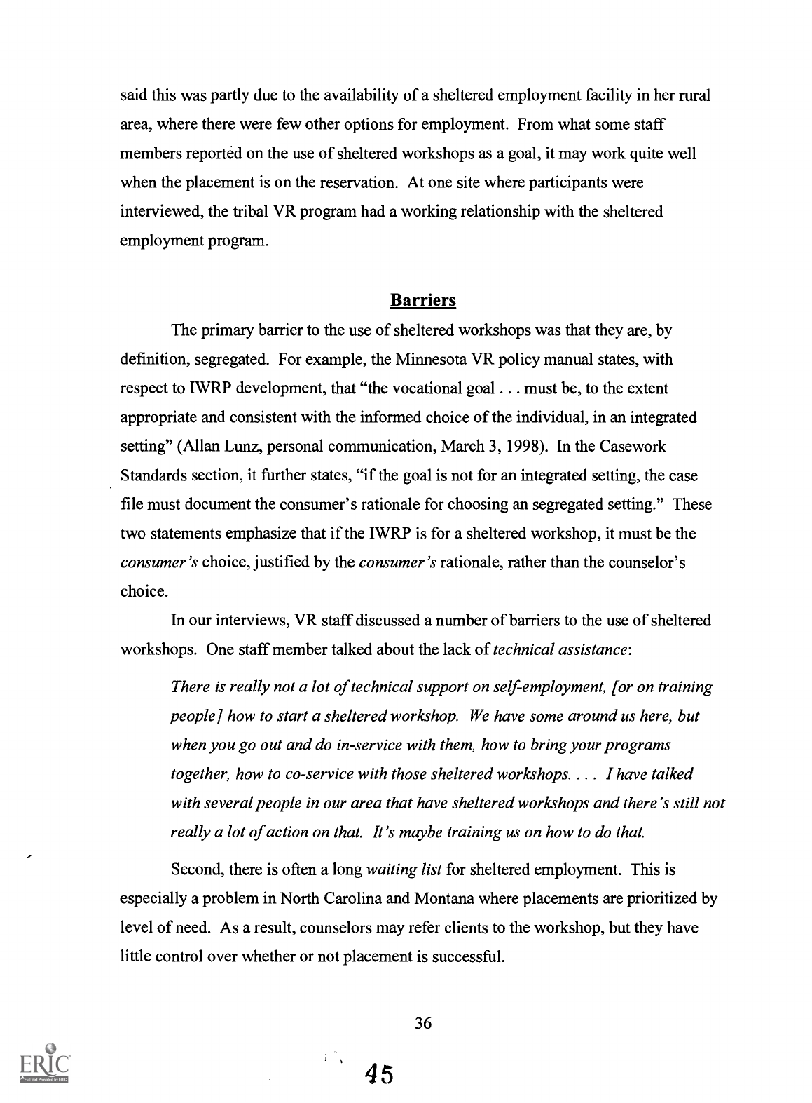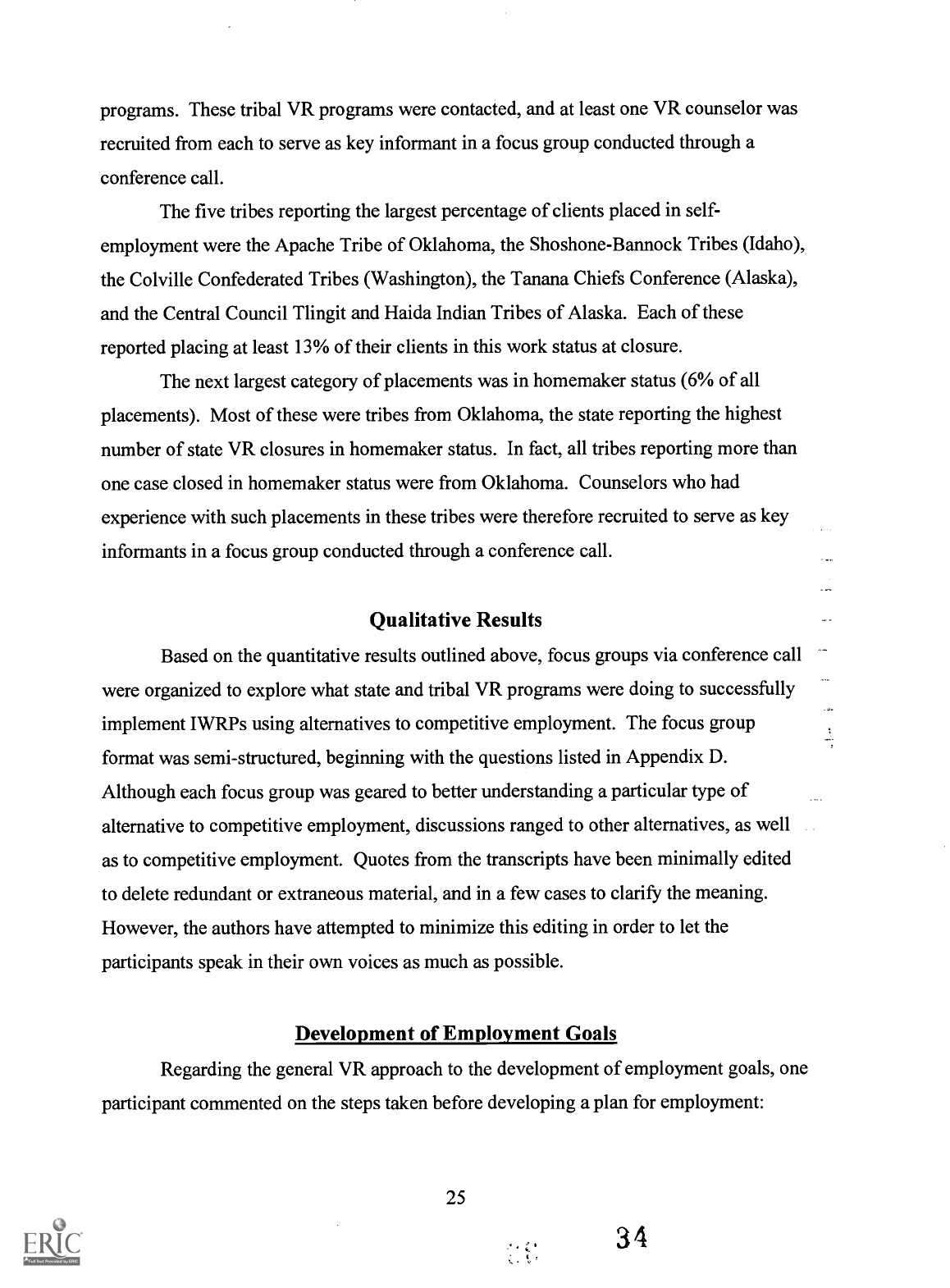 Topic: Self-Employment Placements (June 15, 1998, Tribal VR programs)