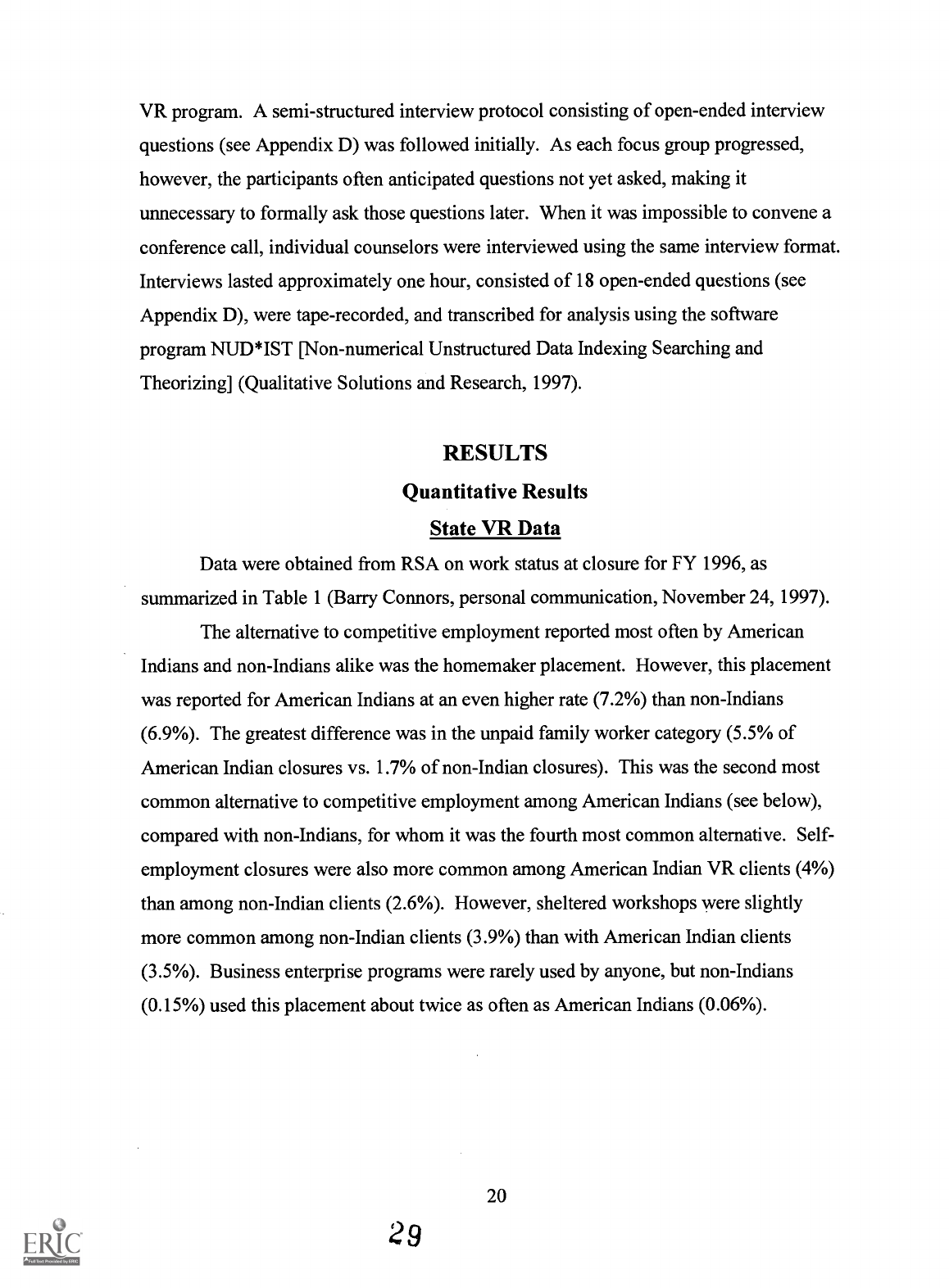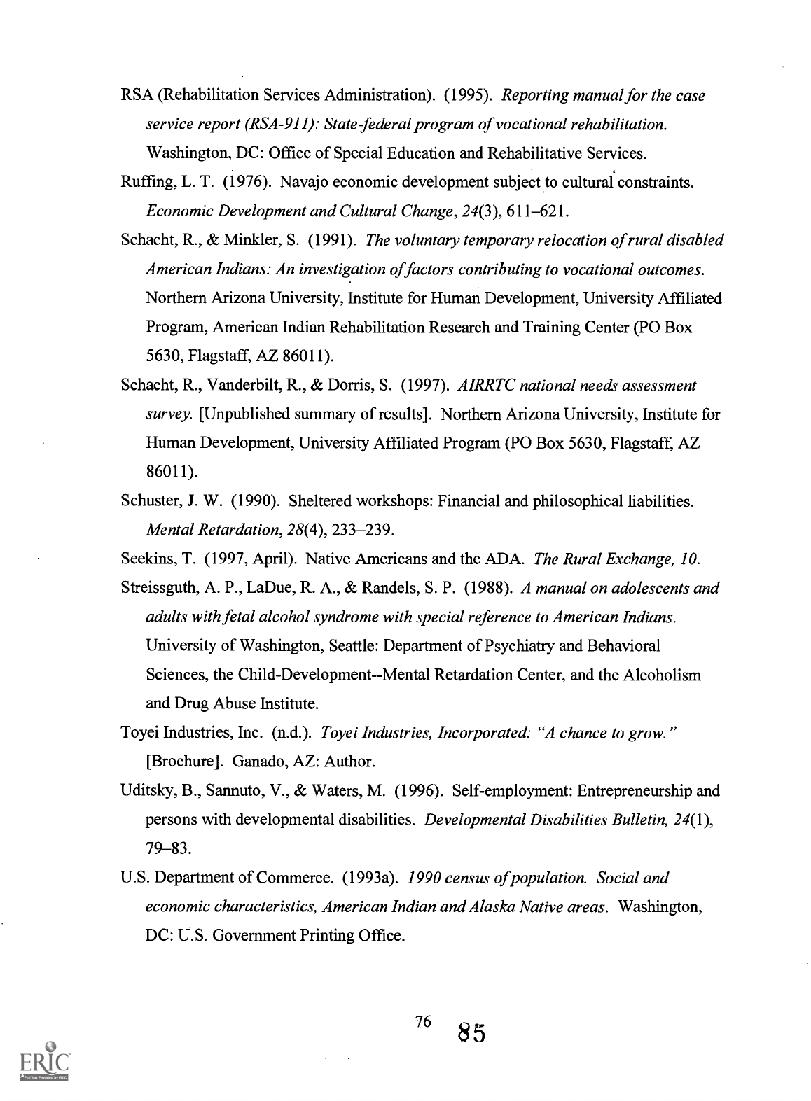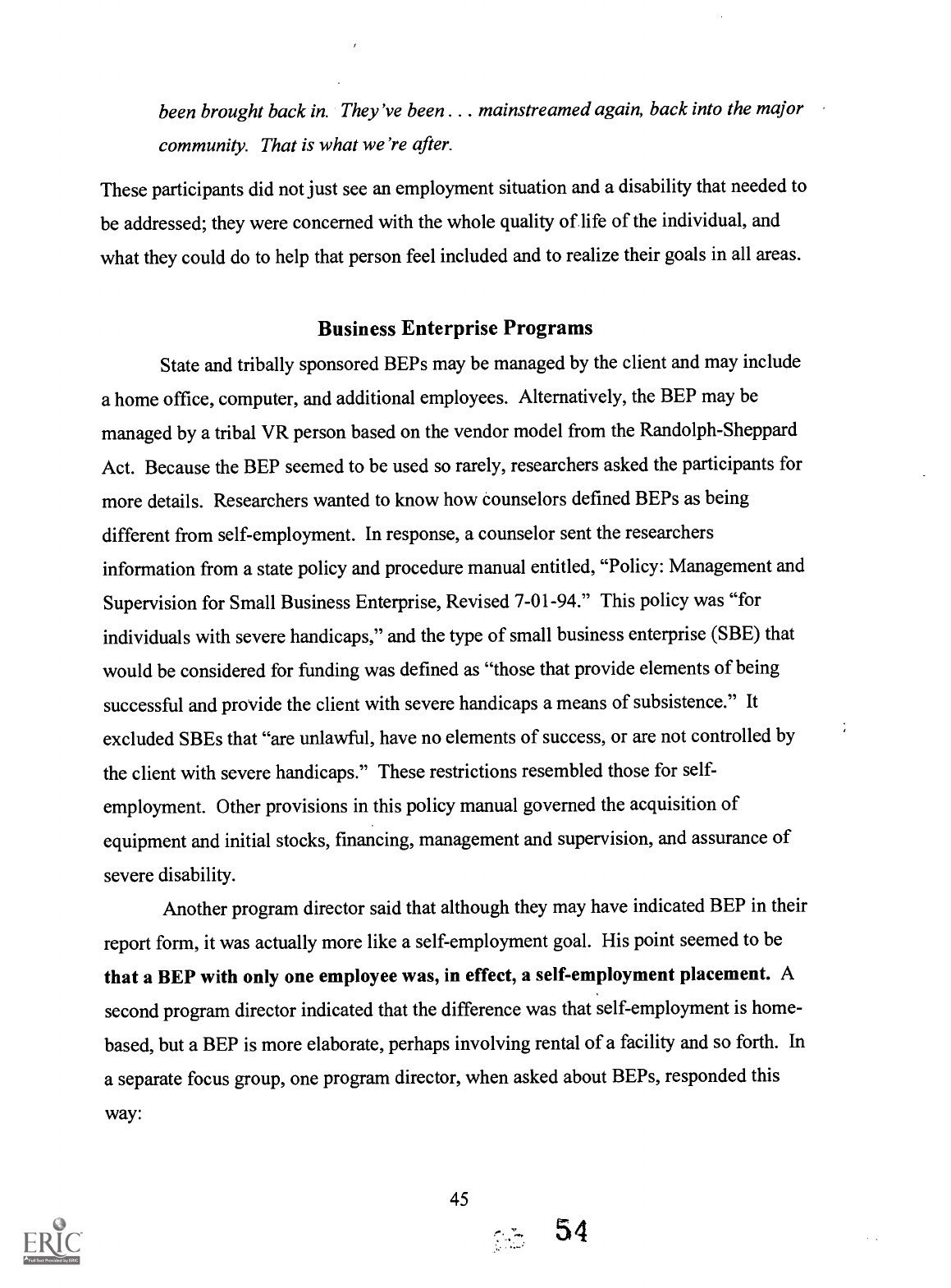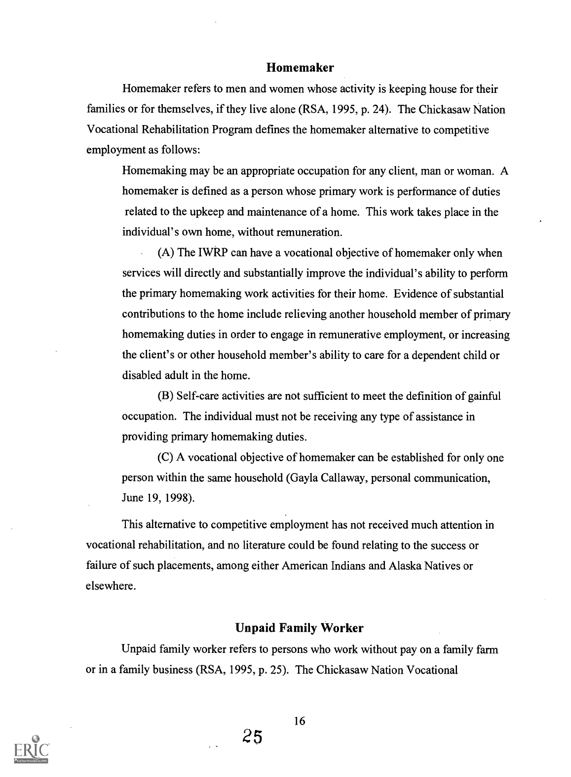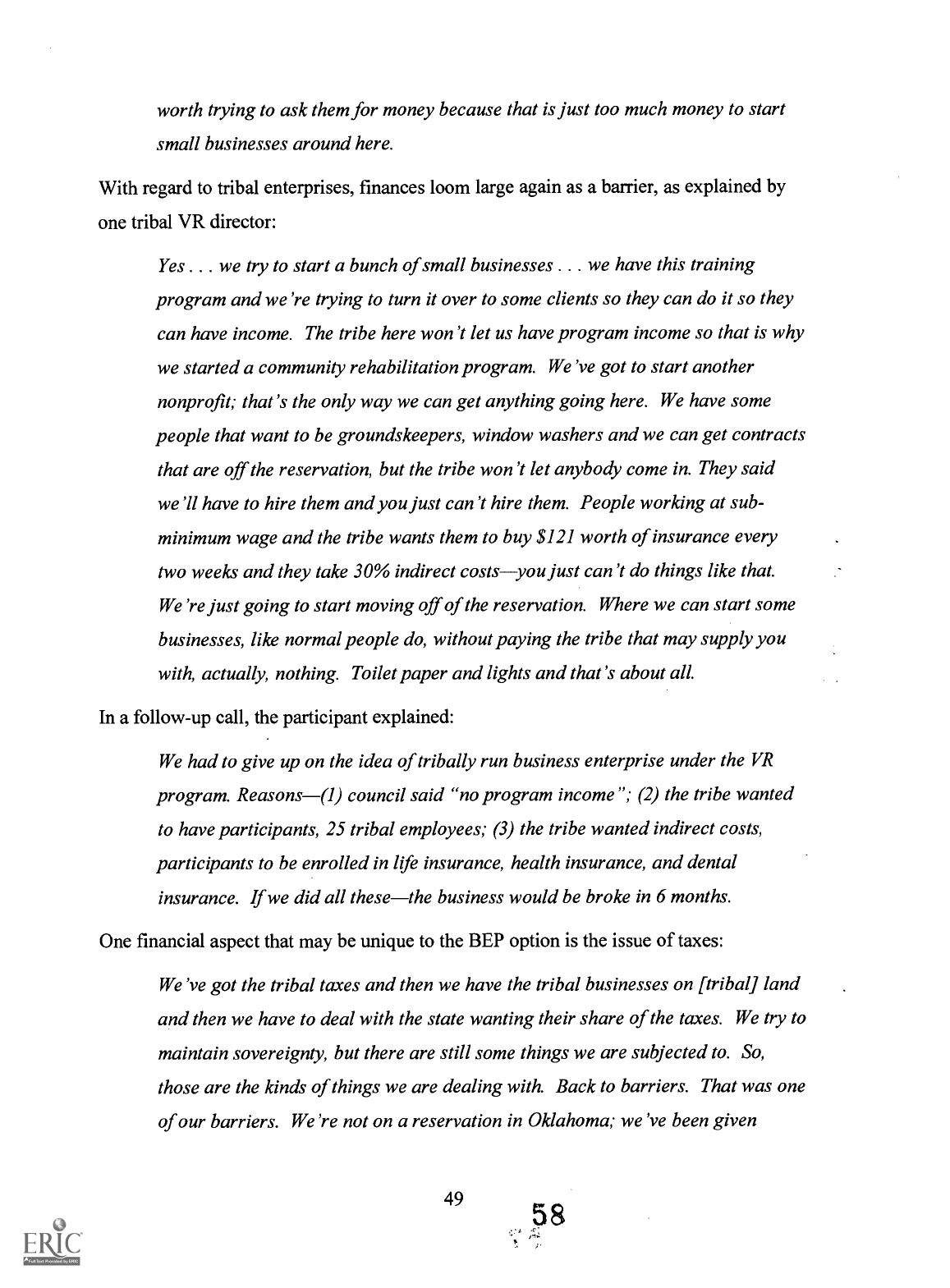 Topic: Self-Employment Placements (June 15, 1998, Tribal VR programs)