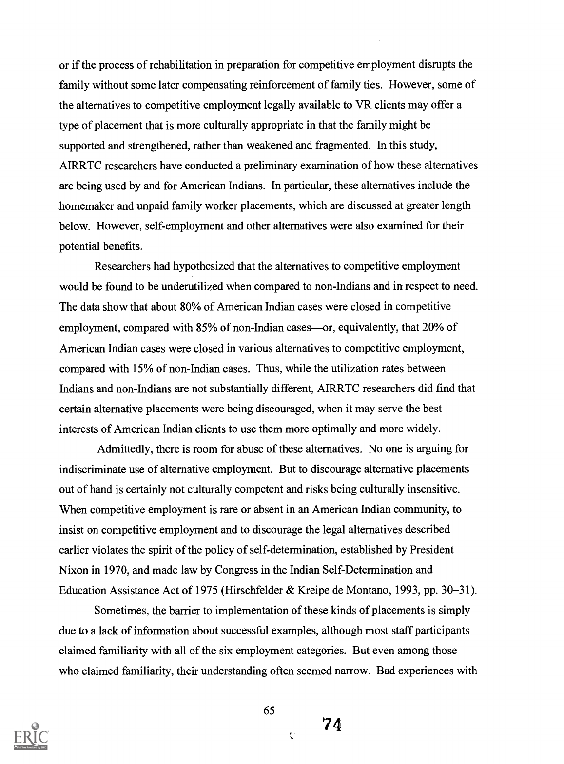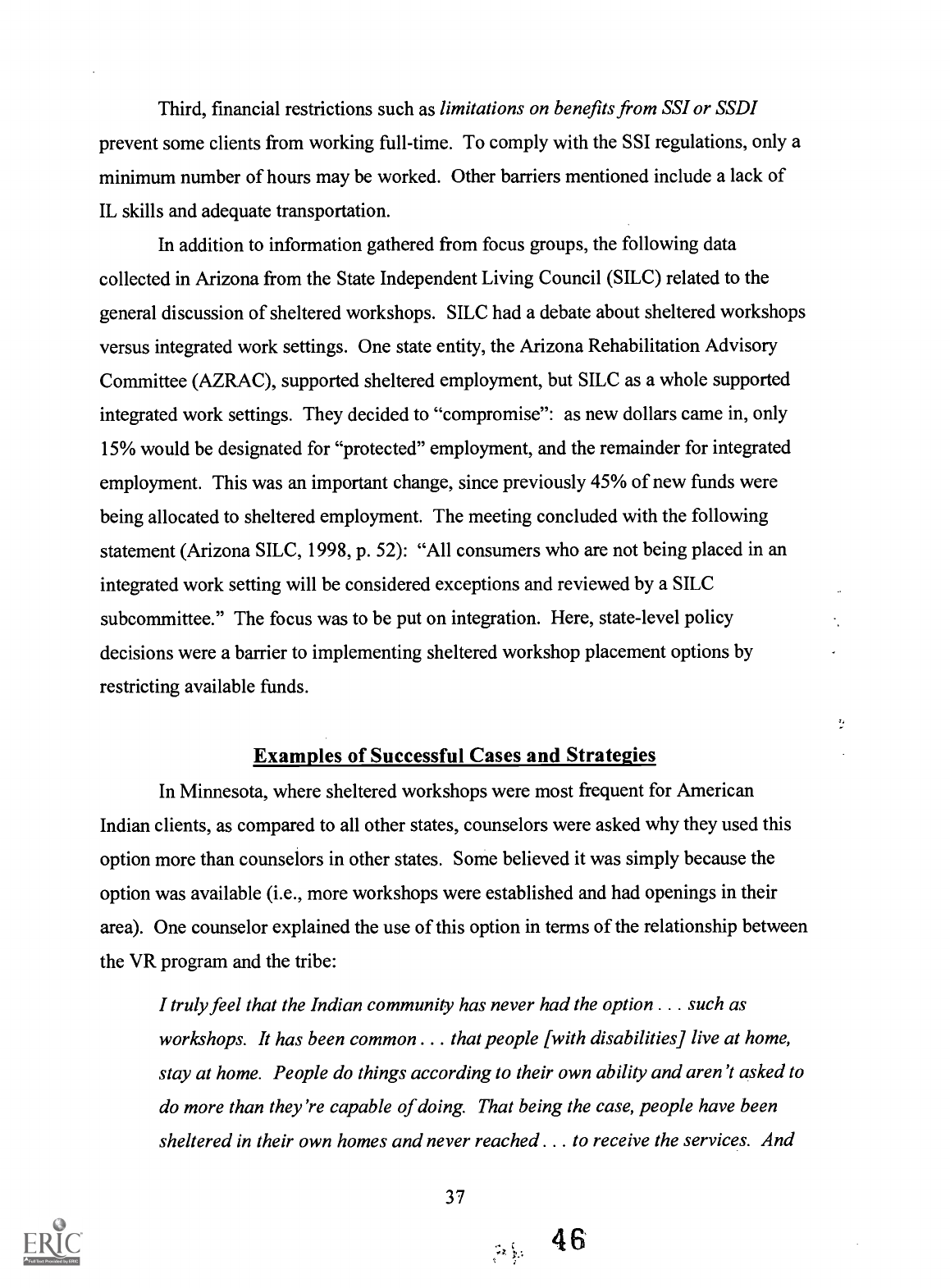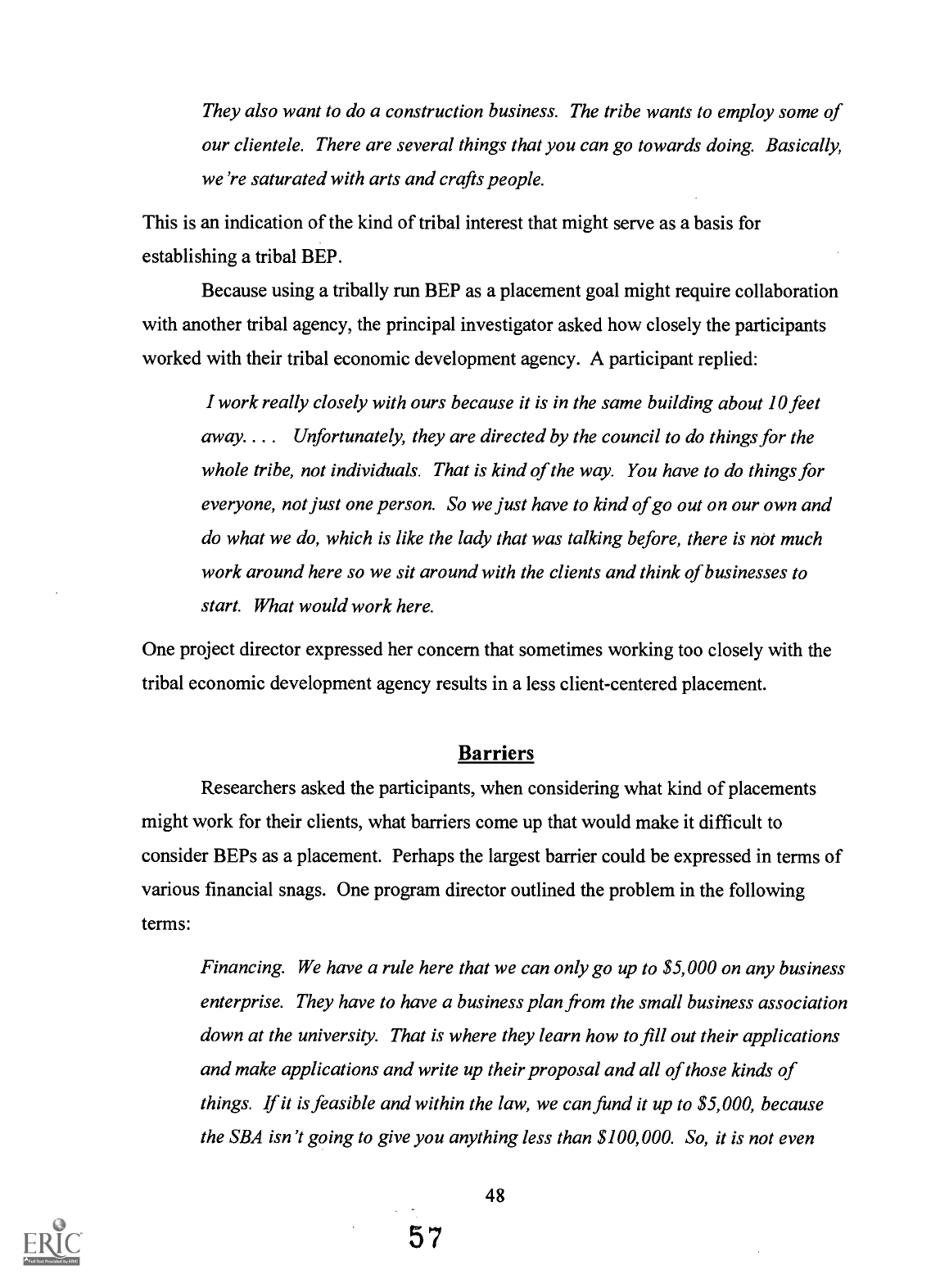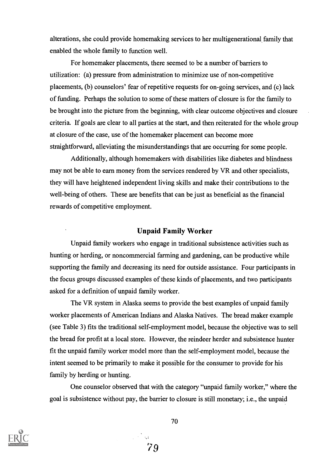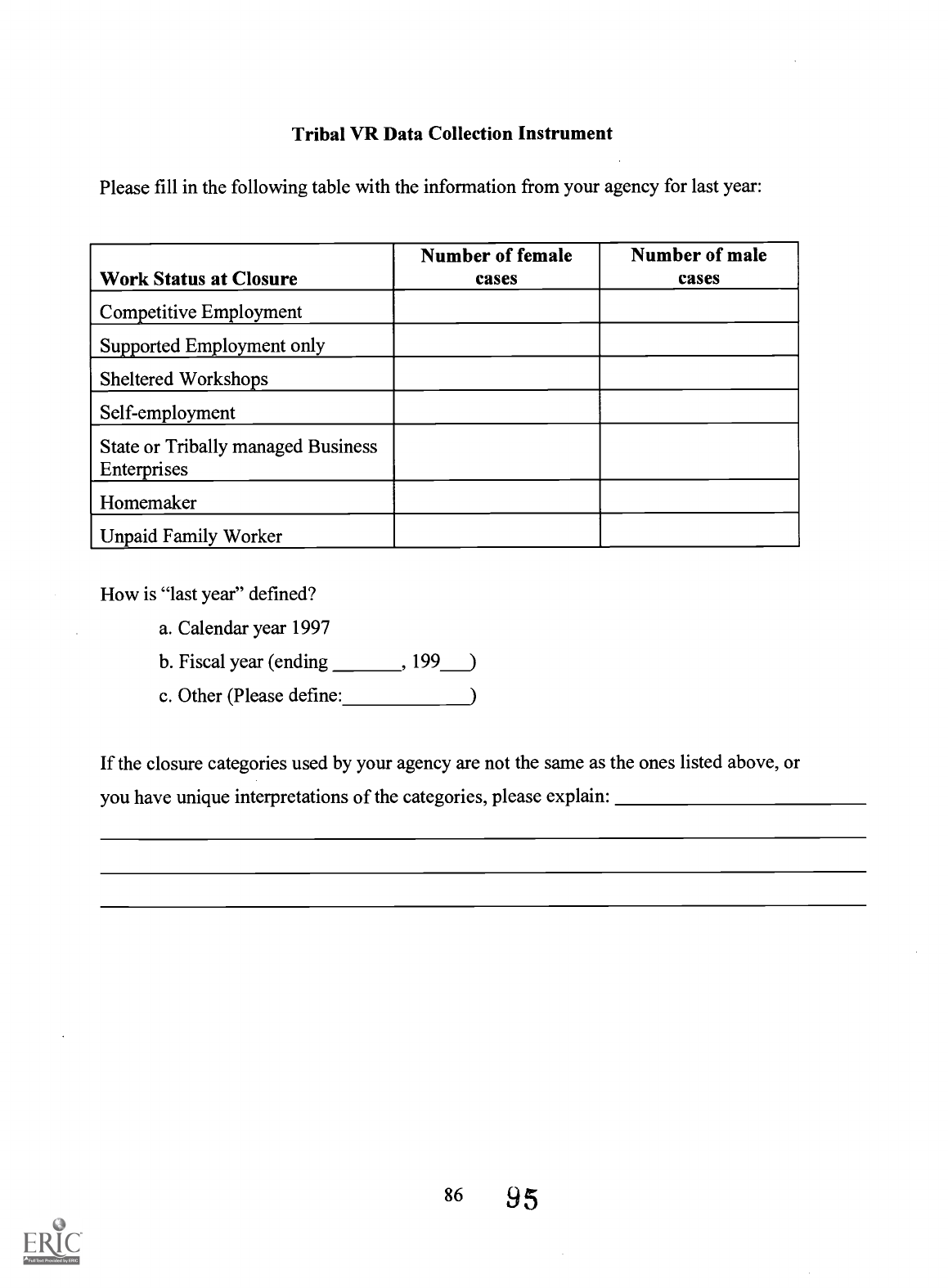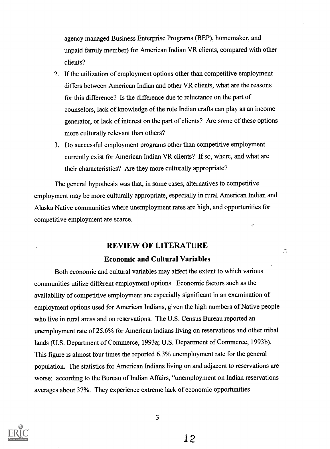 Topic: Self-Employment Placements (June 15, 1998, Tribal VR programs)