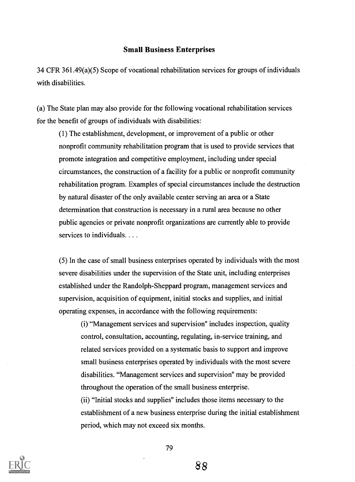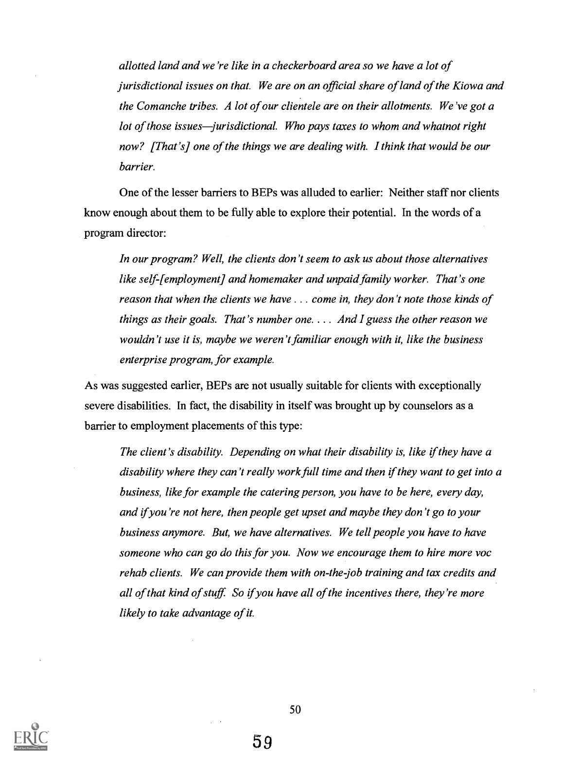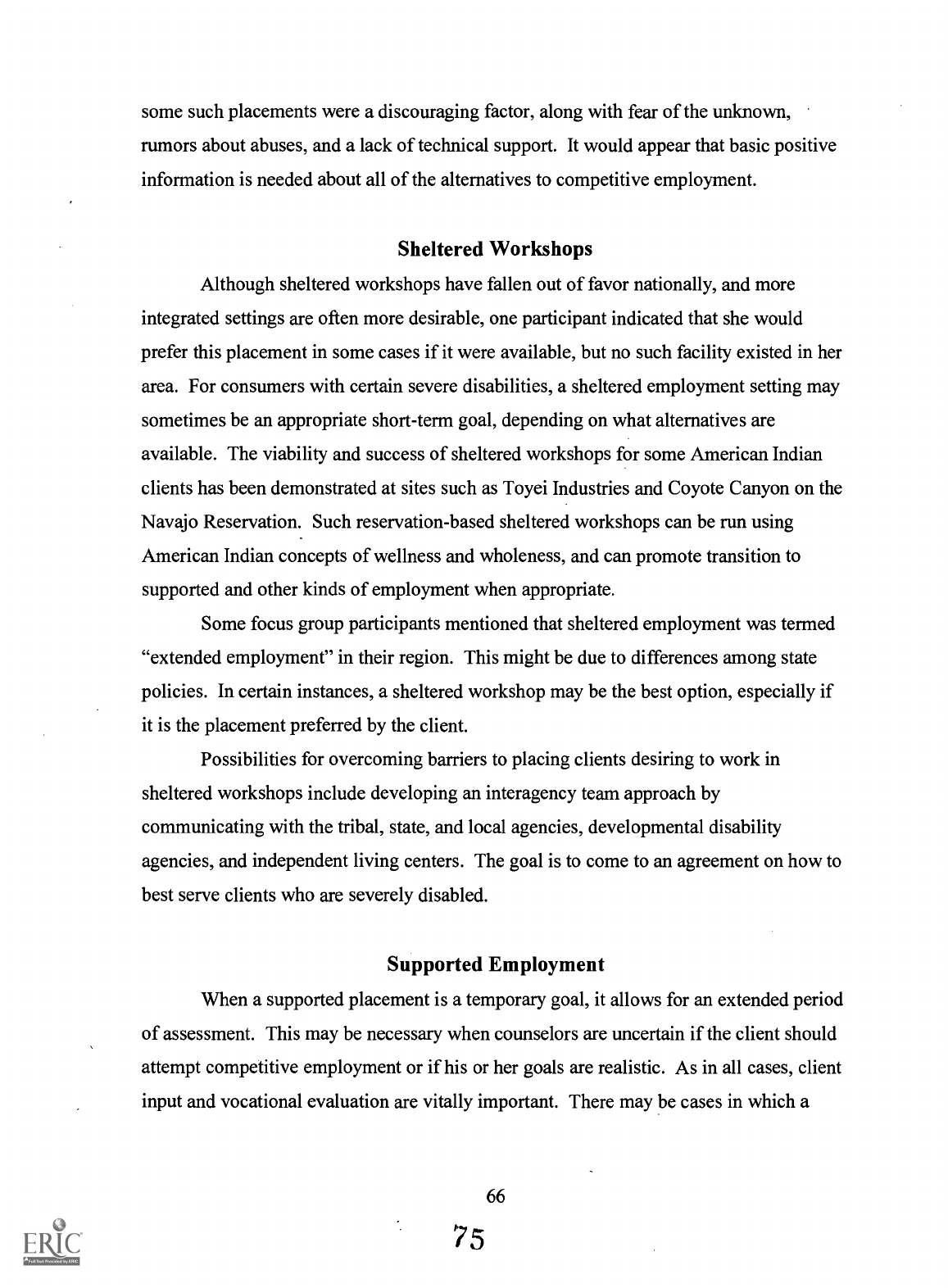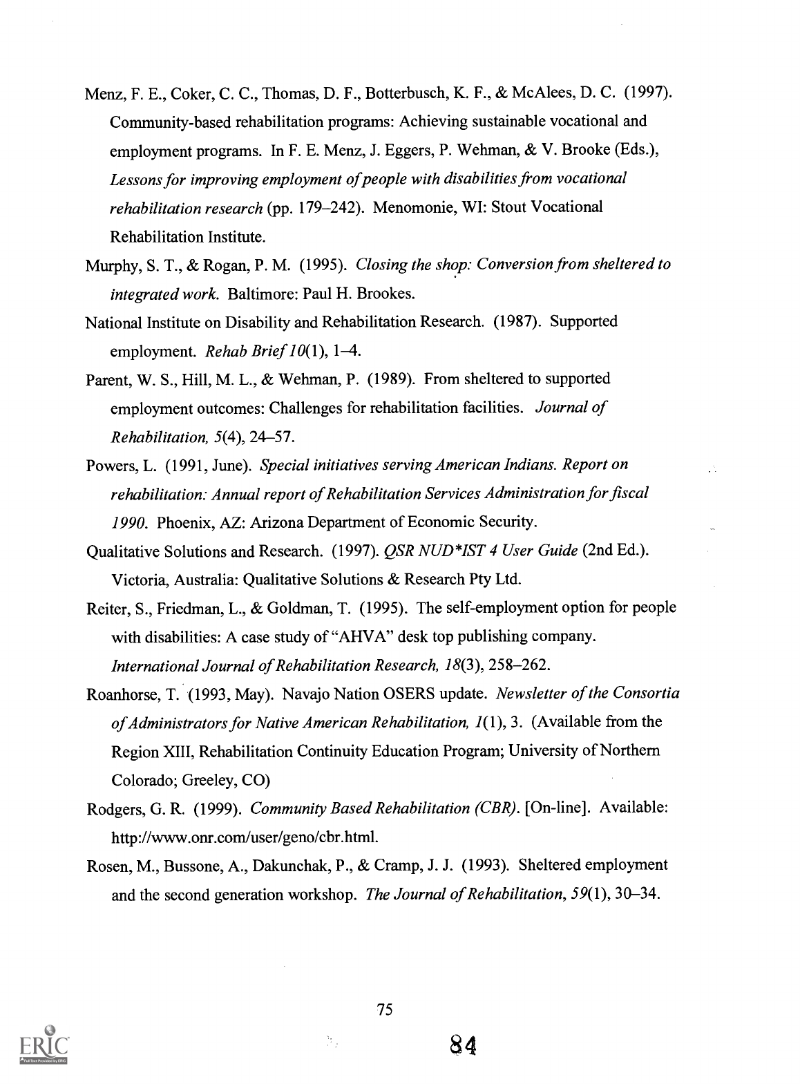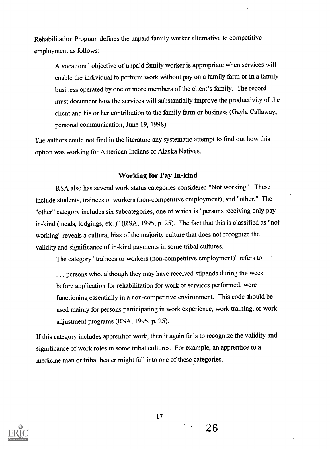 Topic: Self-Employment Placements (June 15, 1998, Tribal VR programs)