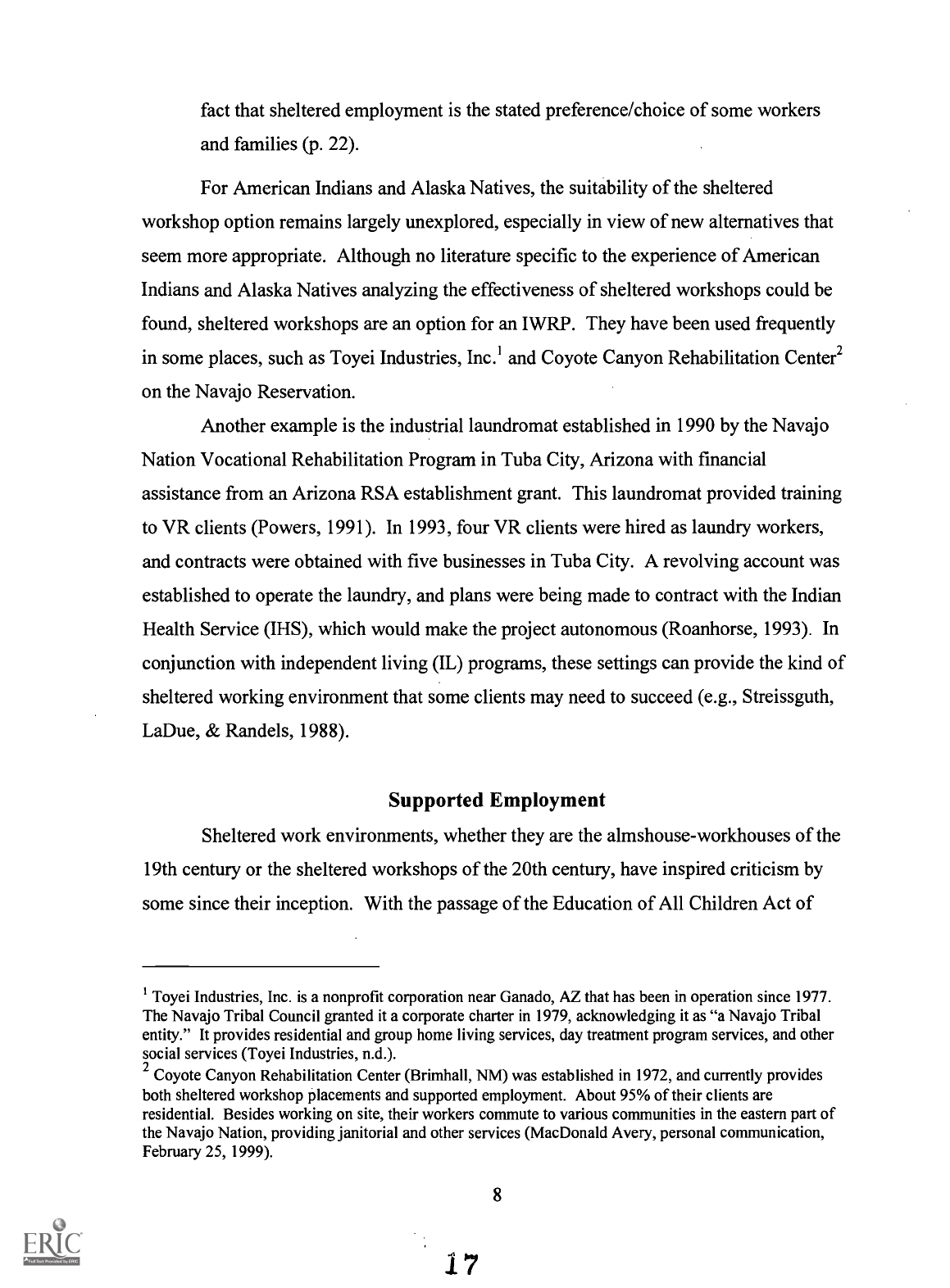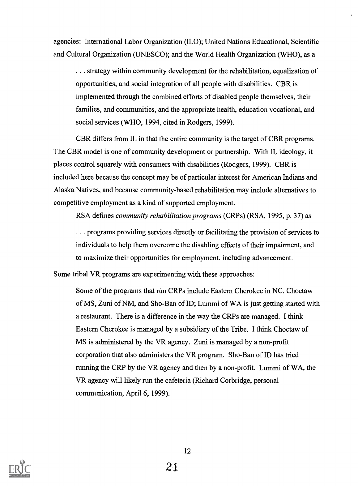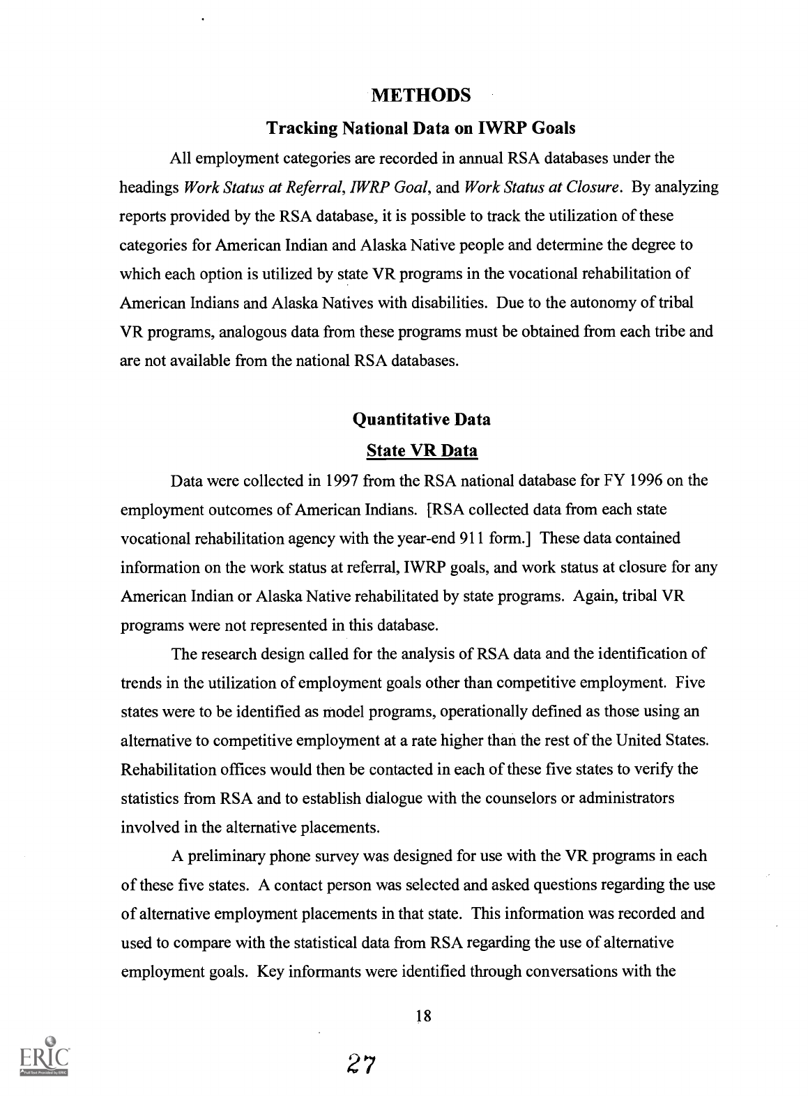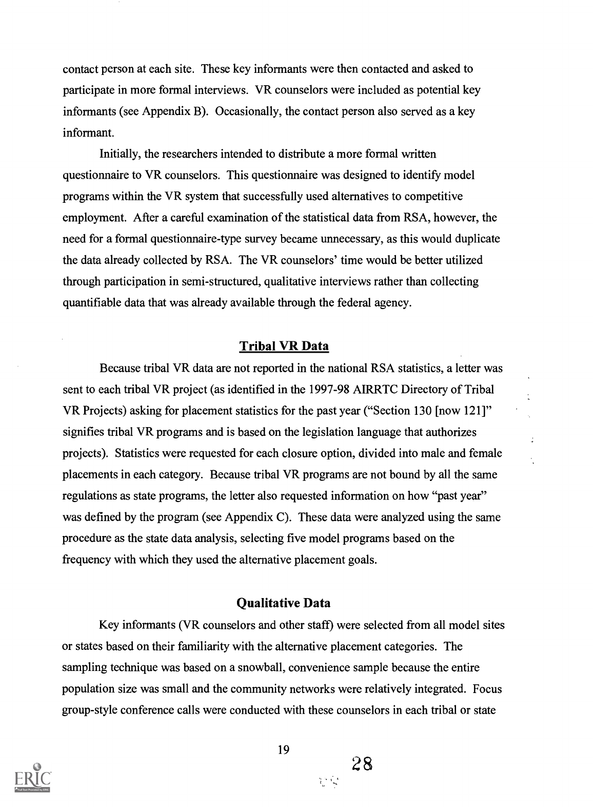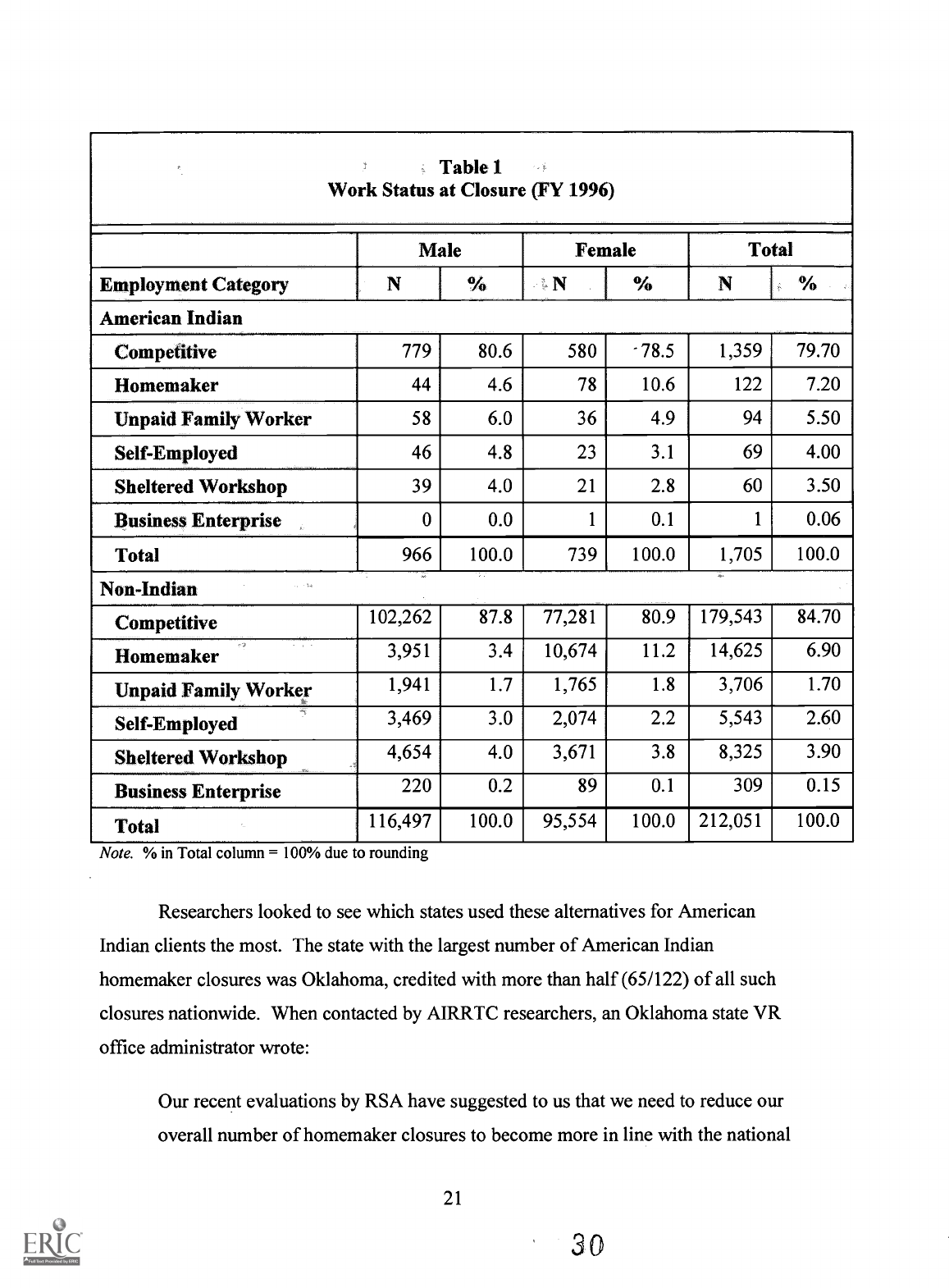 Topic: Self-Employment Placements (June 15, 1998, Tribal VR programs)