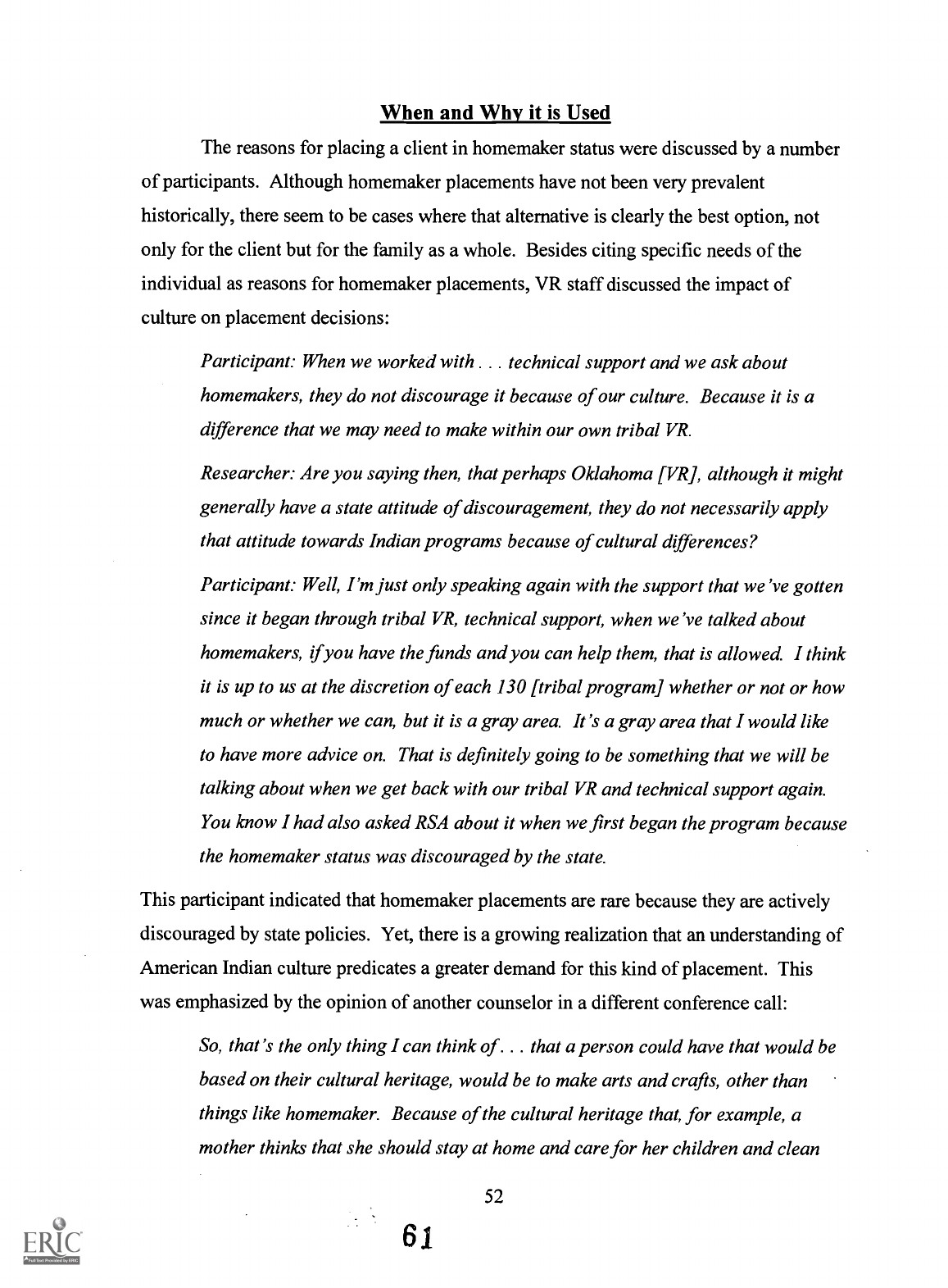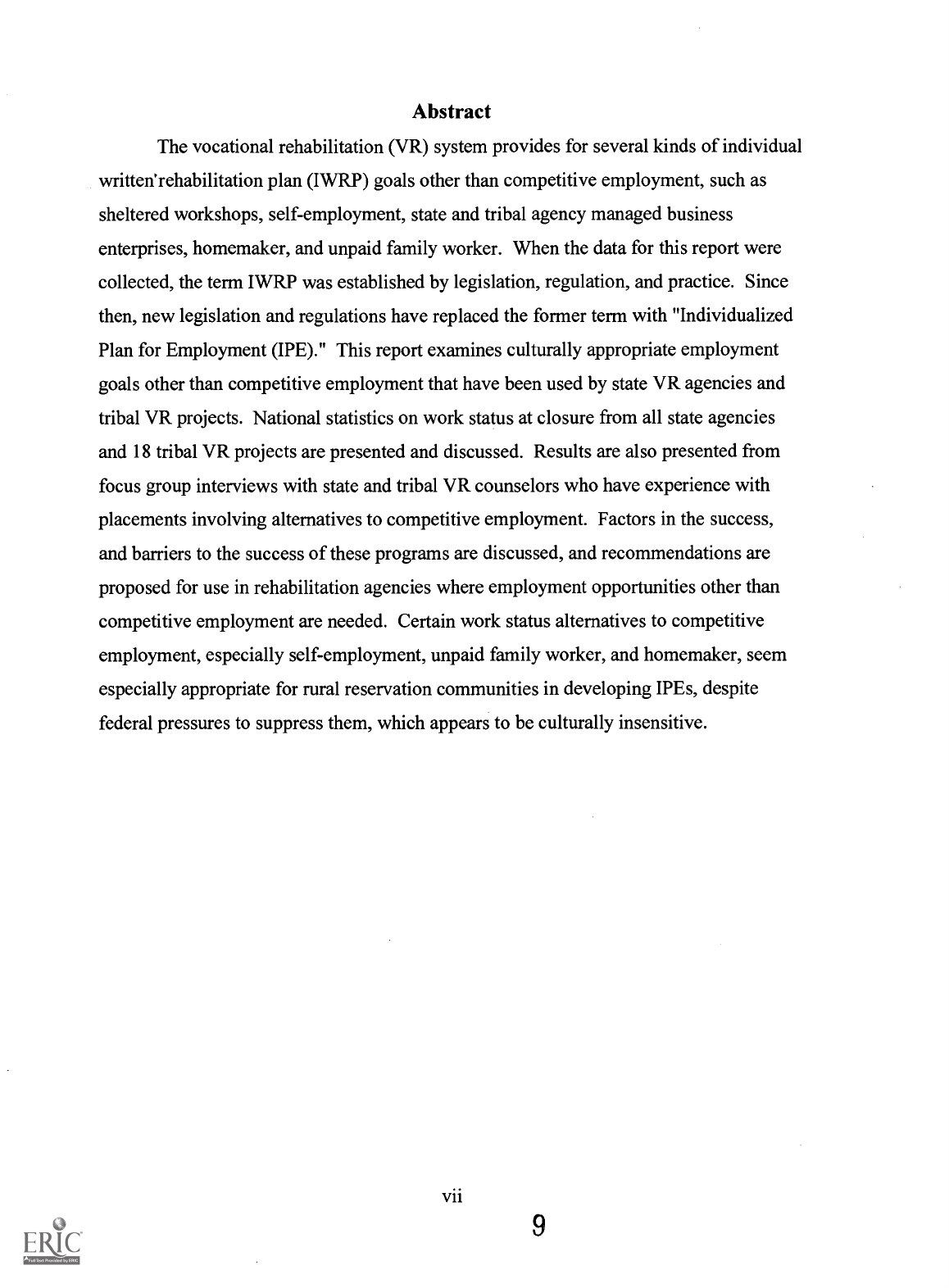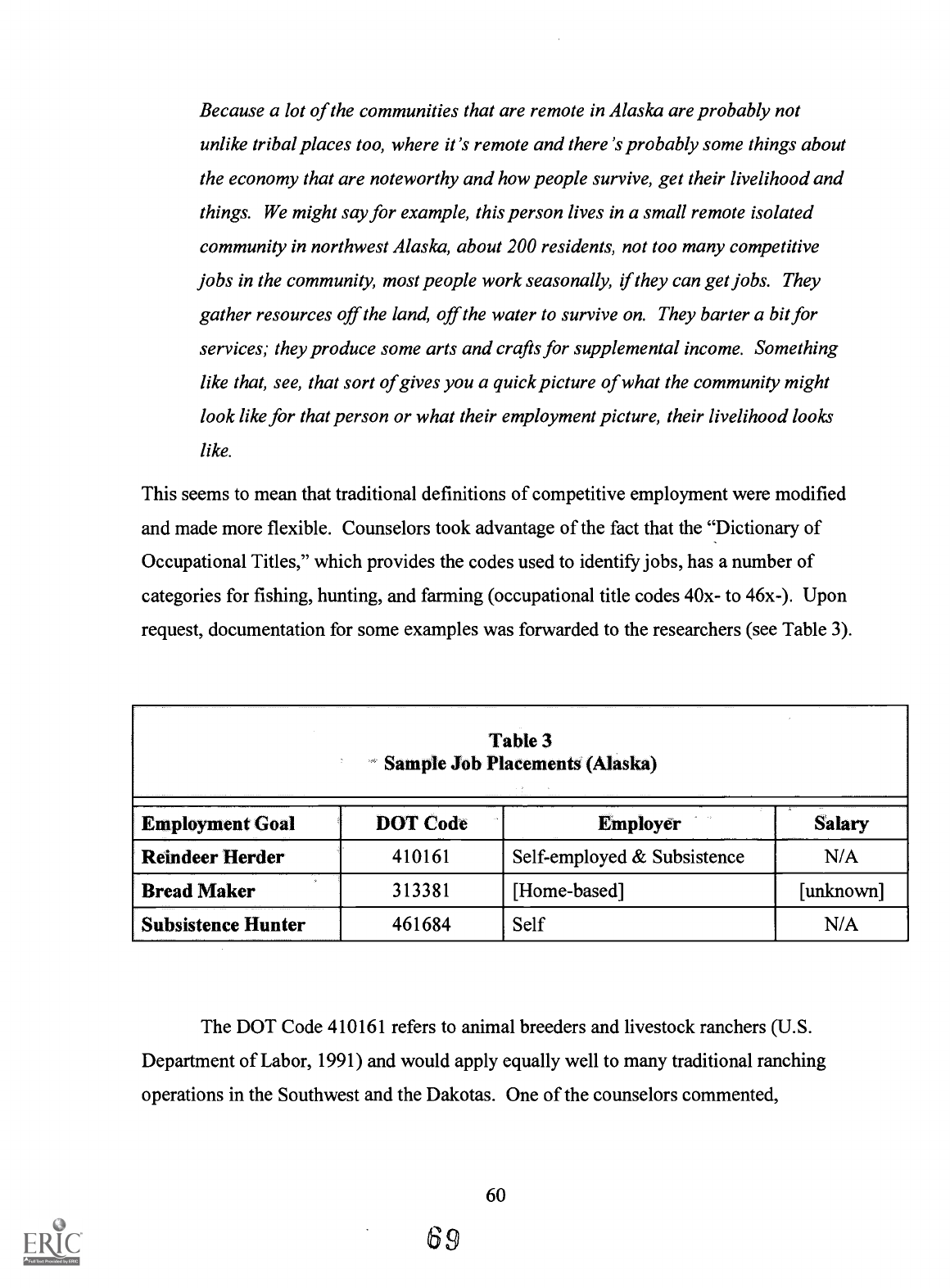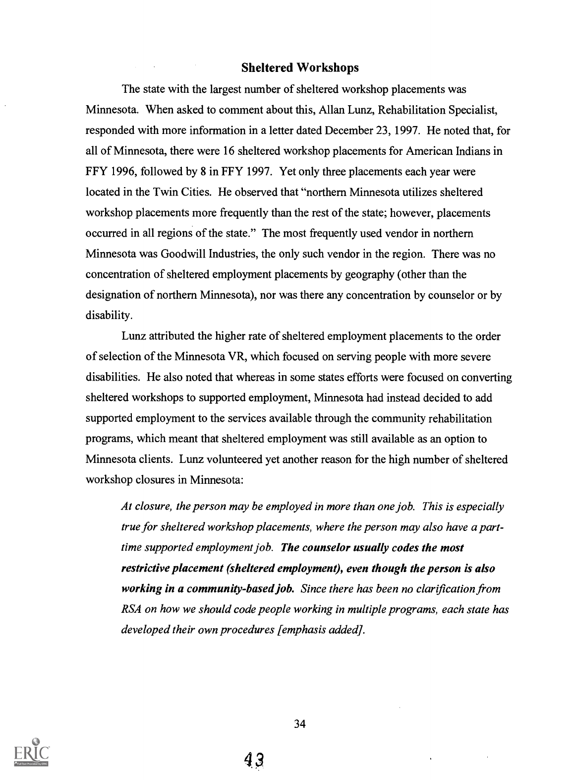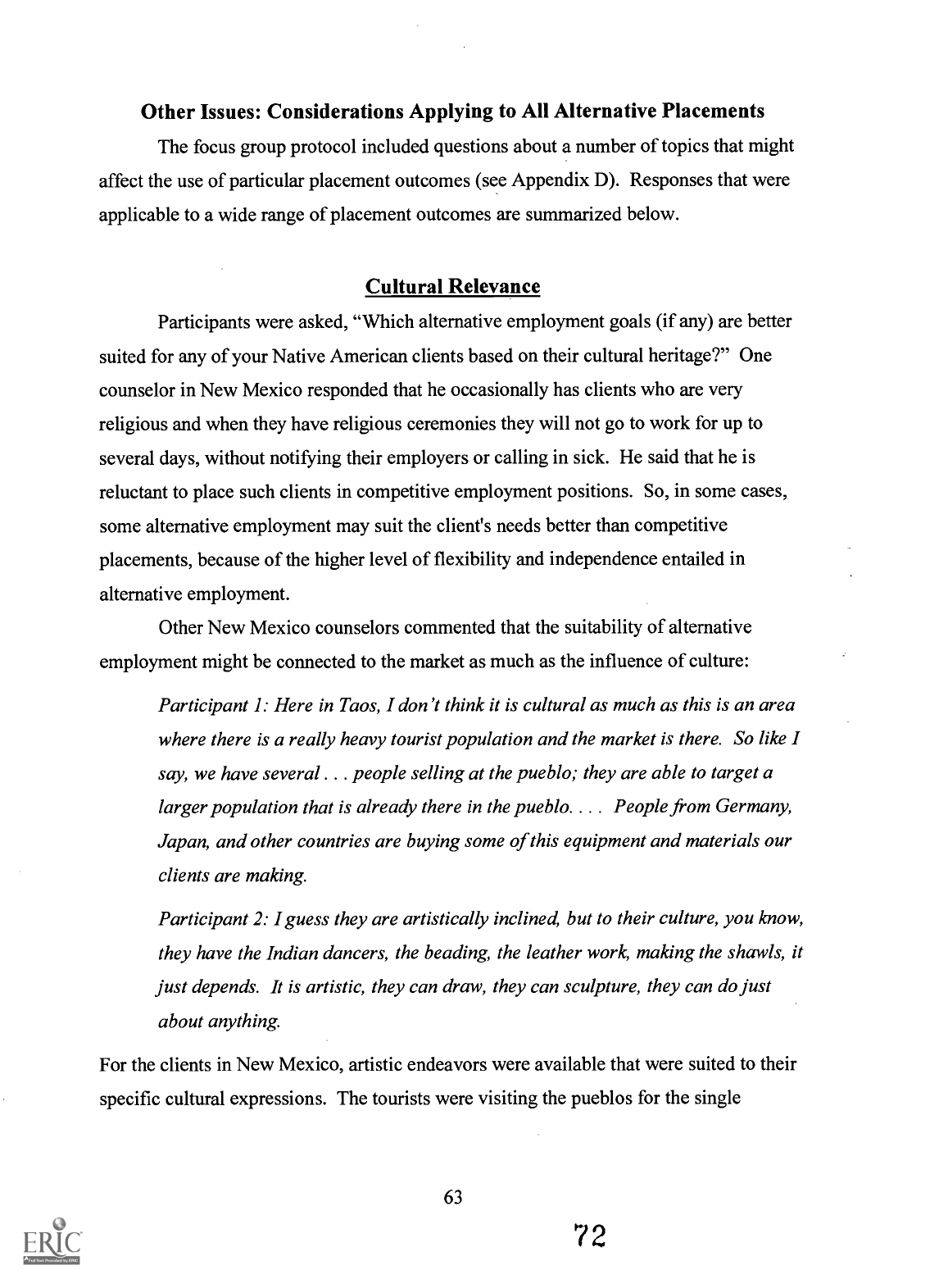 Topic: Self-Employment Placements (June 15, 1998, Tribal VR programs)
