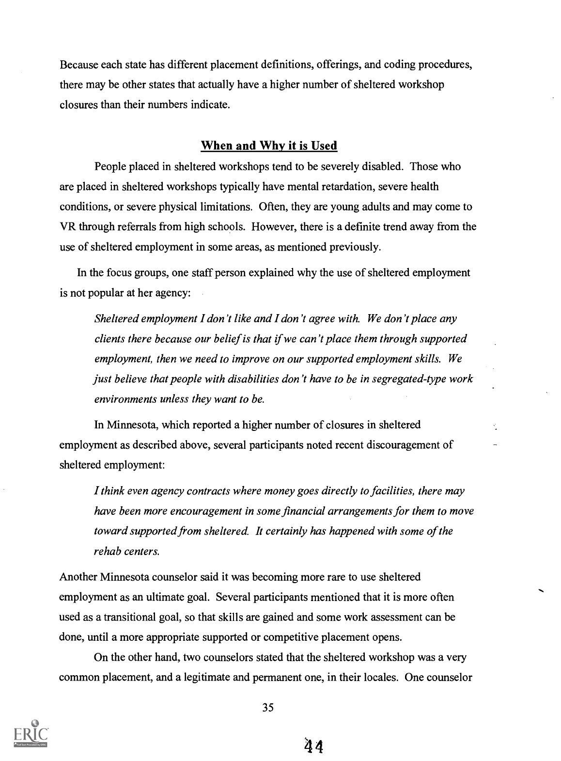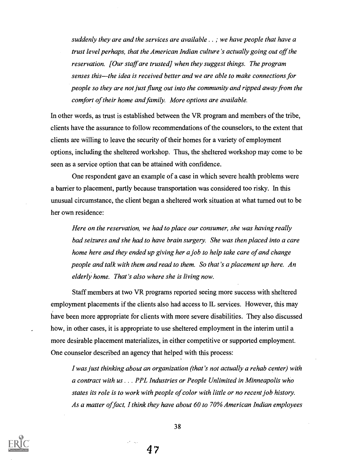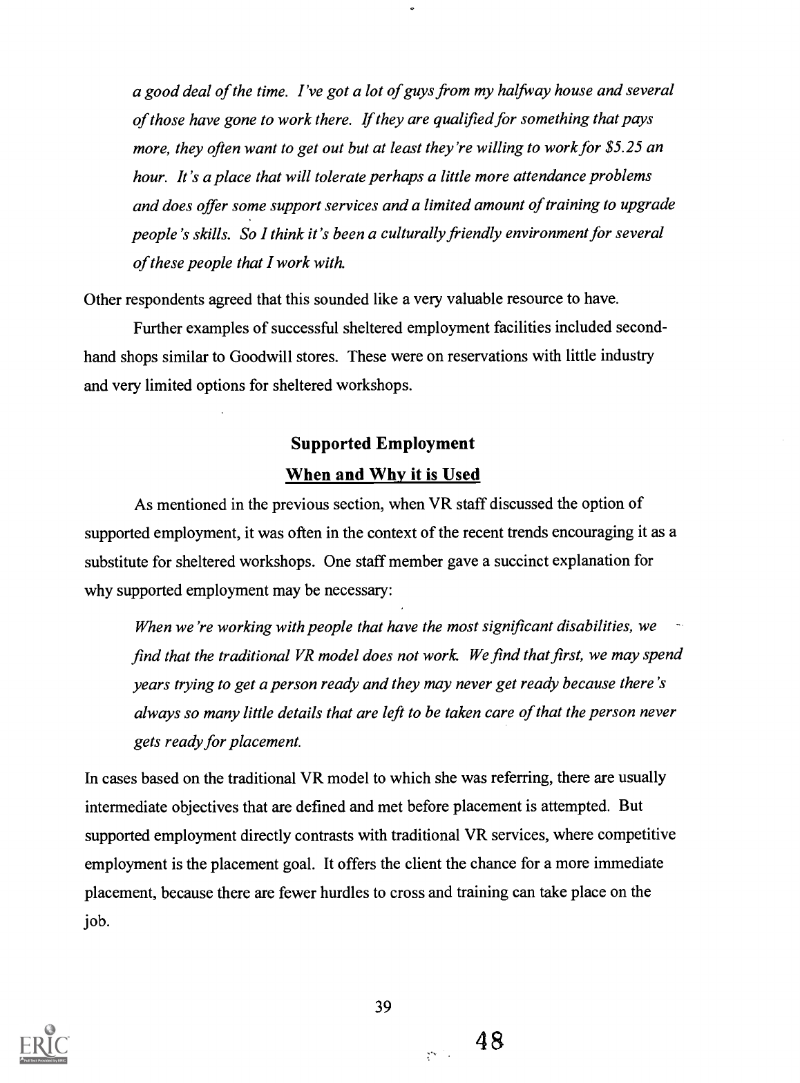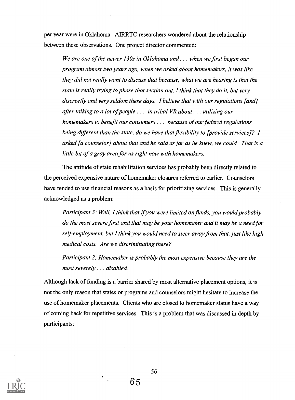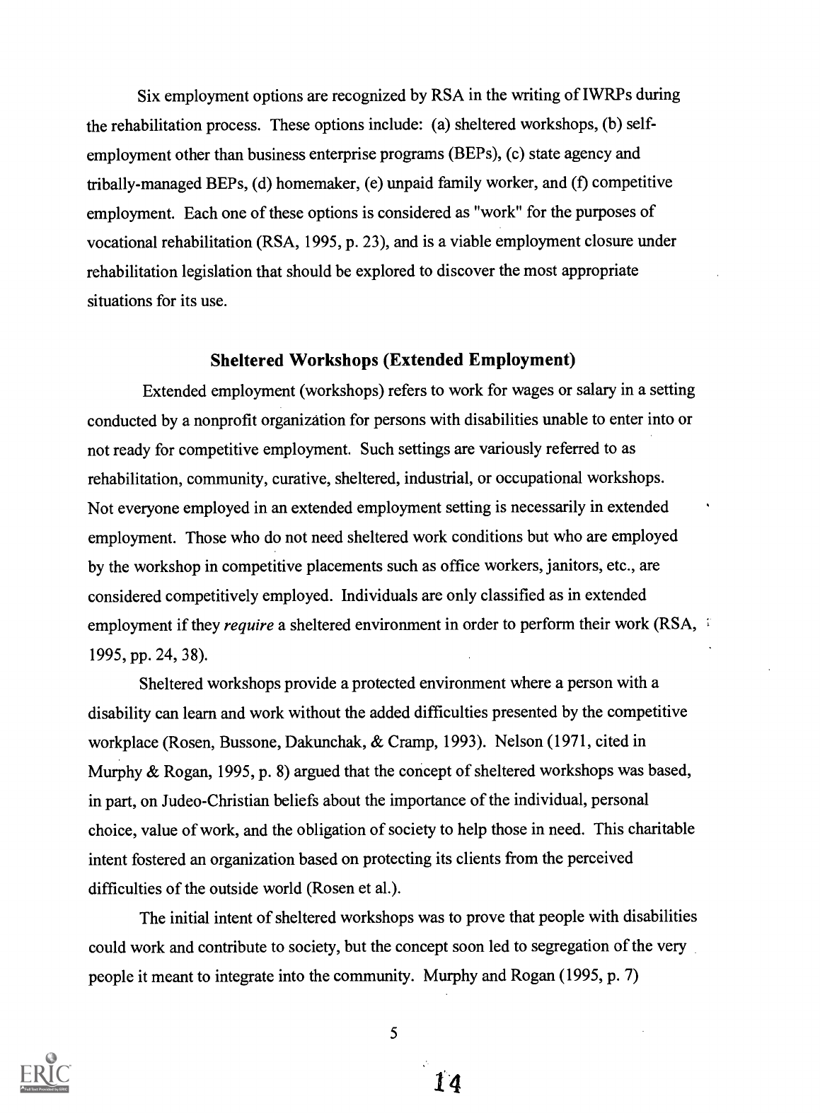 Topic: Self-Employment Placements (June 15, 1998, Tribal VR programs)