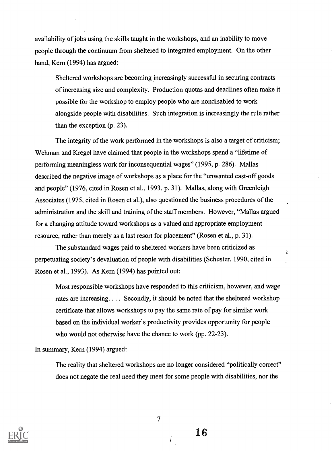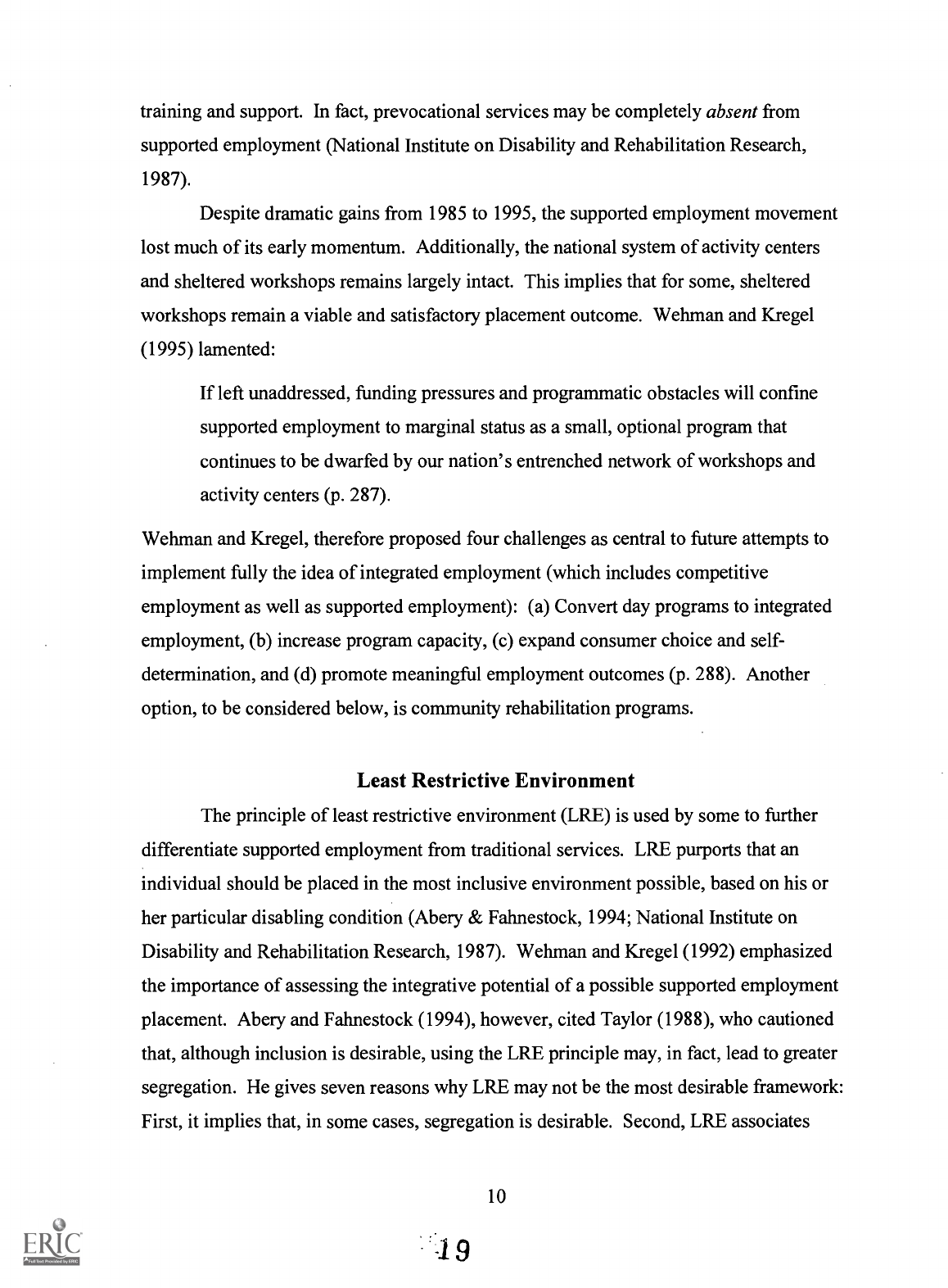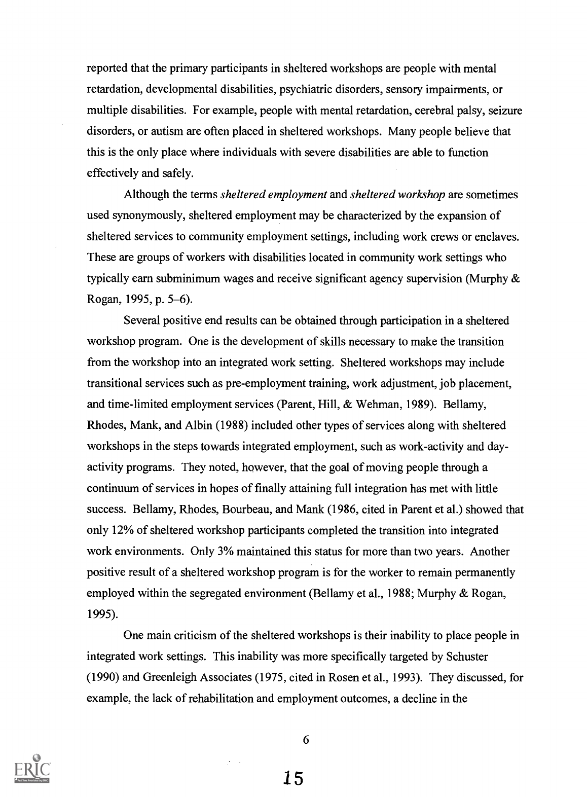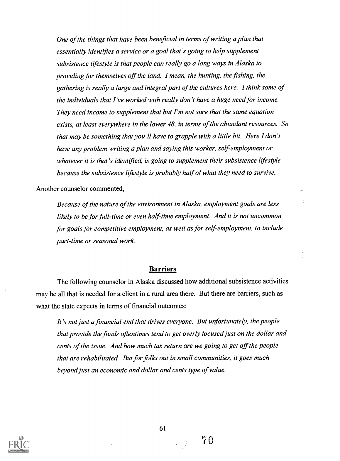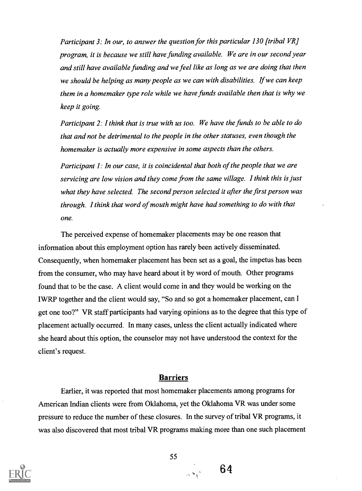 Topic: Self-Employment Placements (June 15, 1998, Tribal VR programs)