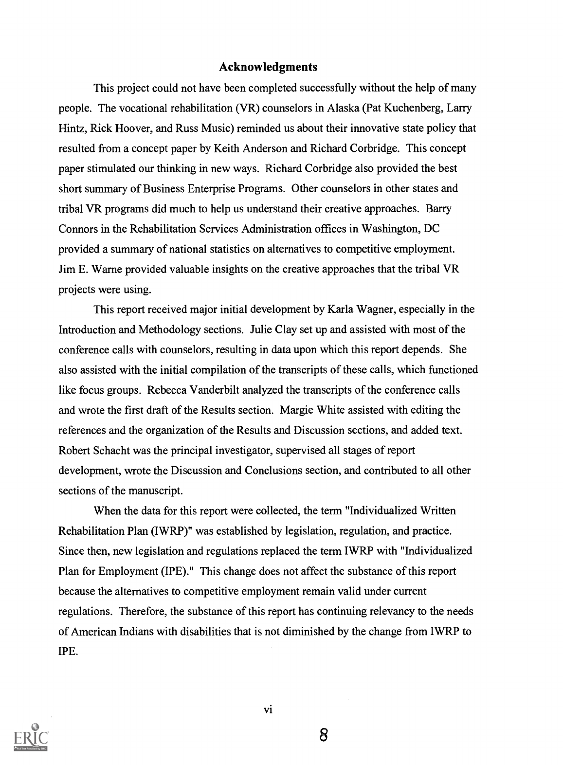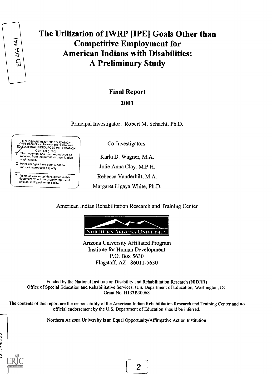 The contents of this report are the responsibility of the American Indian Rehabilitation Research and Training Center and no